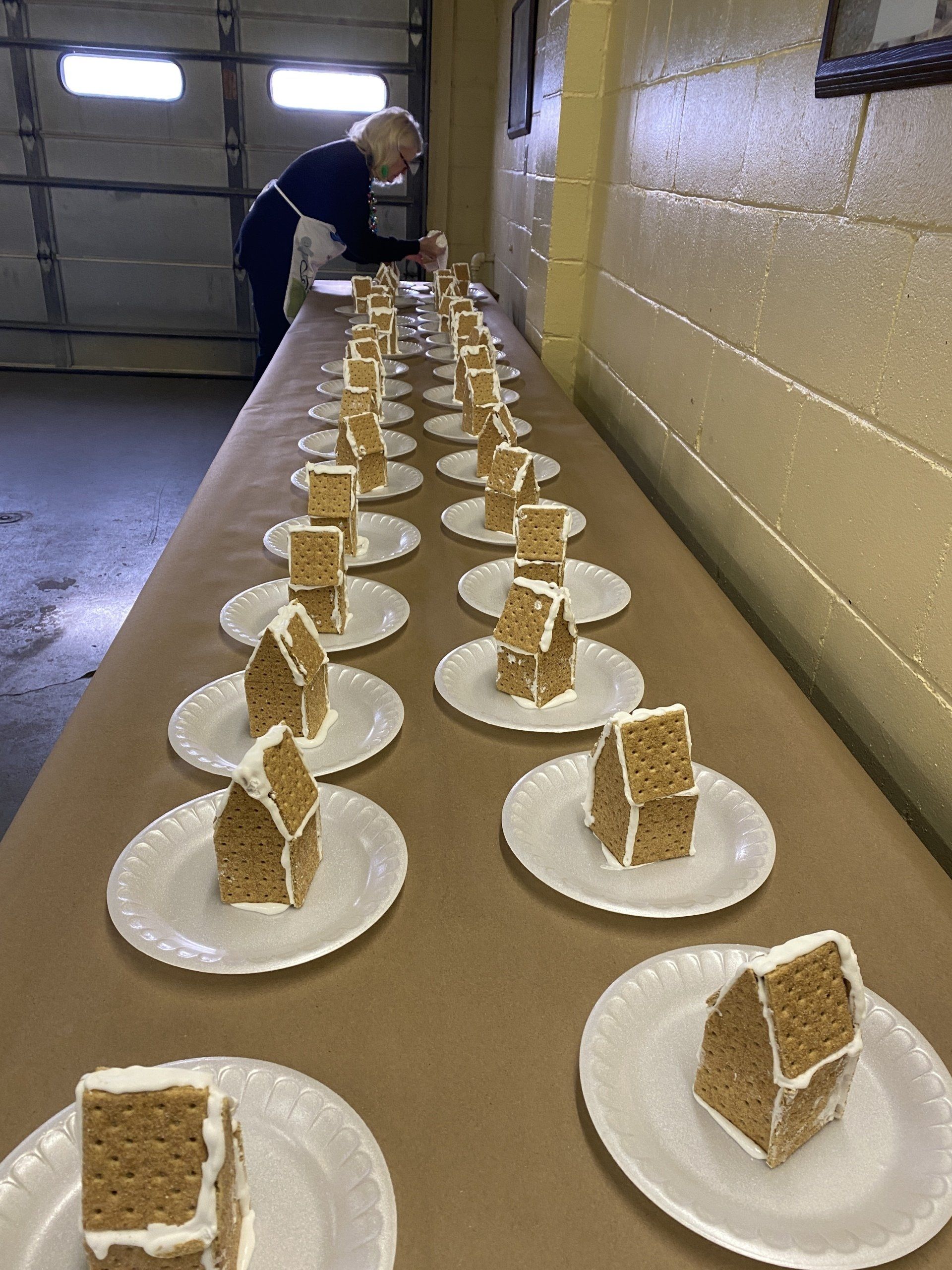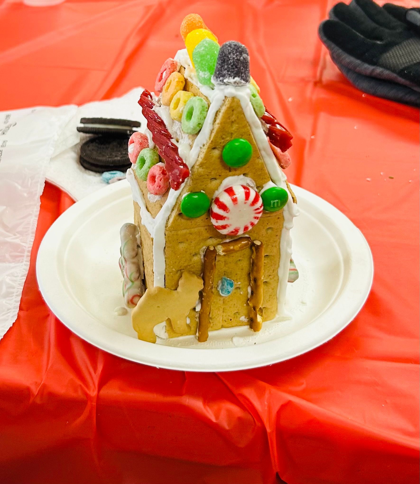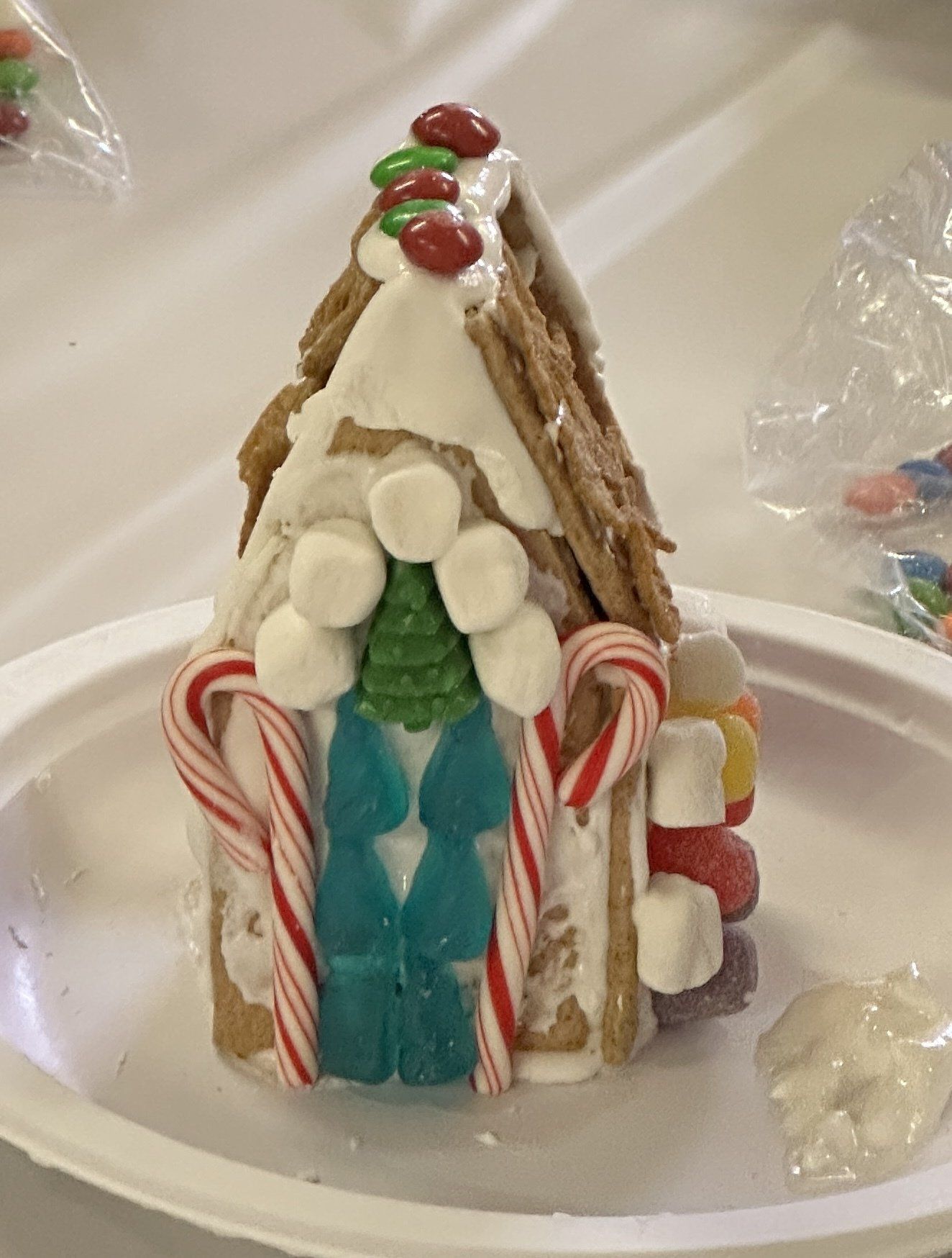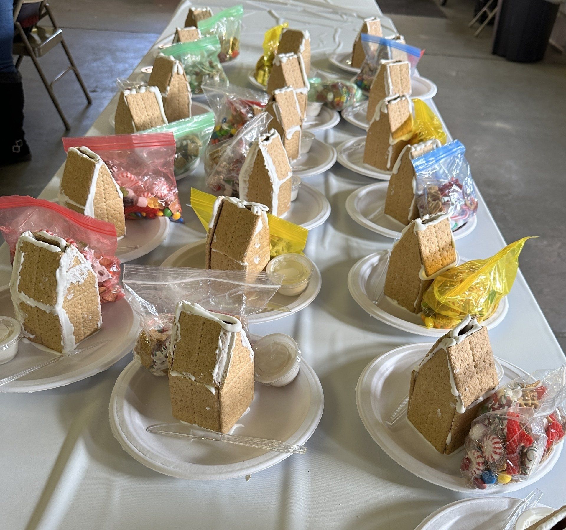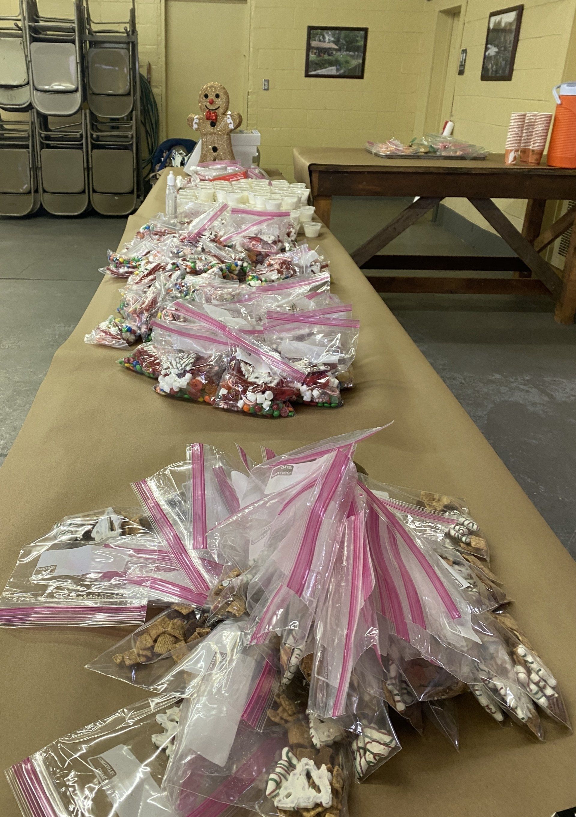 We made 120 gingerbread houses, stuffed 120 bags of candy, had cocoa & cookies.
