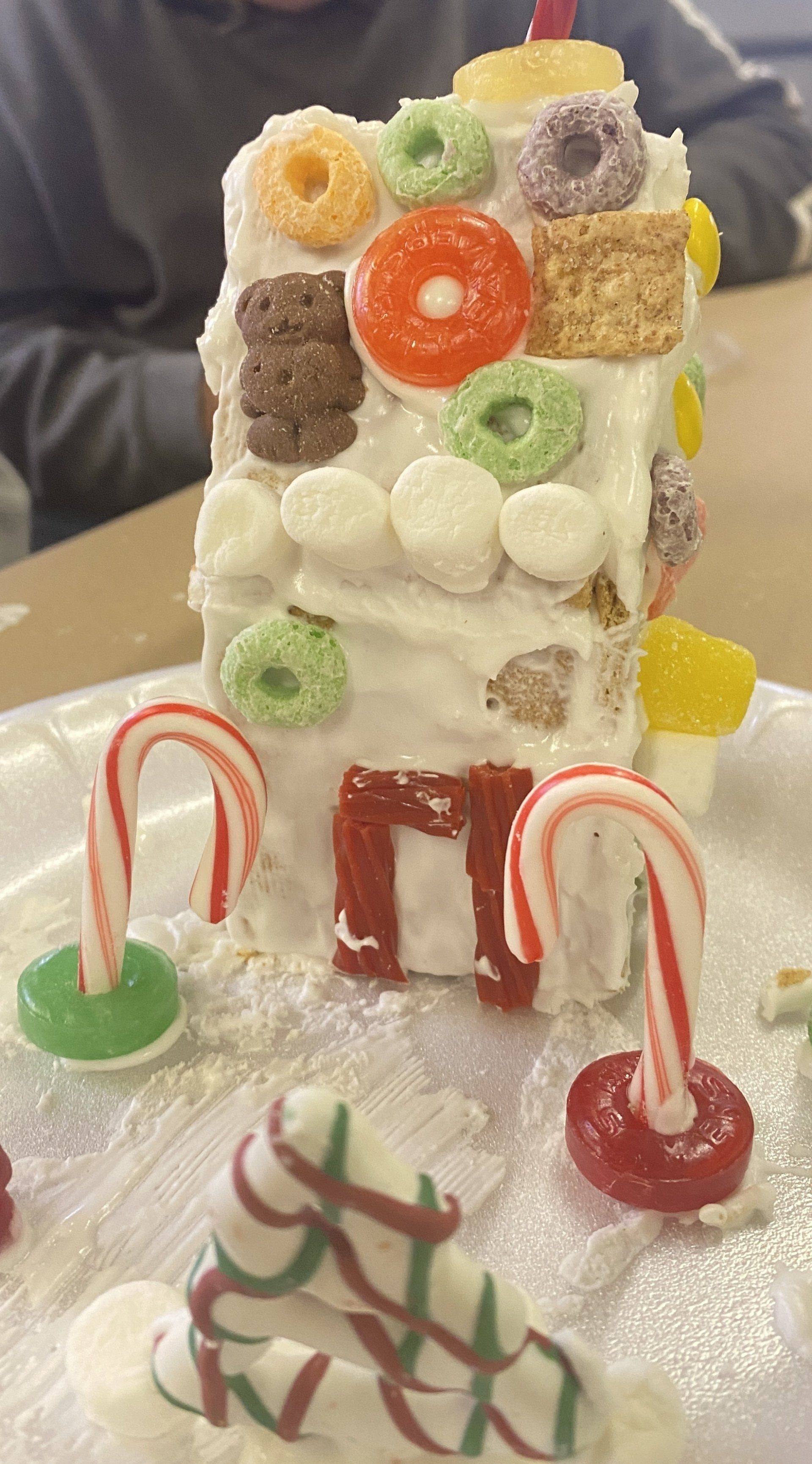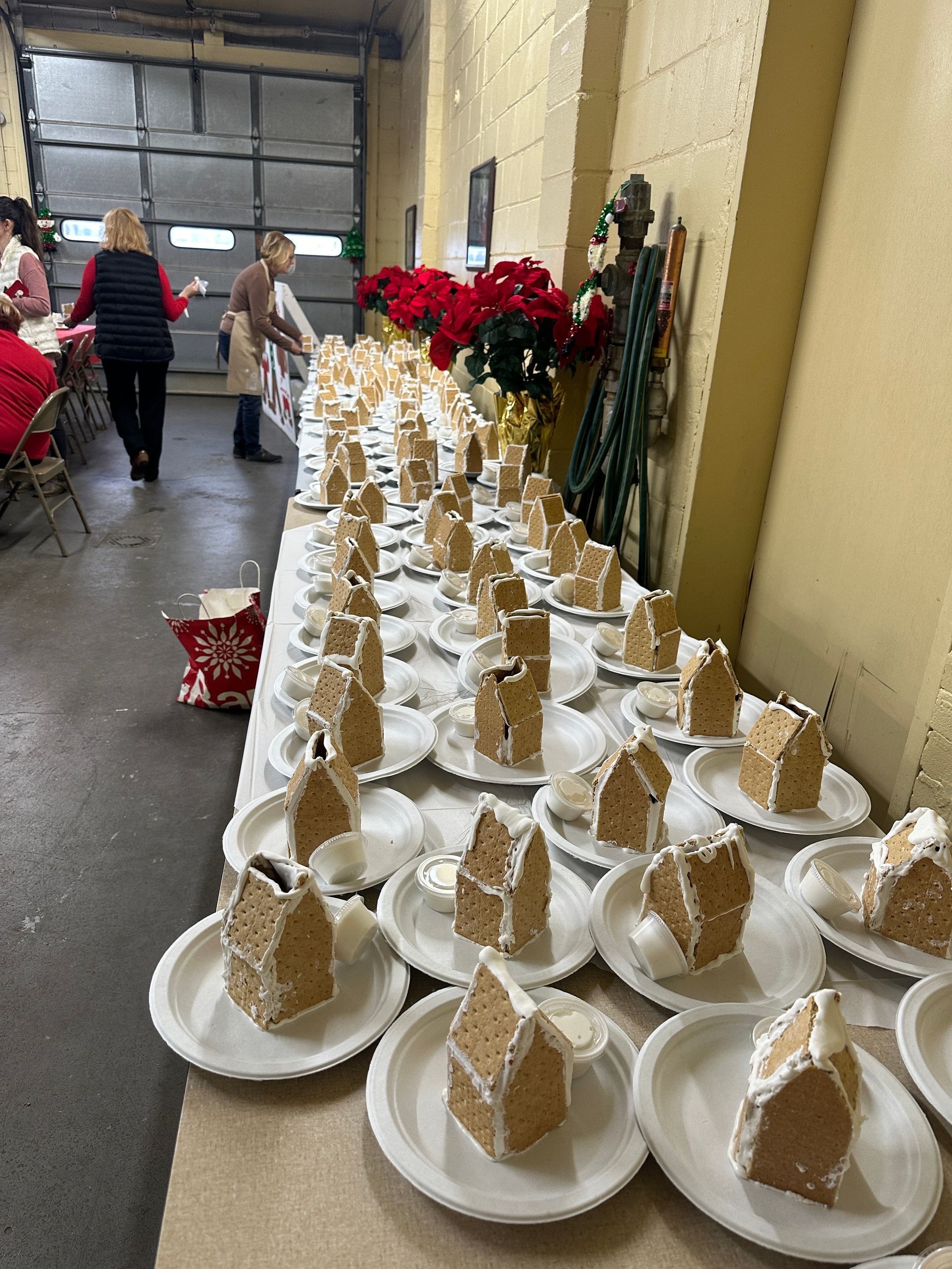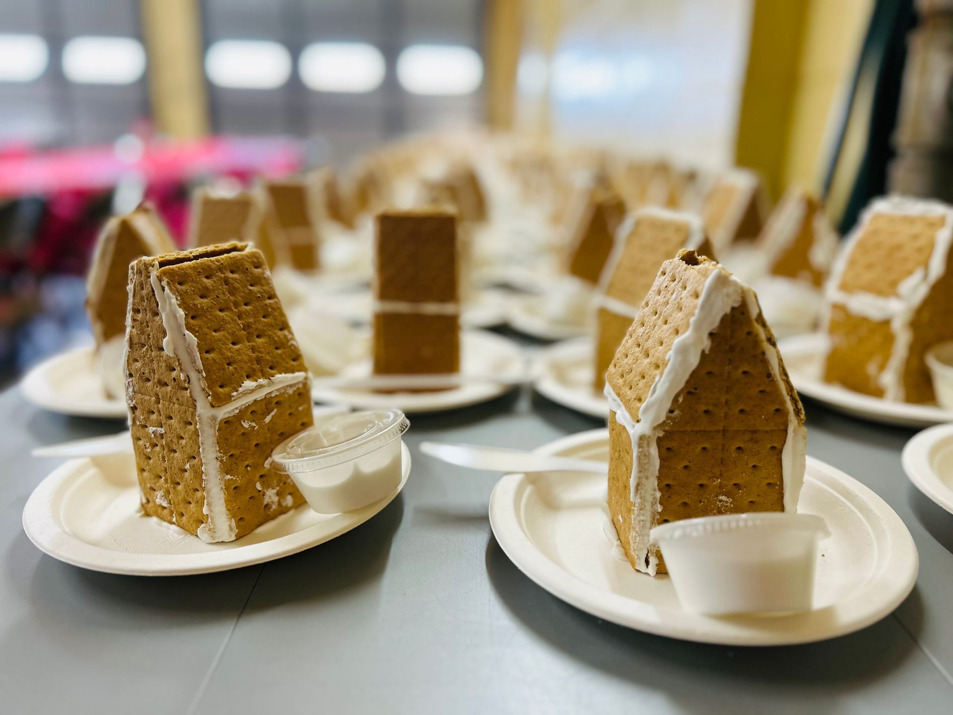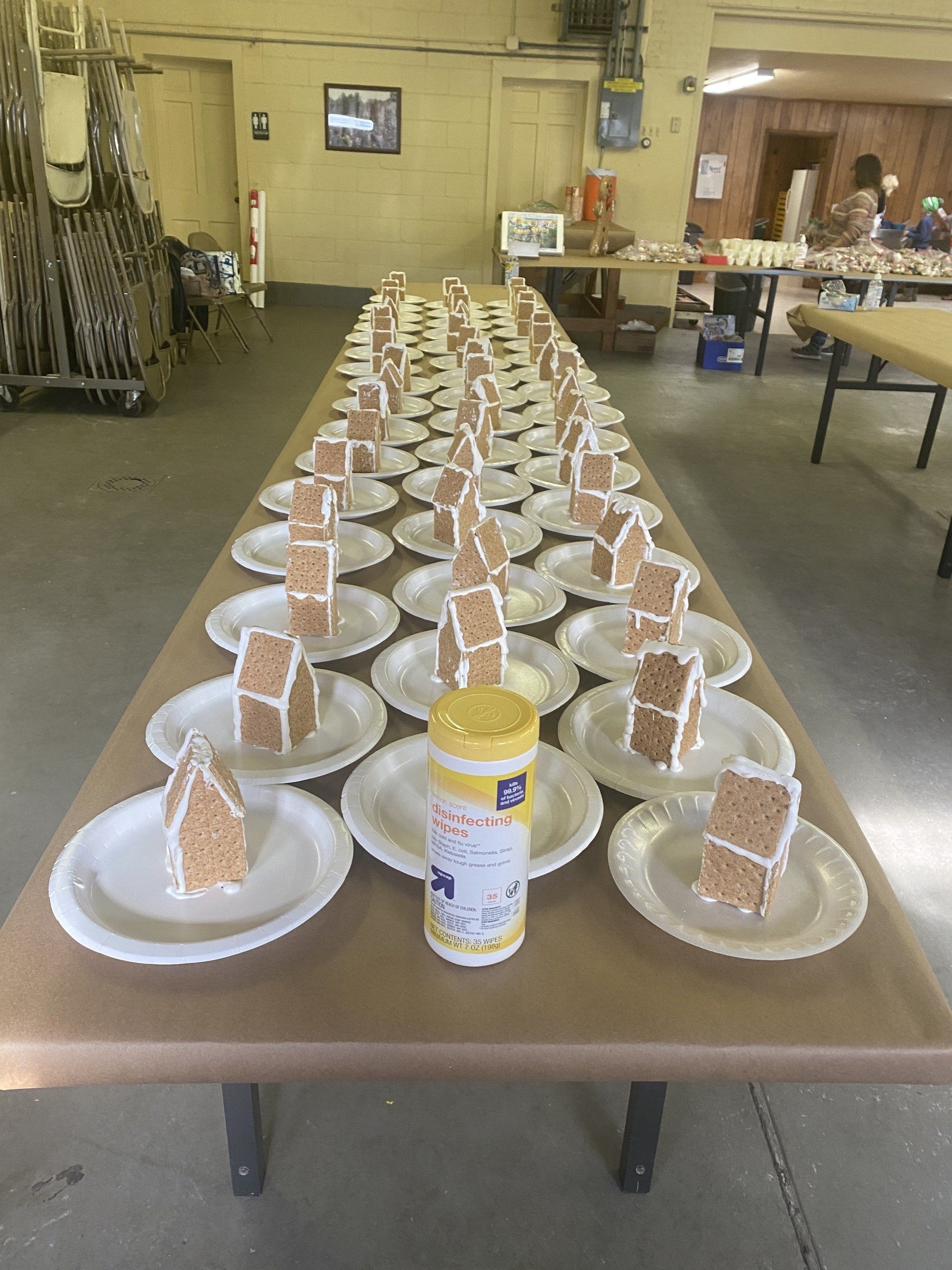 We made 120 gingerbread houses, stuffed 120 bags of candy, had cocoa & cookies.