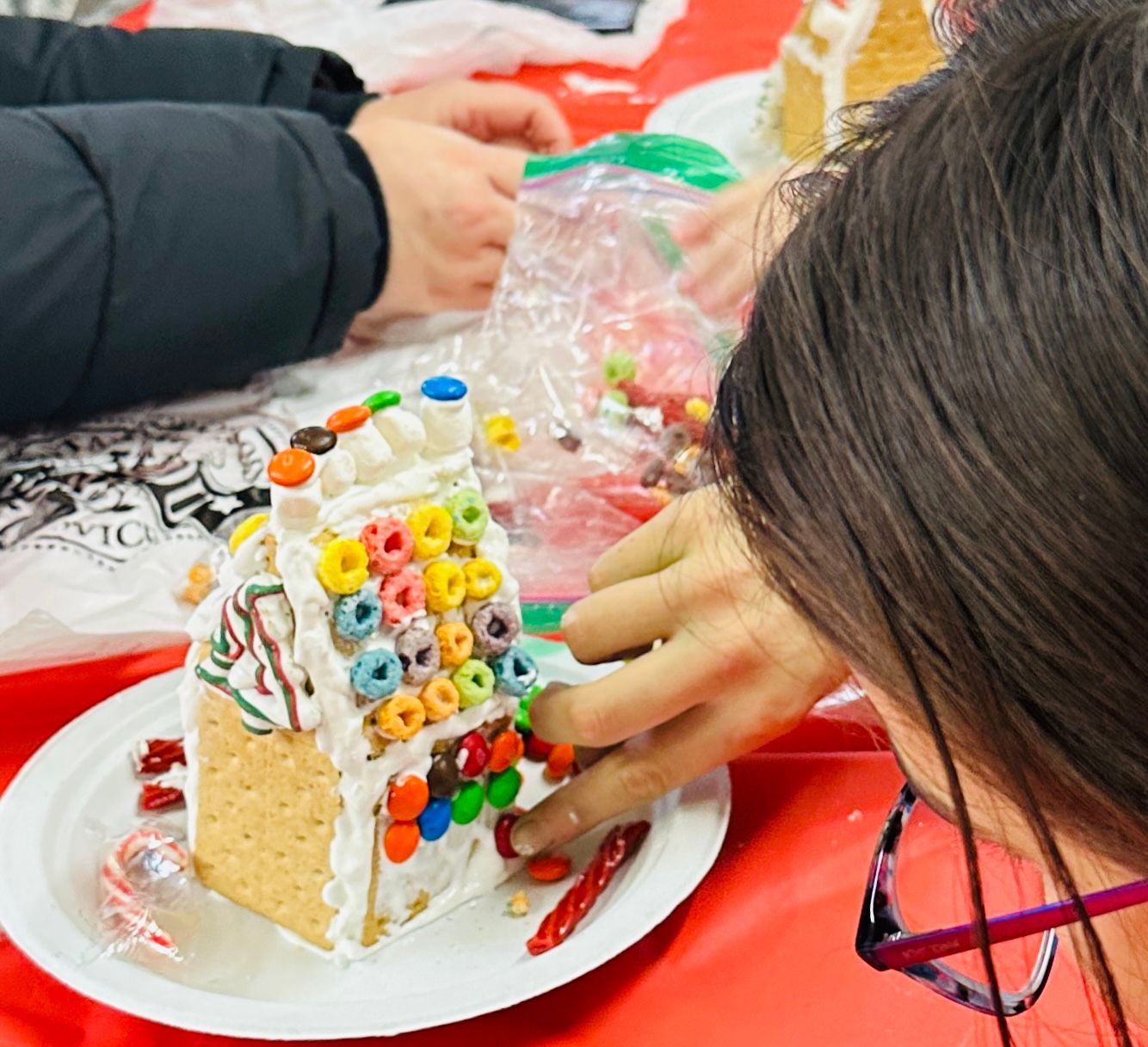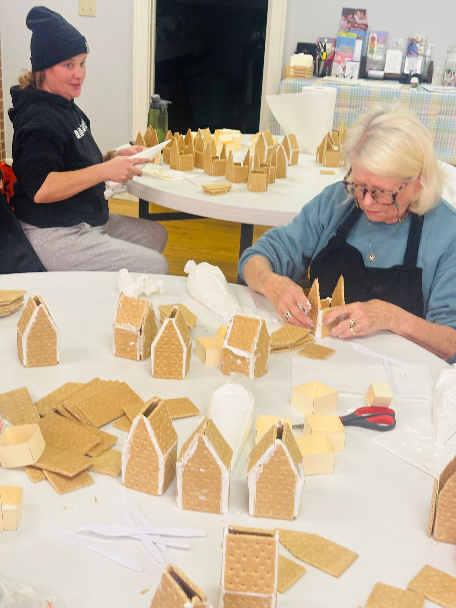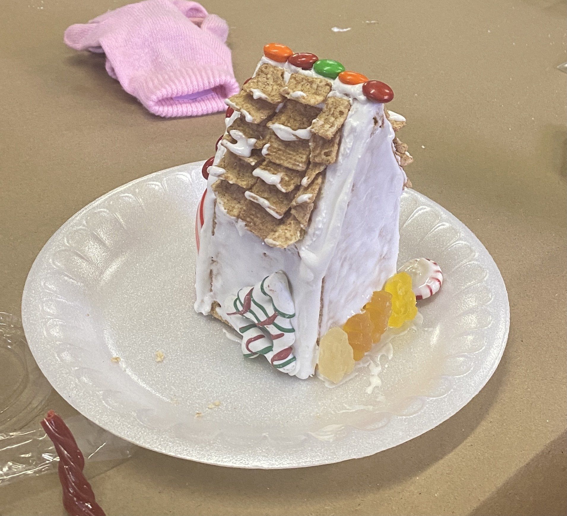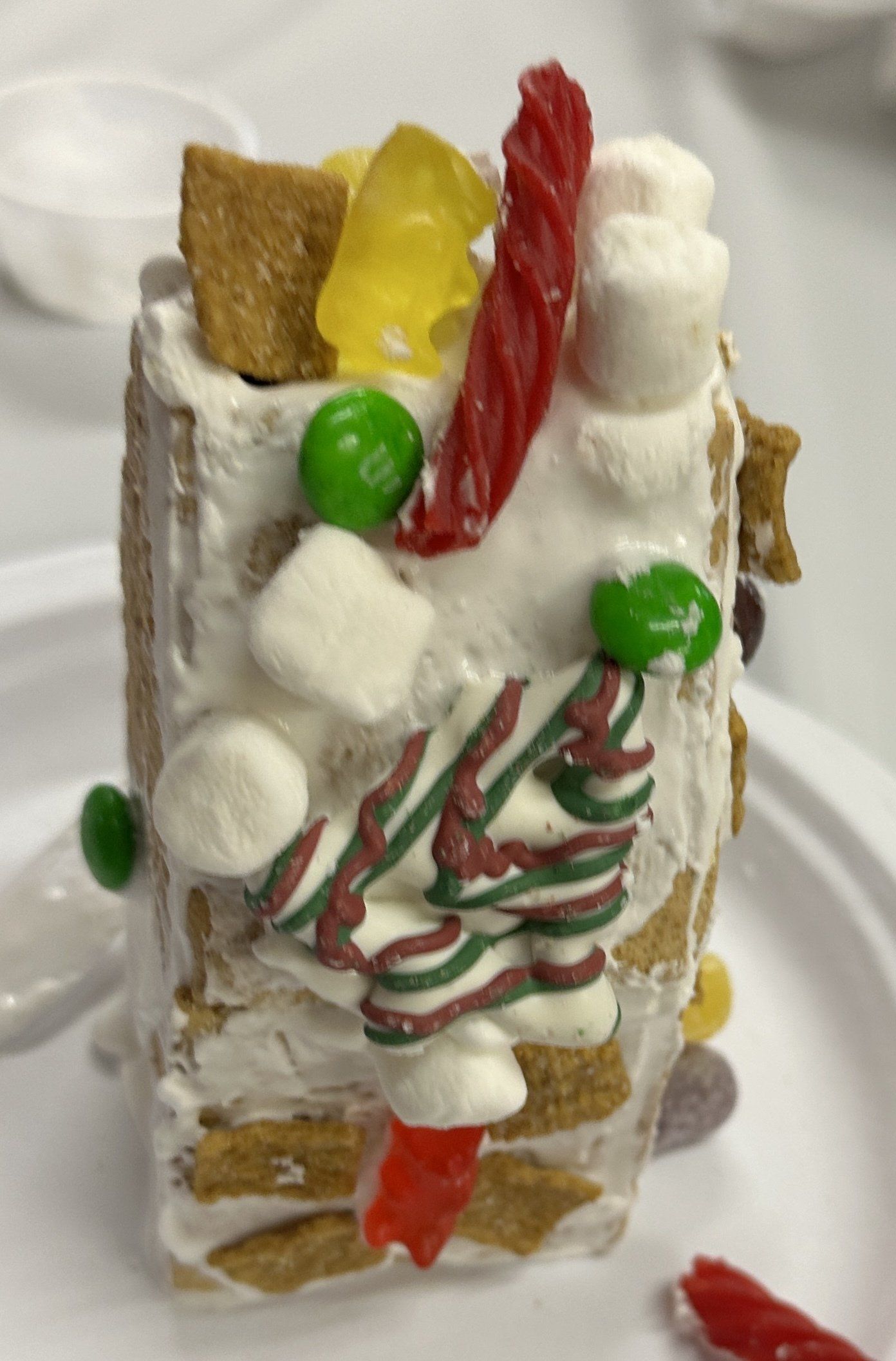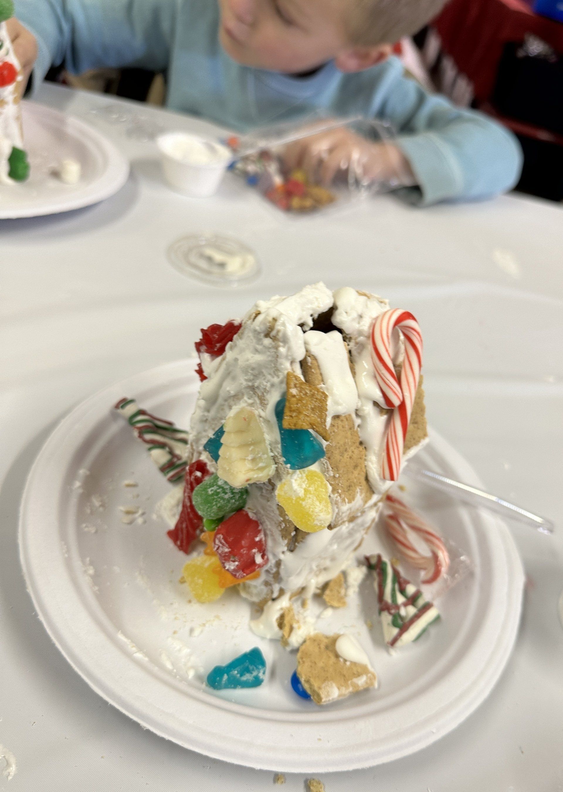 We made 120 gingerbread houses, stuffed 120 bags of candy, had cocoa & cookies.