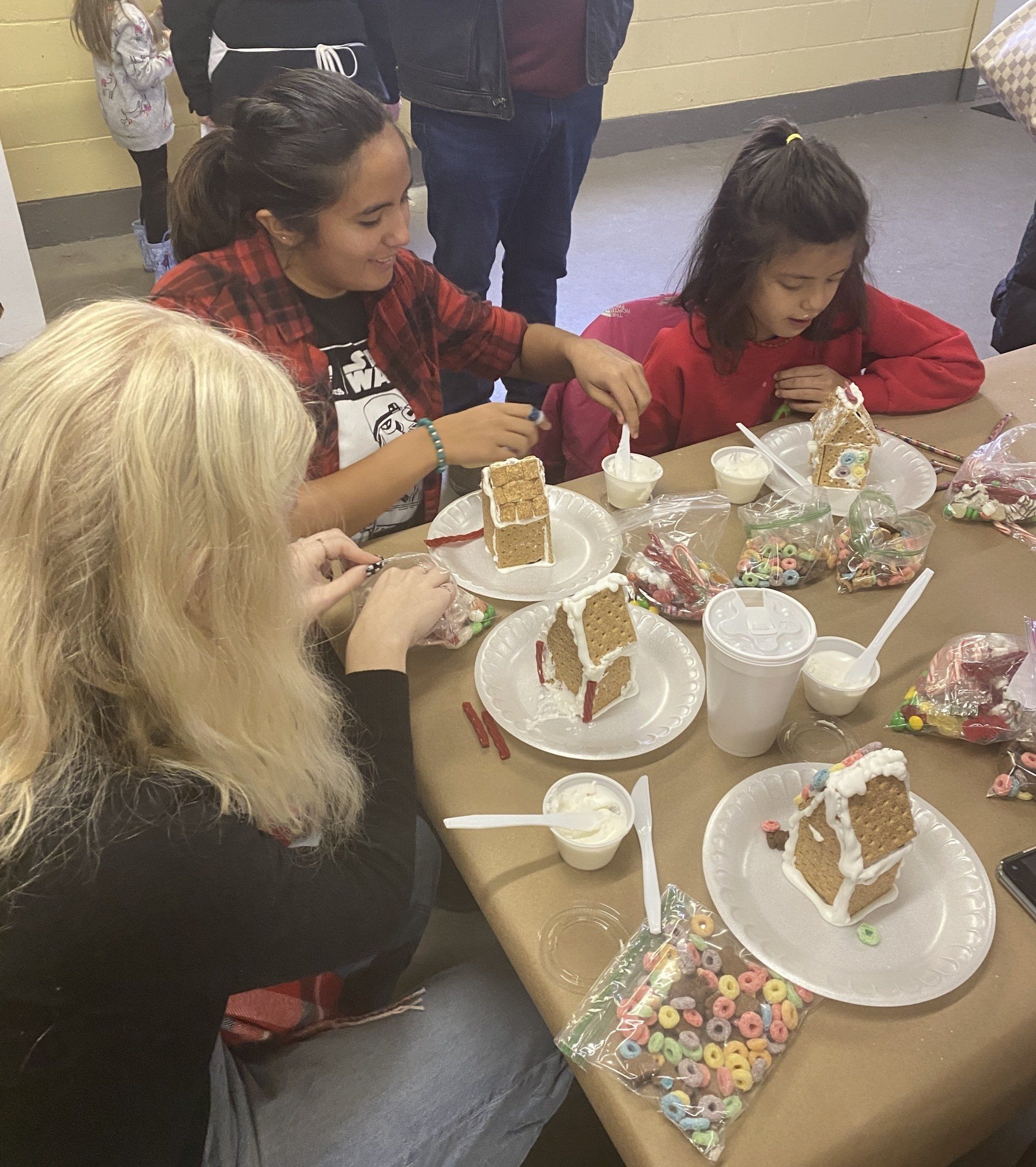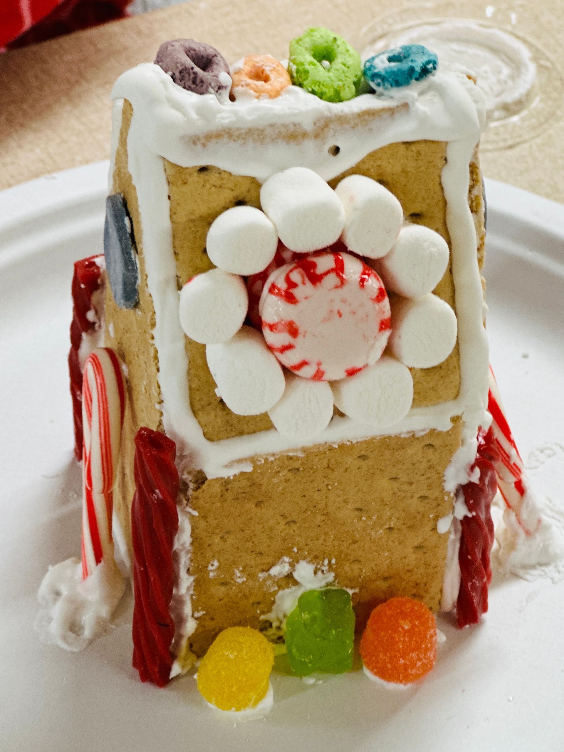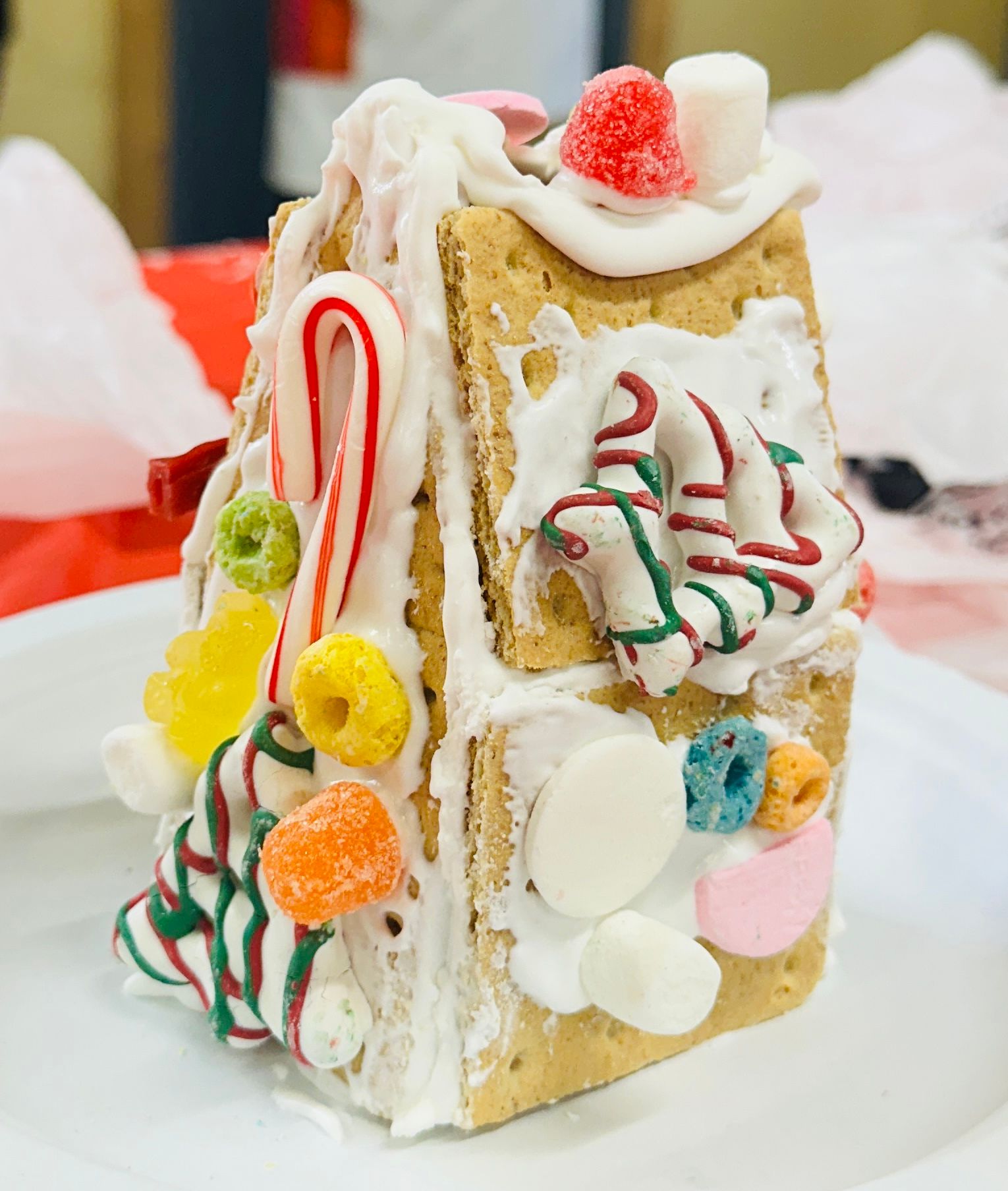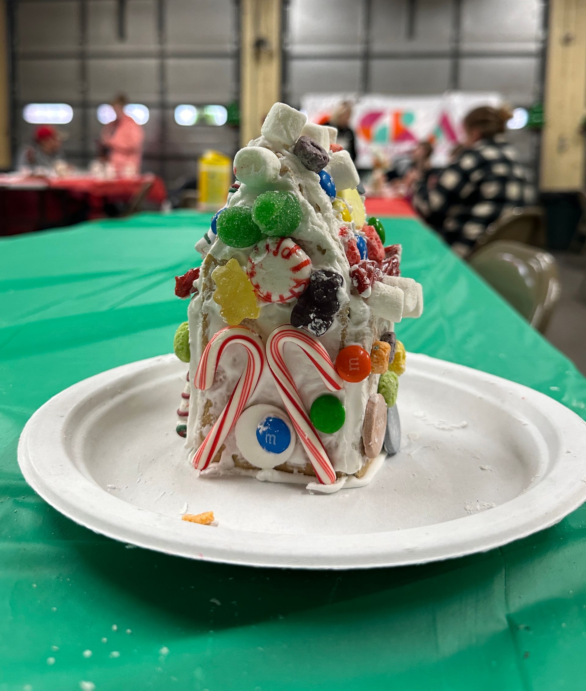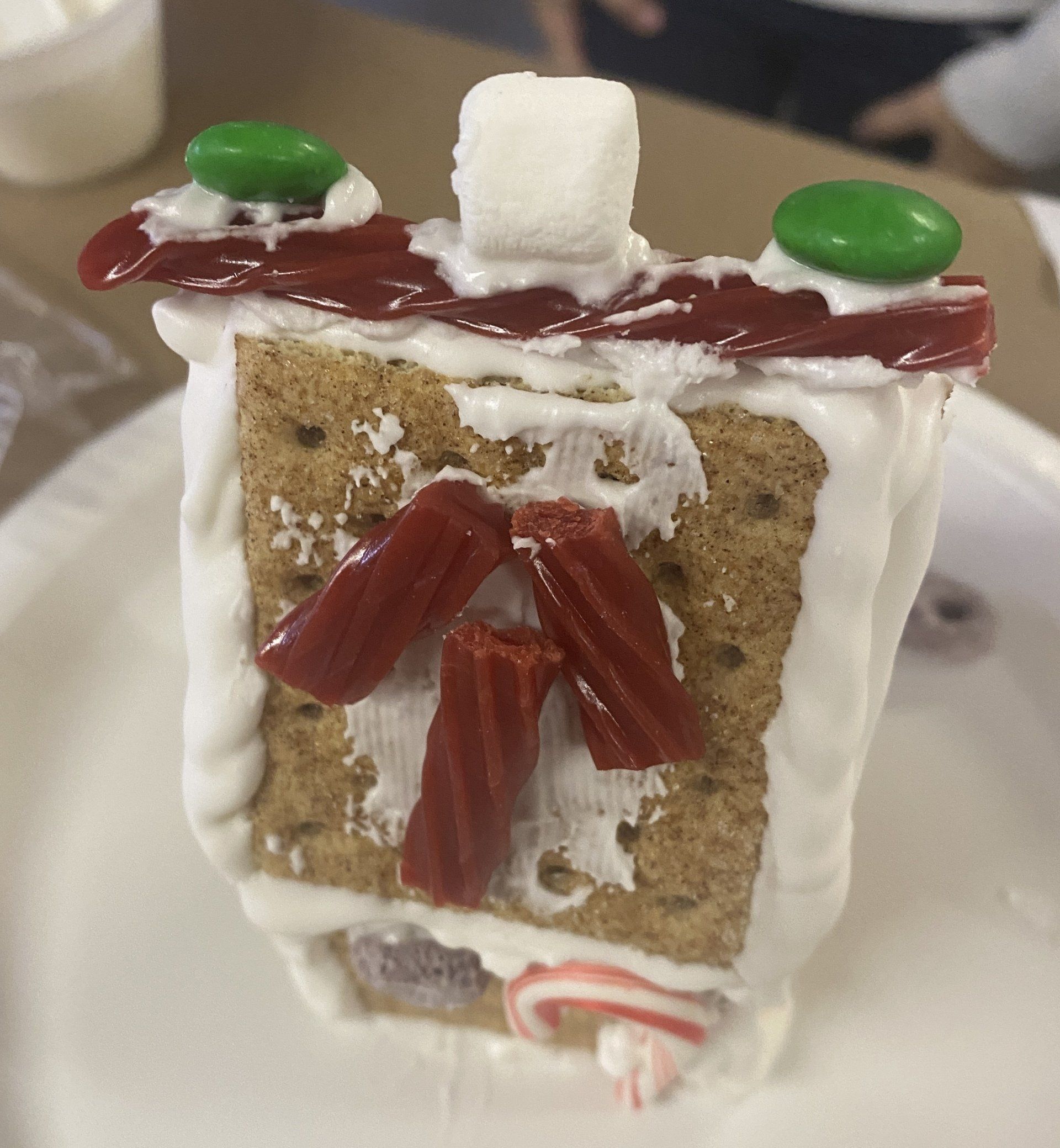 We made 120 gingerbread houses, stuffed 120 bags of candy, had cocoa & cookies.