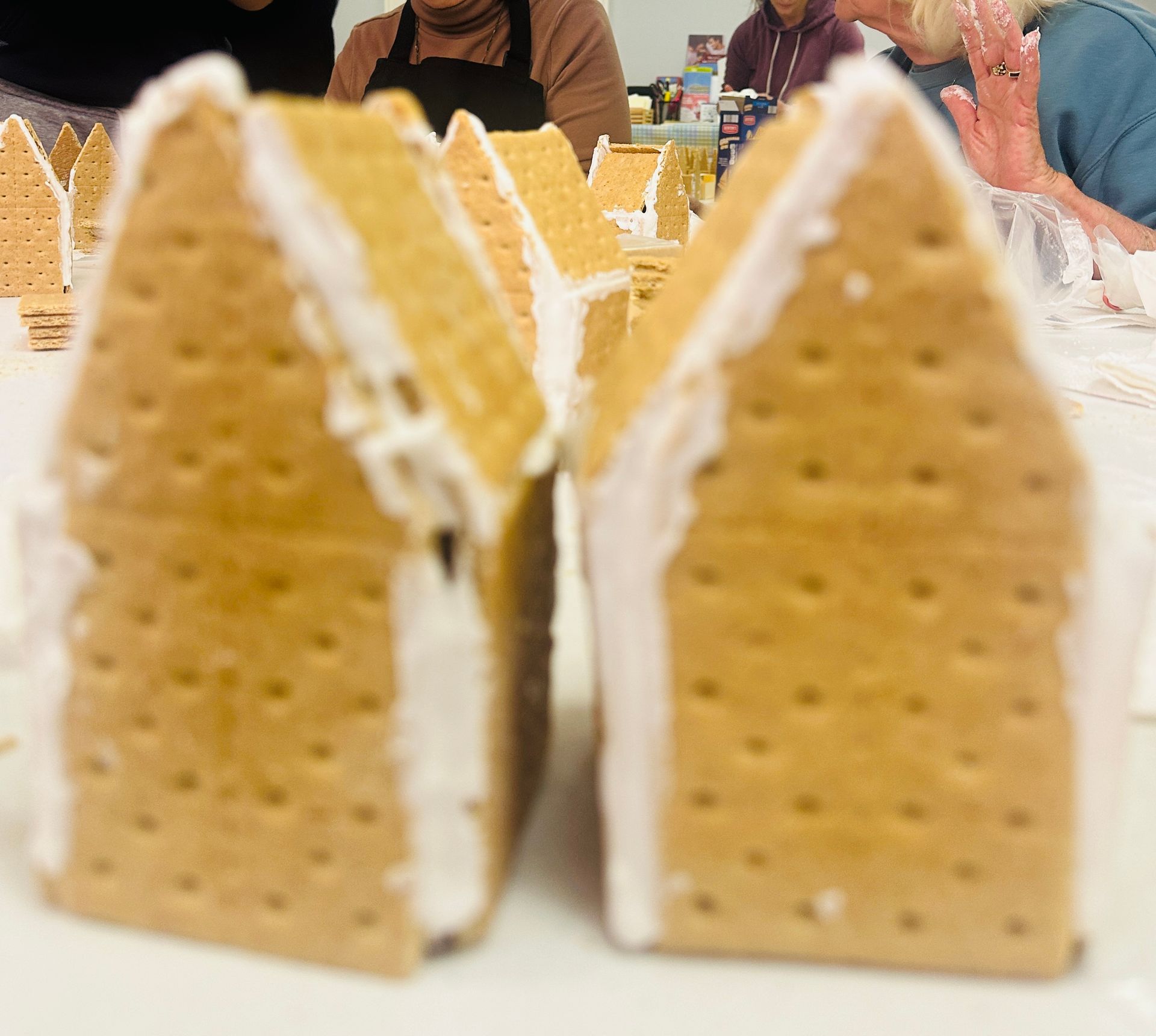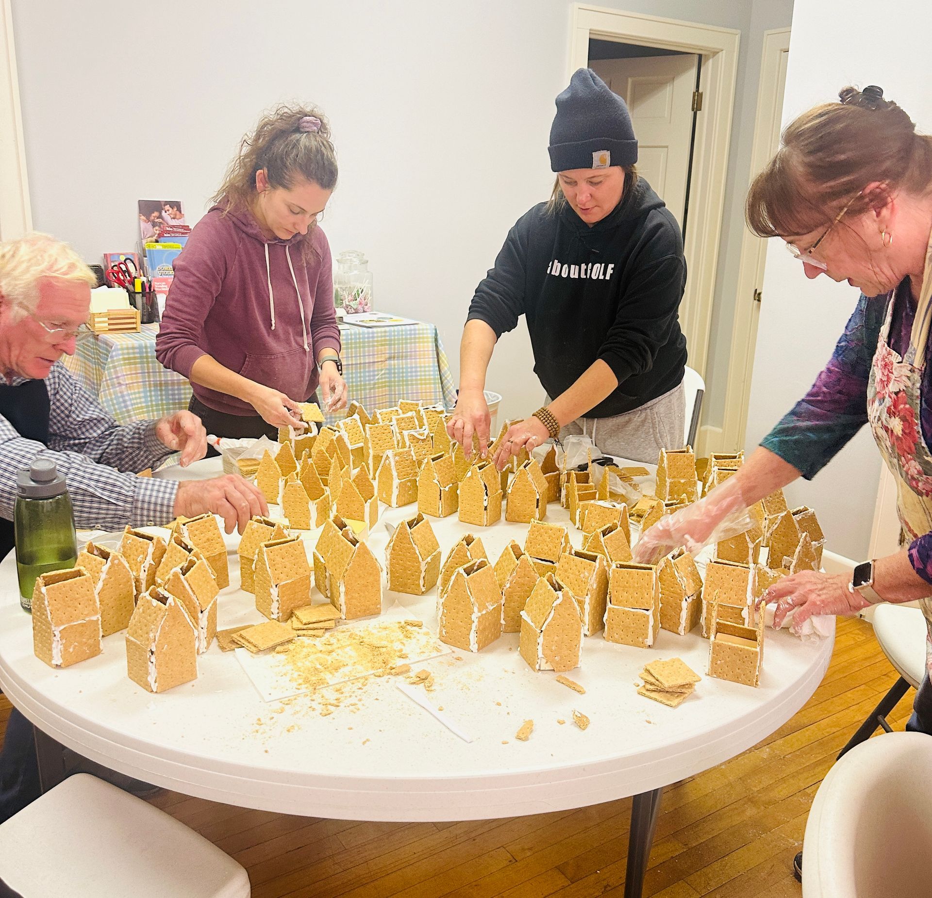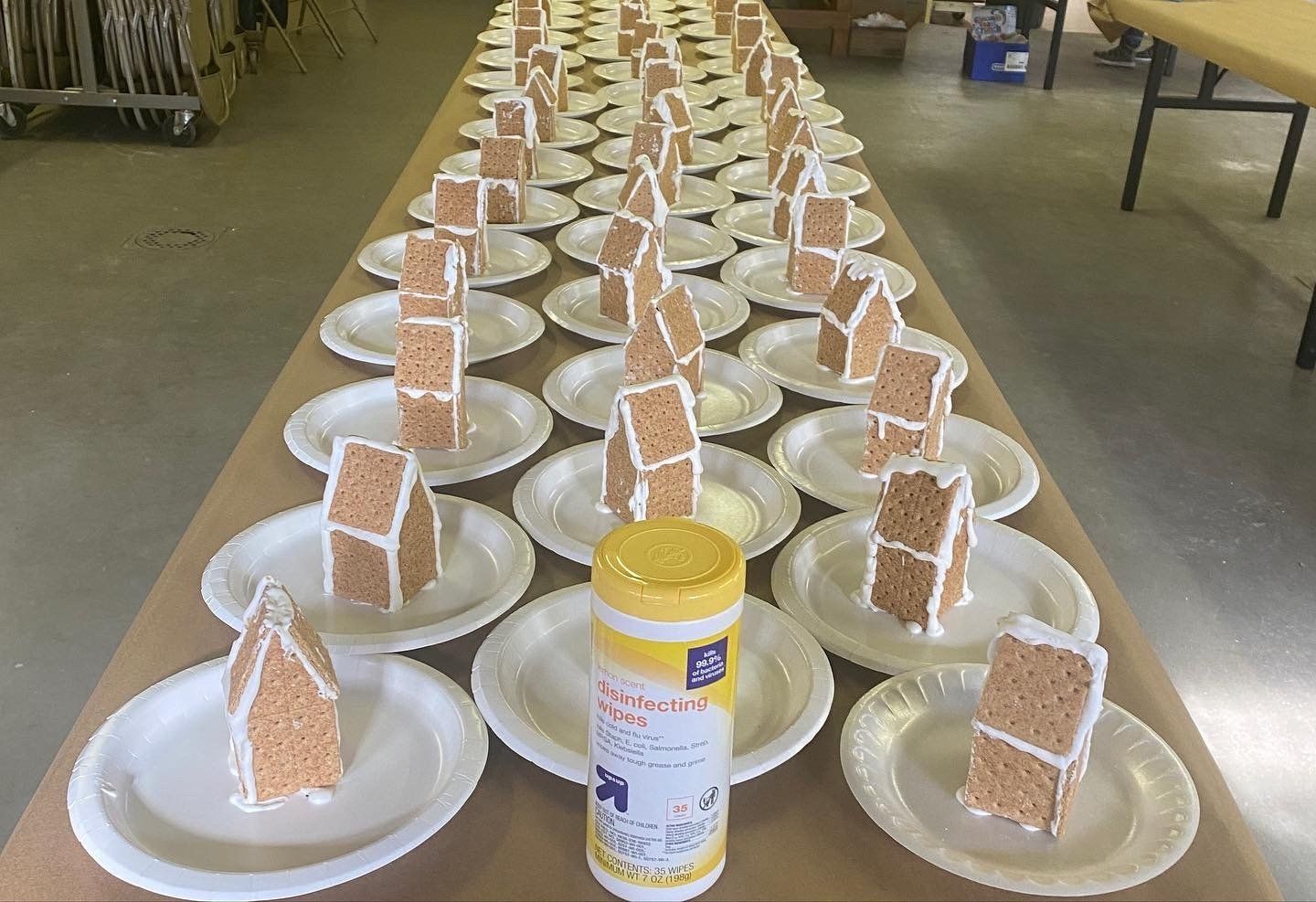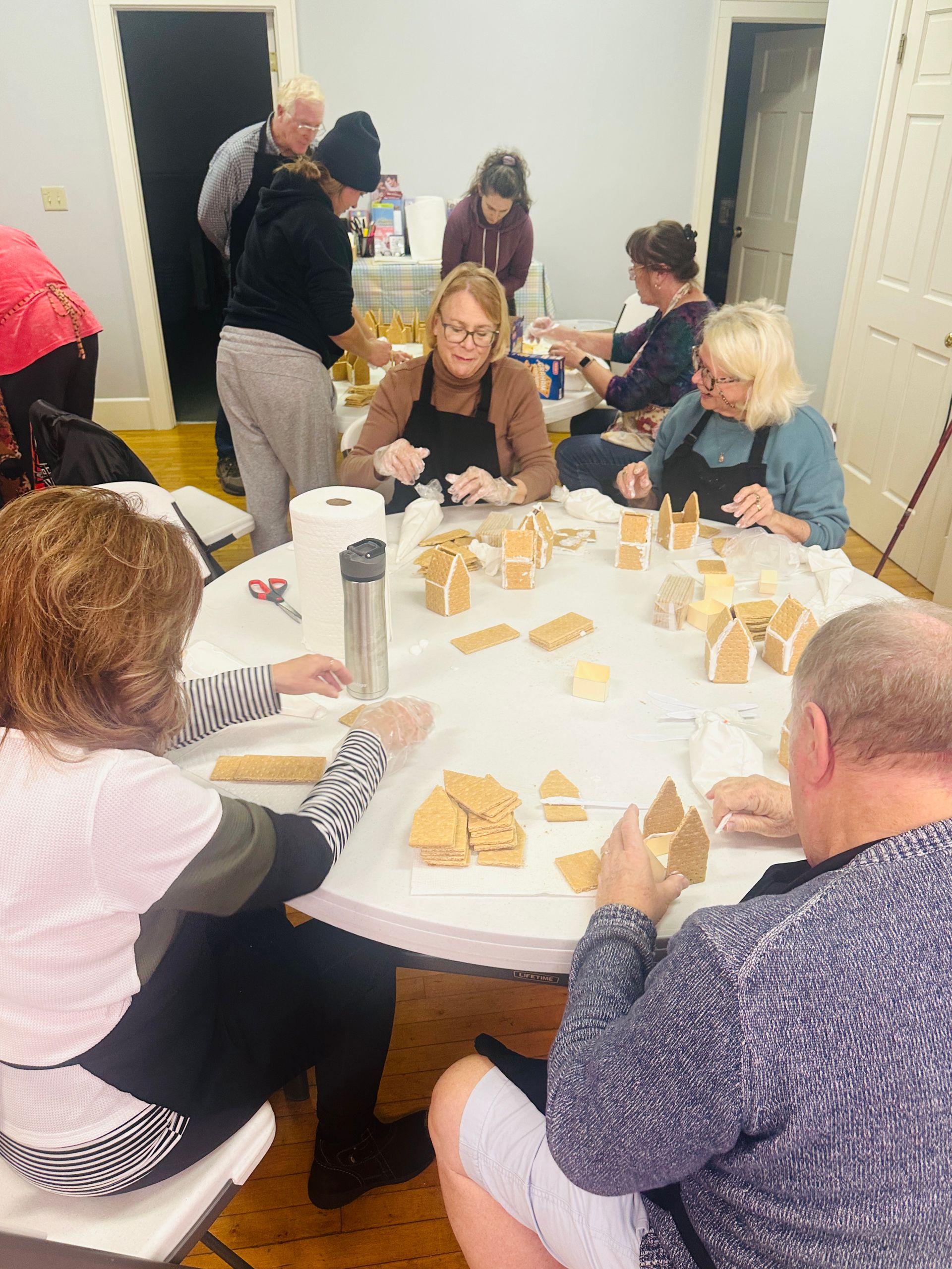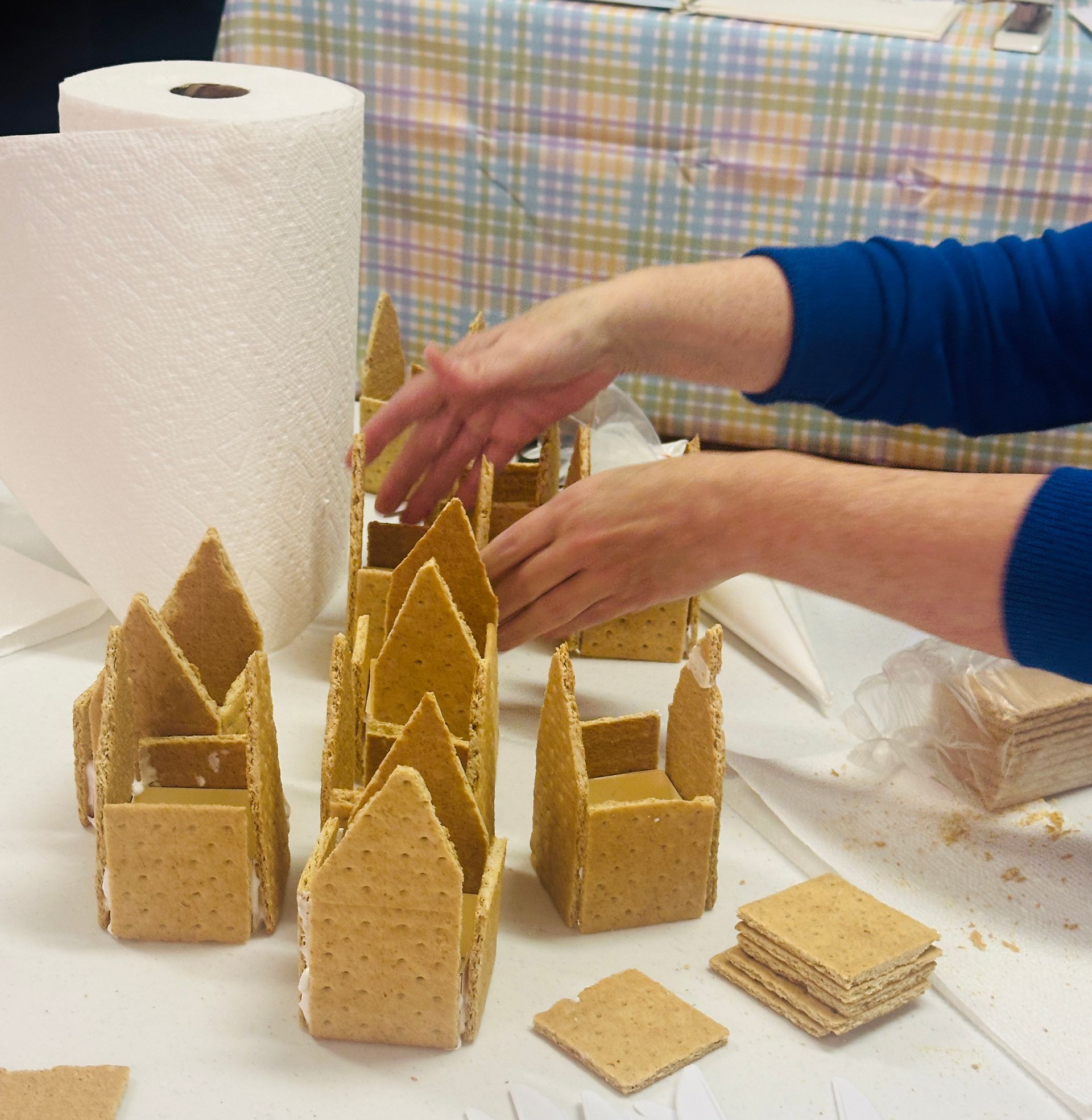 We made 120 gingerbread houses, stuffed 120 bags of candy, had cocoa & cookies.