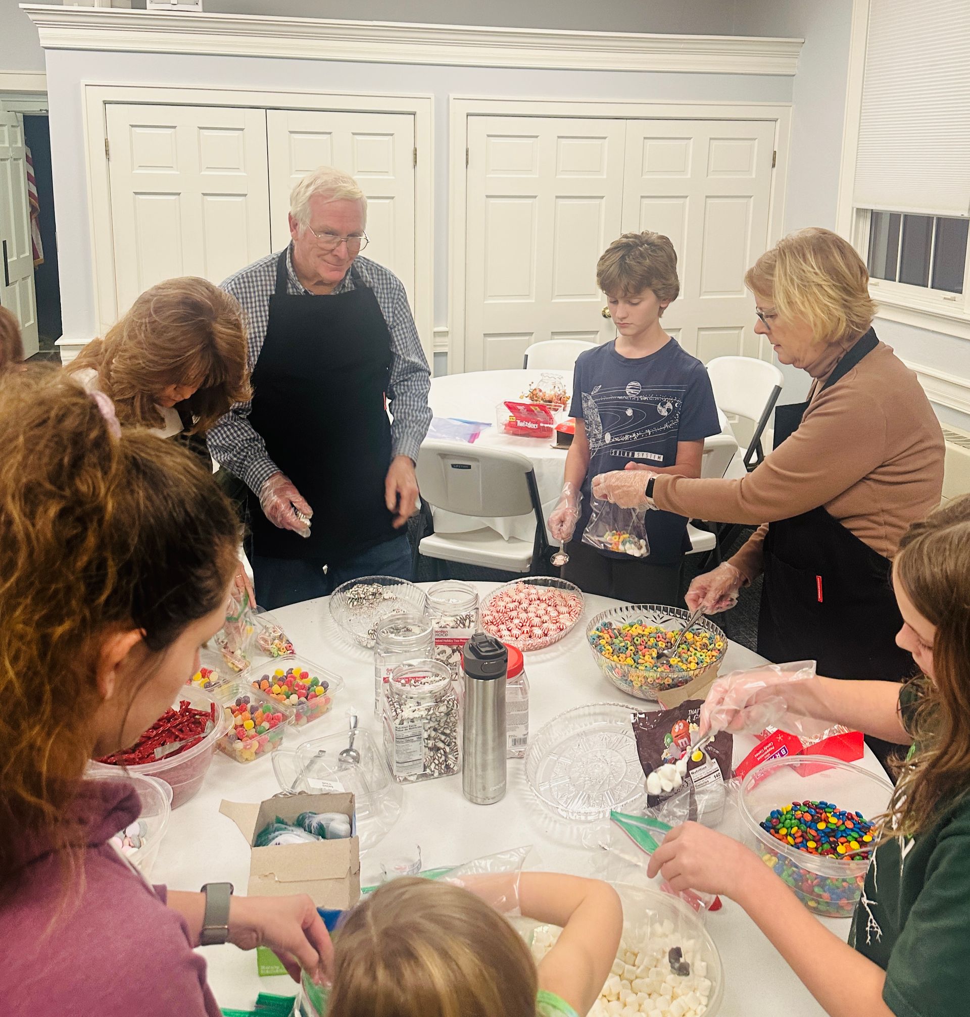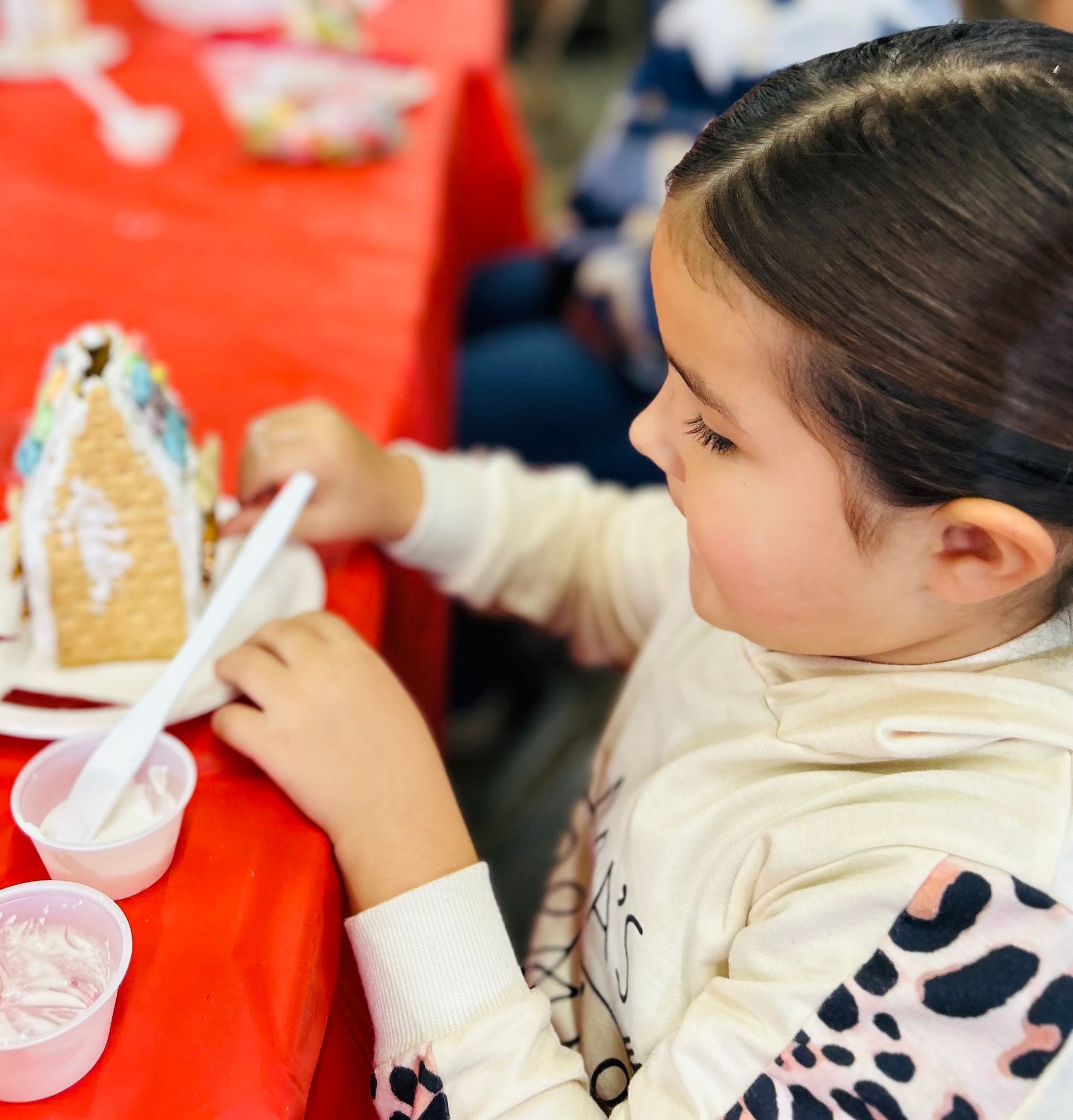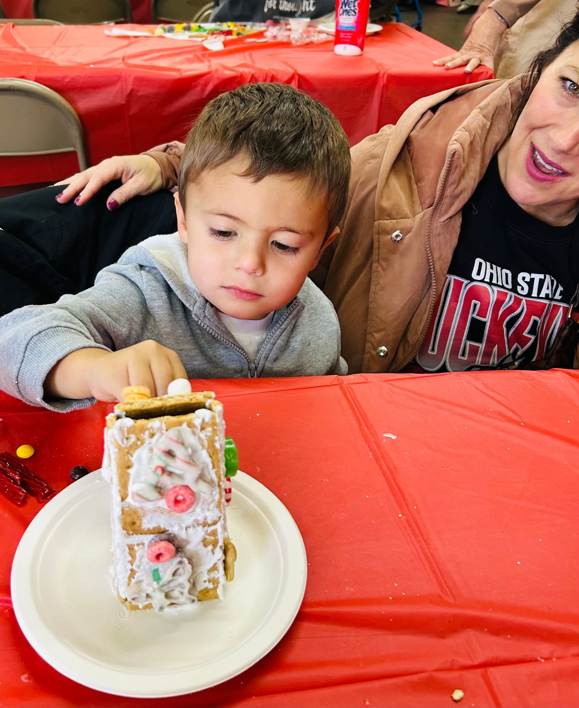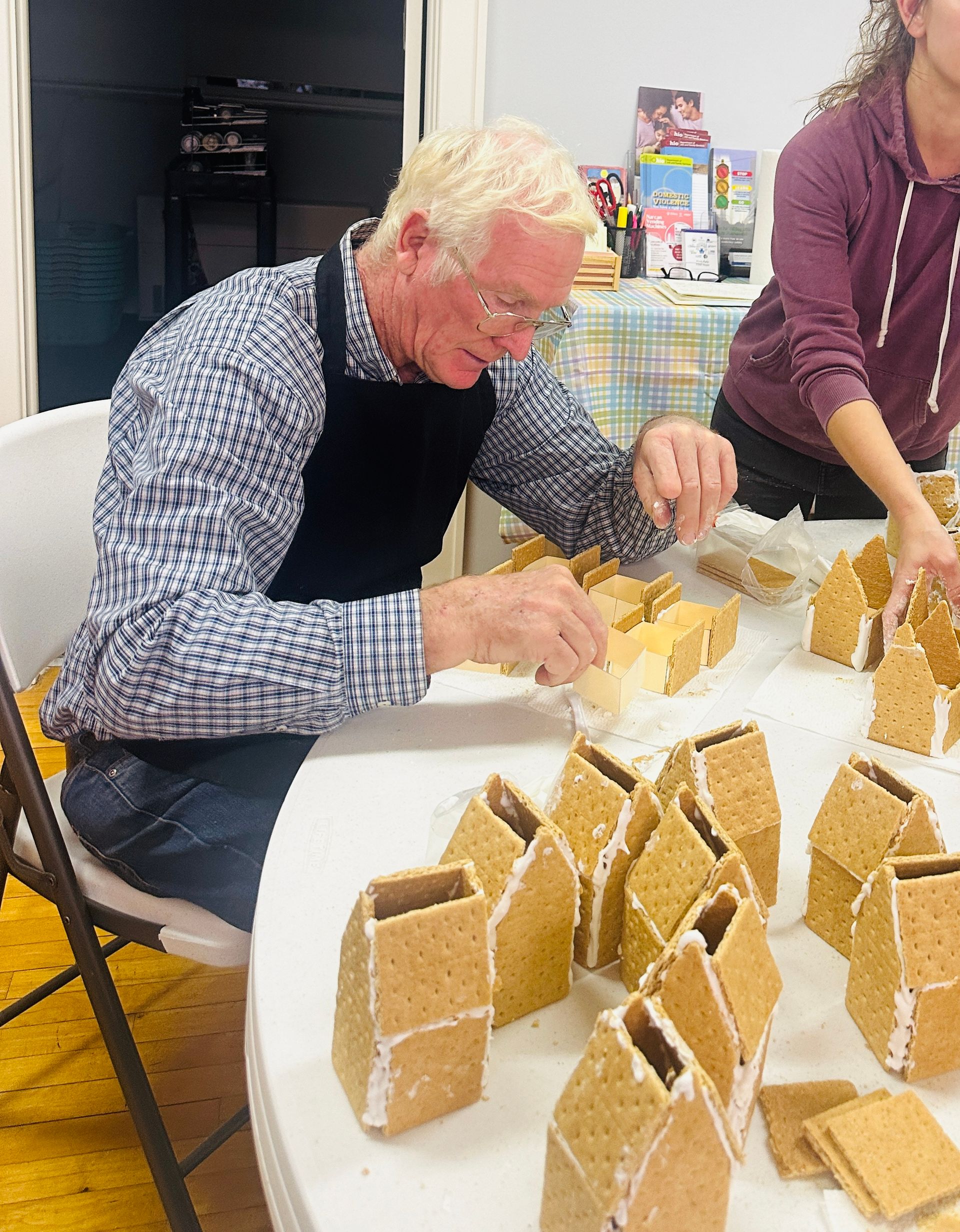 We made 120 gingerbread houses, stuffed 120 bags of candy, had cocoa & cookies.