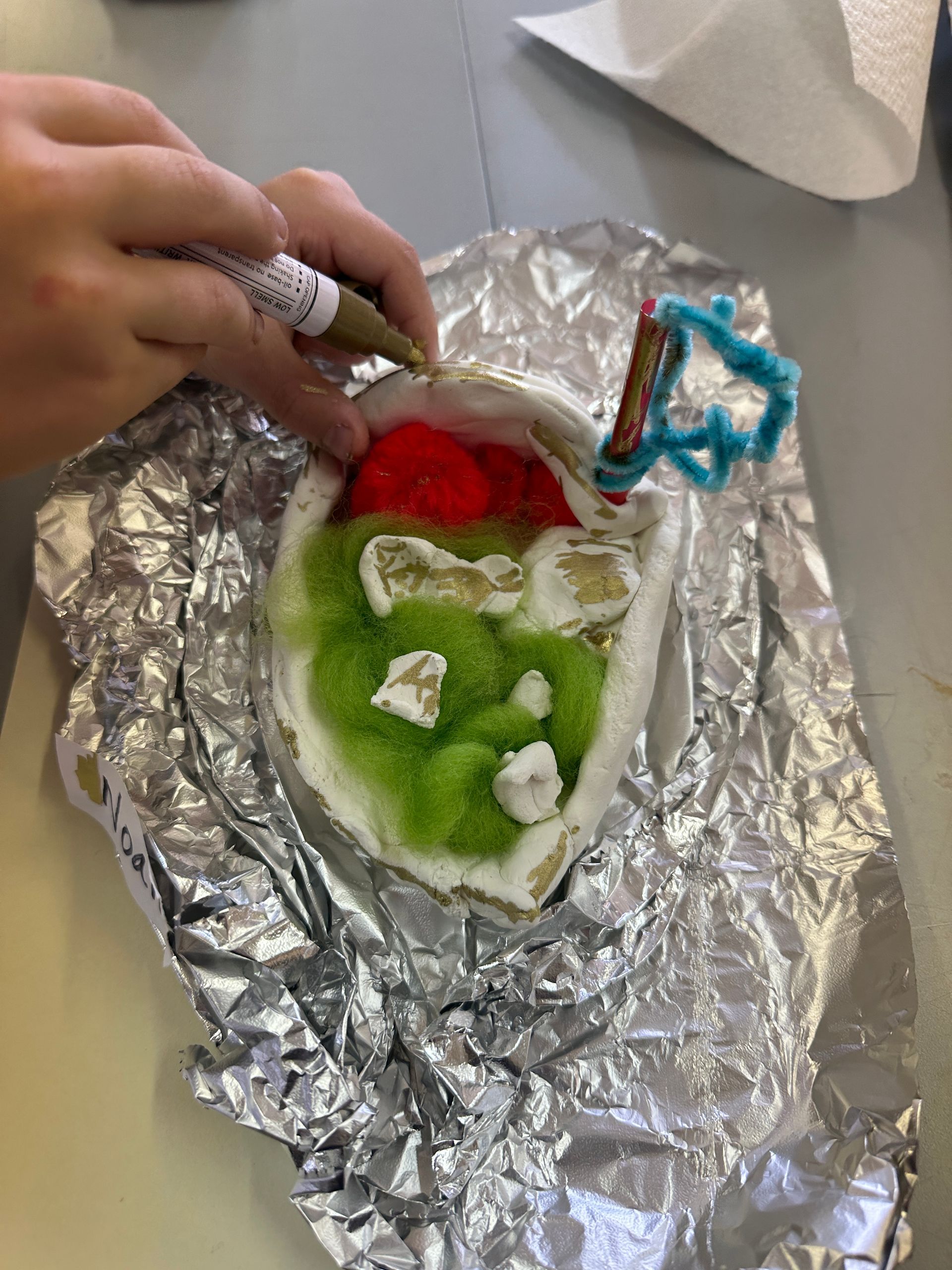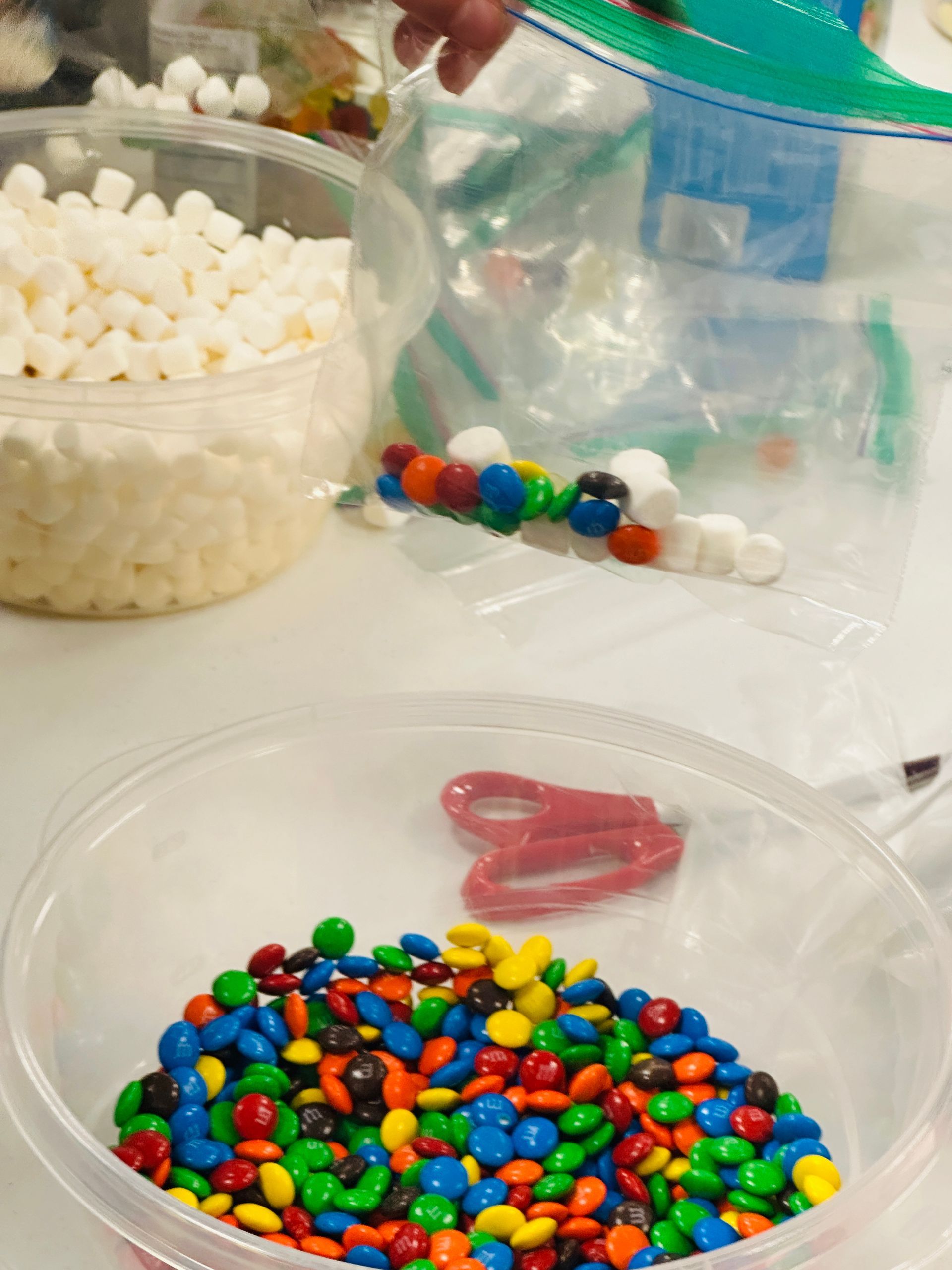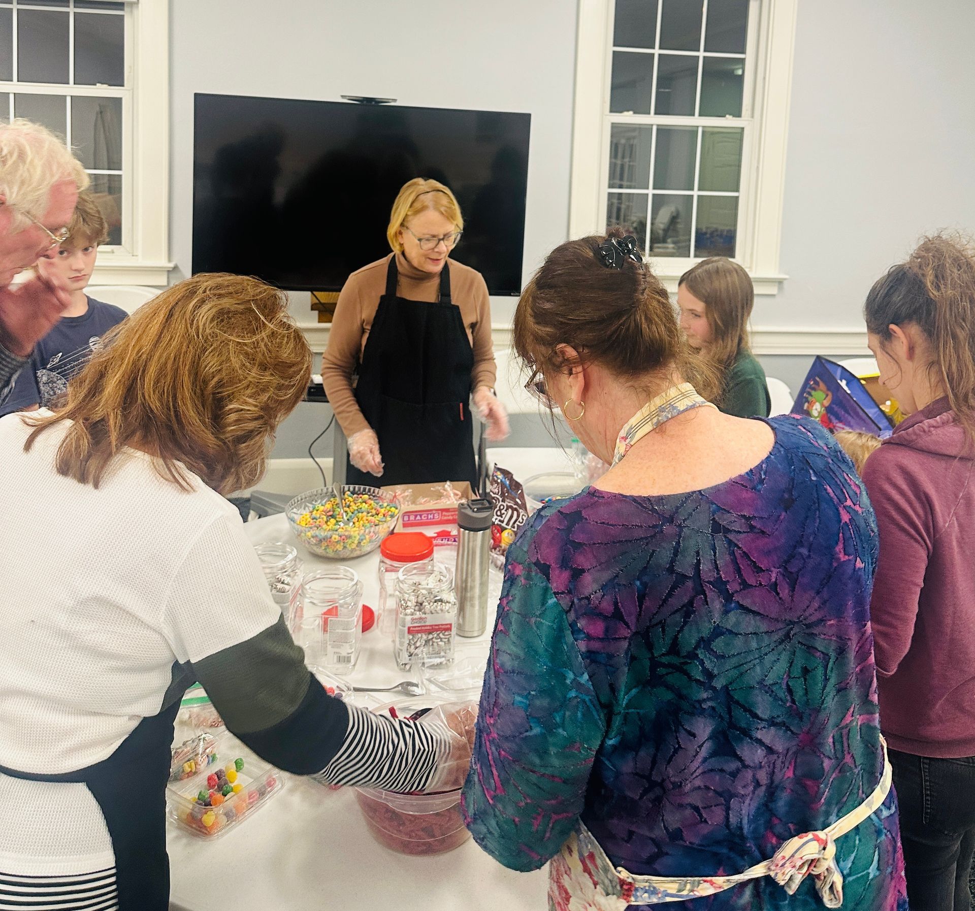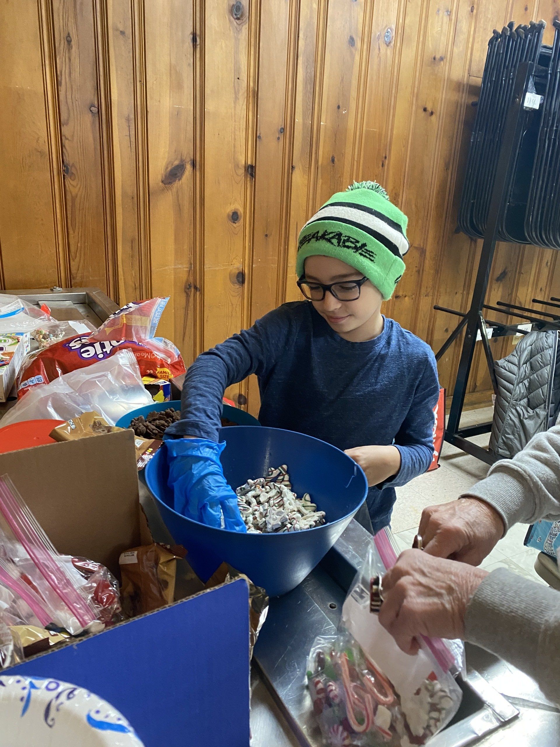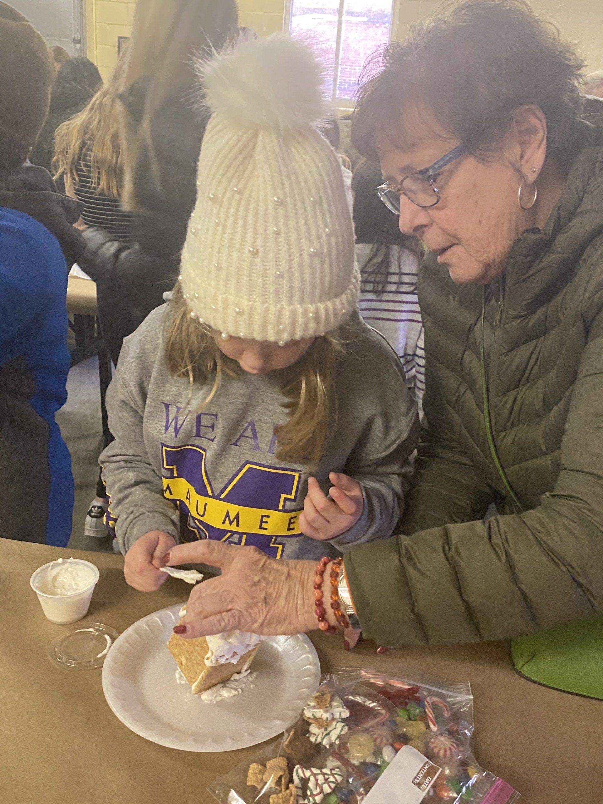 We made 120 gingerbread houses, stuffed 120 bags of candy, had cocoa & cookies.