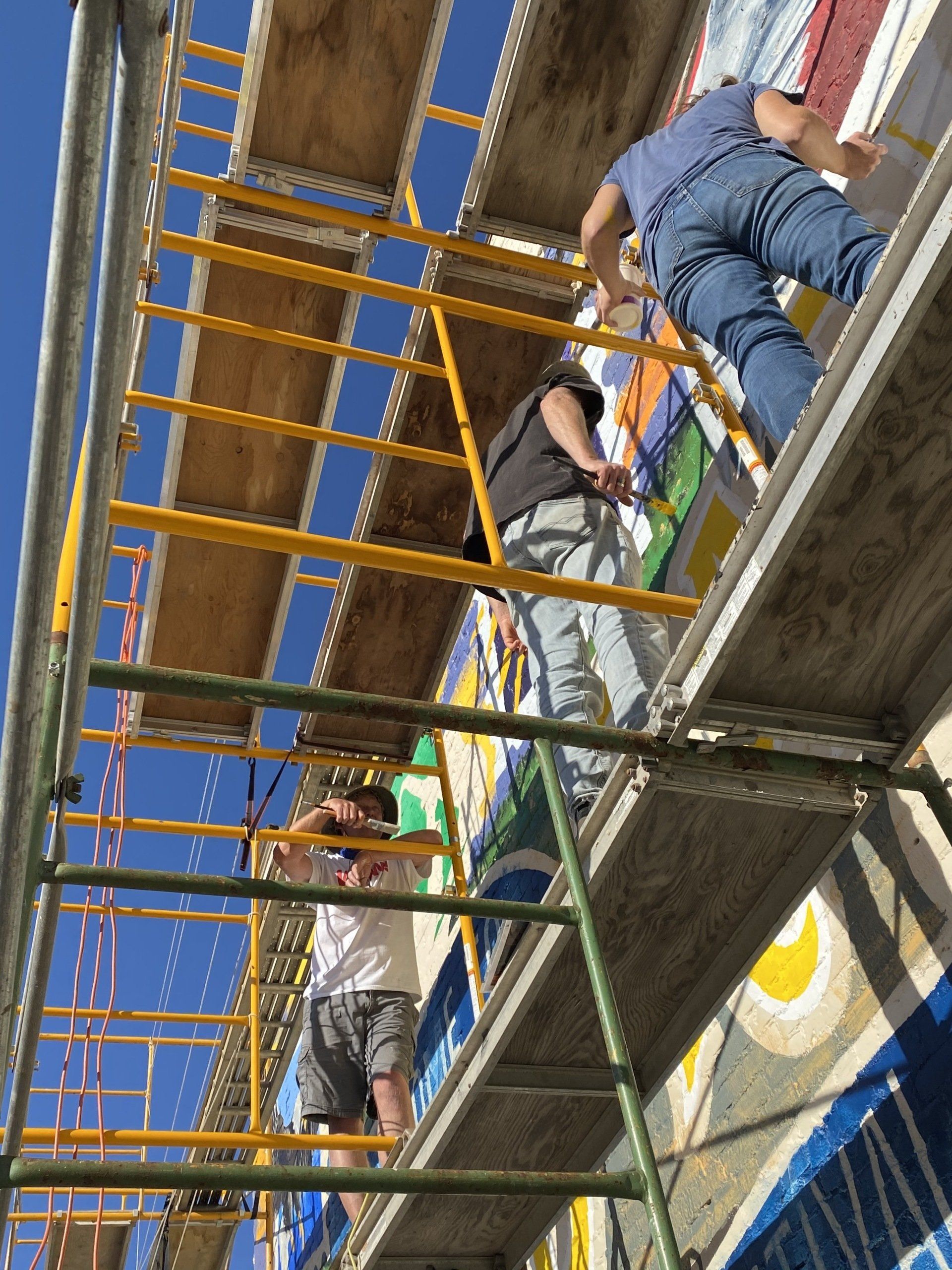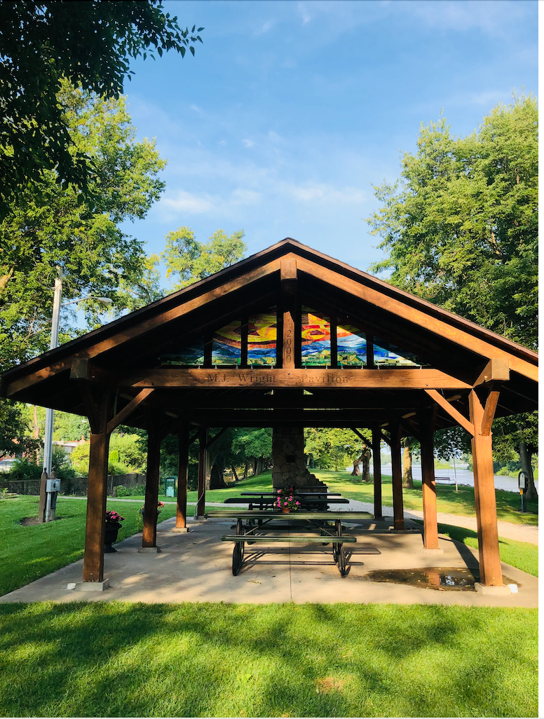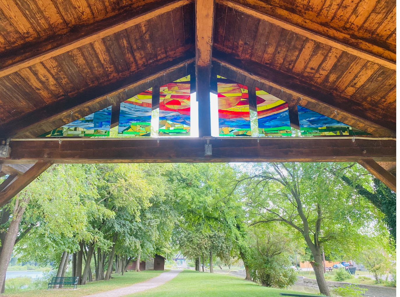 The mosaic hangs in the Wright Pavilion on the towpath.