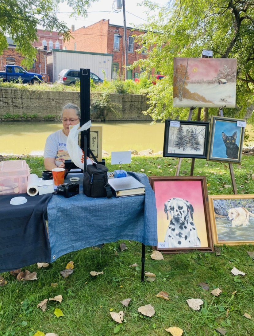 Last year, we had 3 artists; this year, we had 9 local artists set up along the towpath and around town.