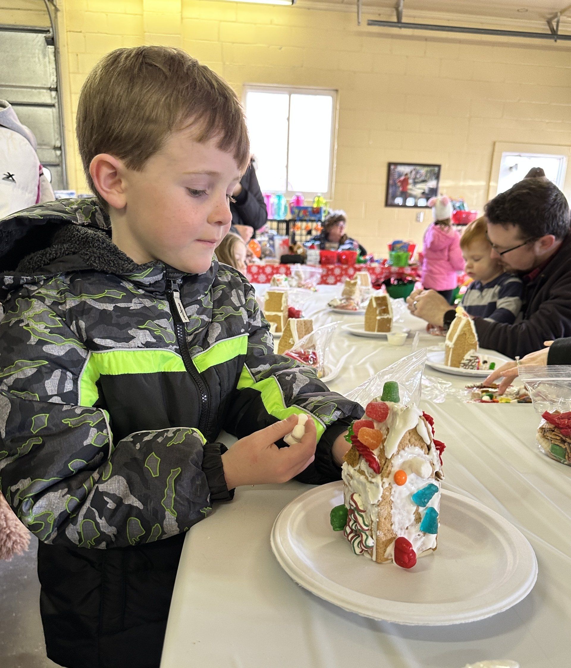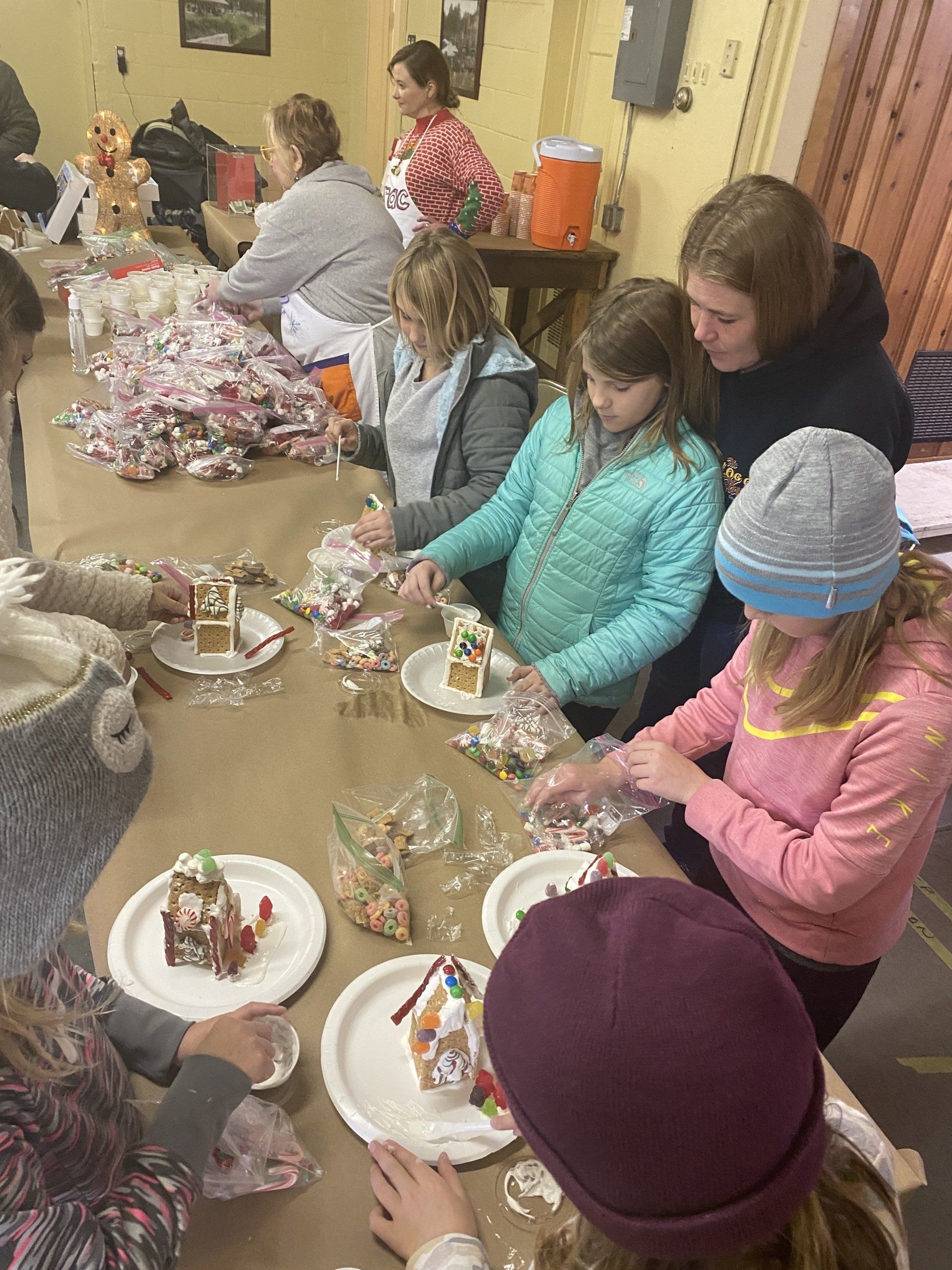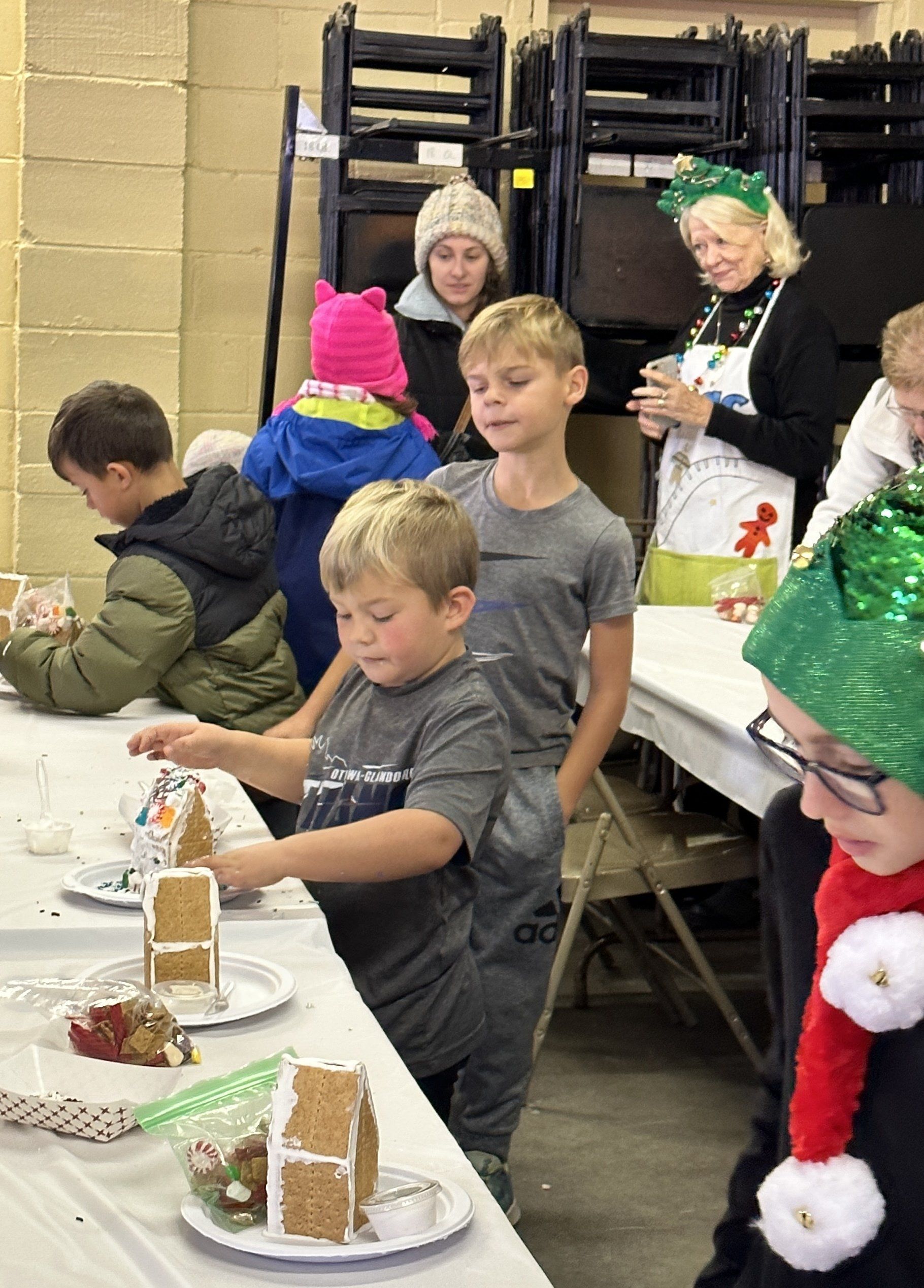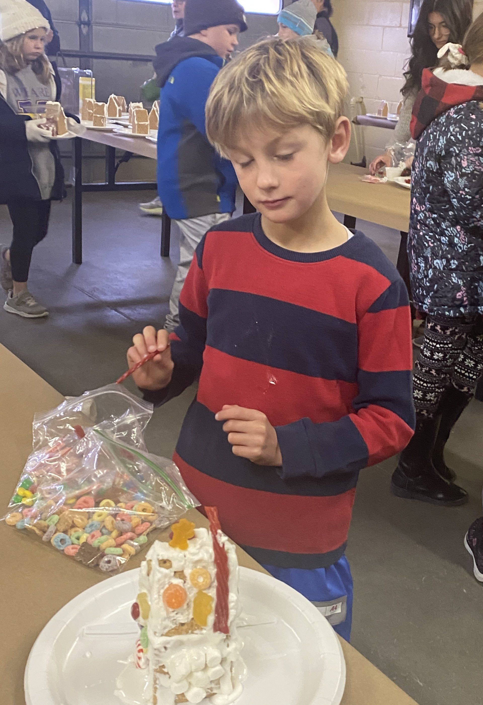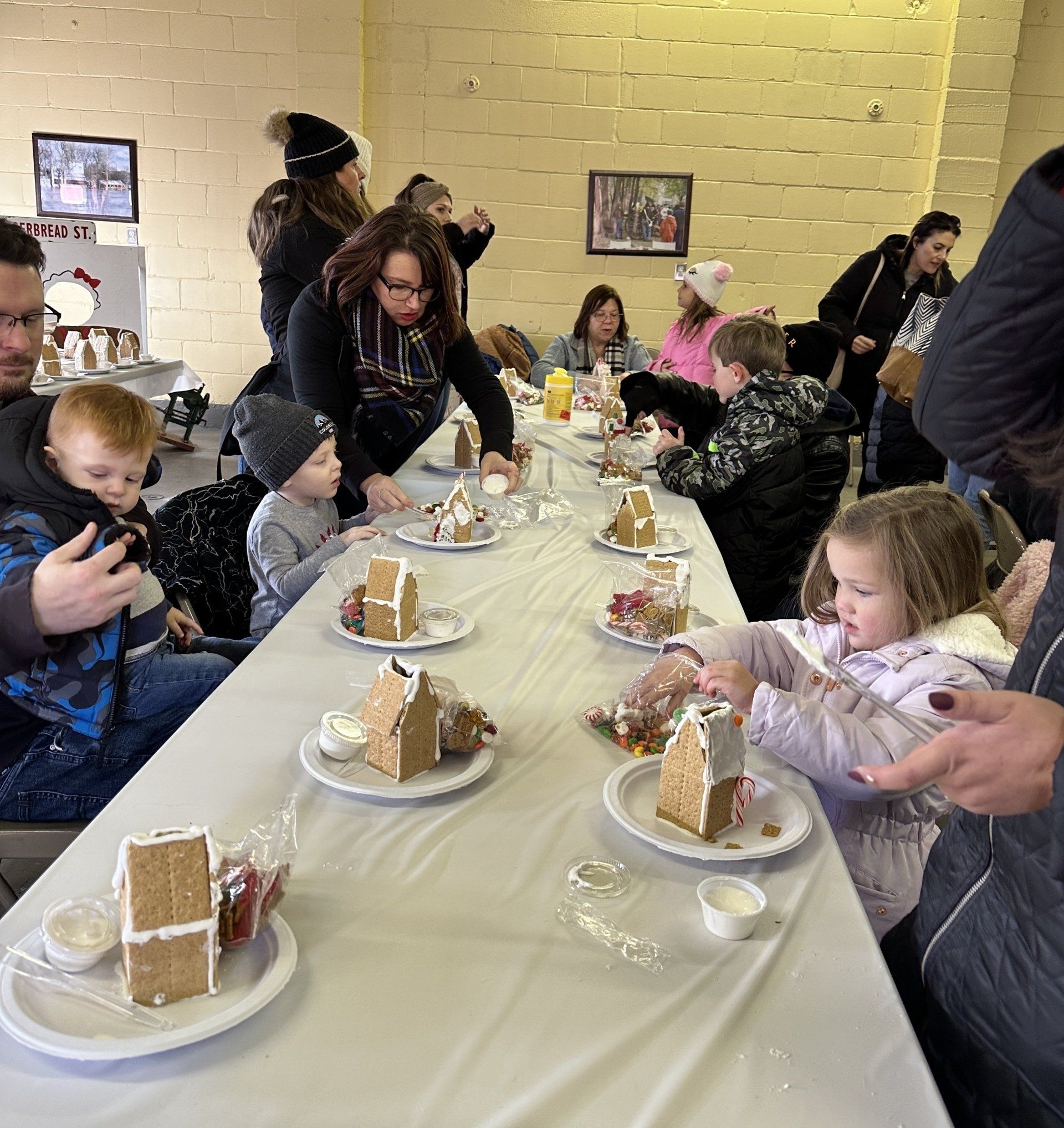 children decorated pre-made (over 100!) gingerbread houses at the Old Fire Hall