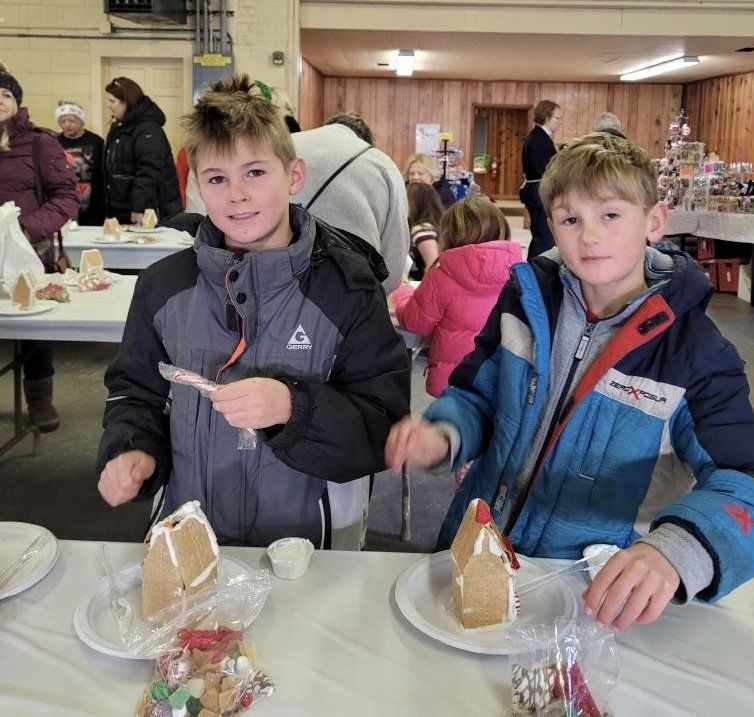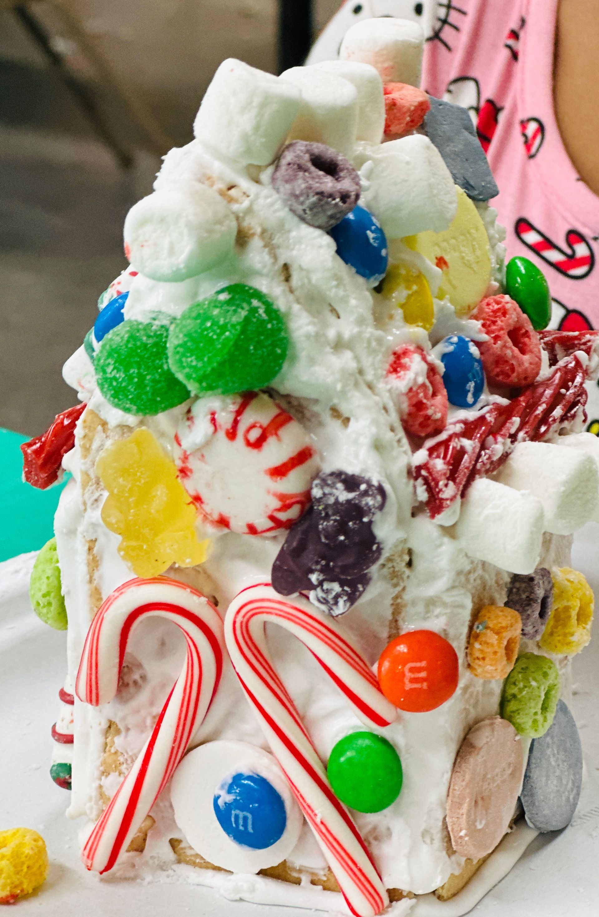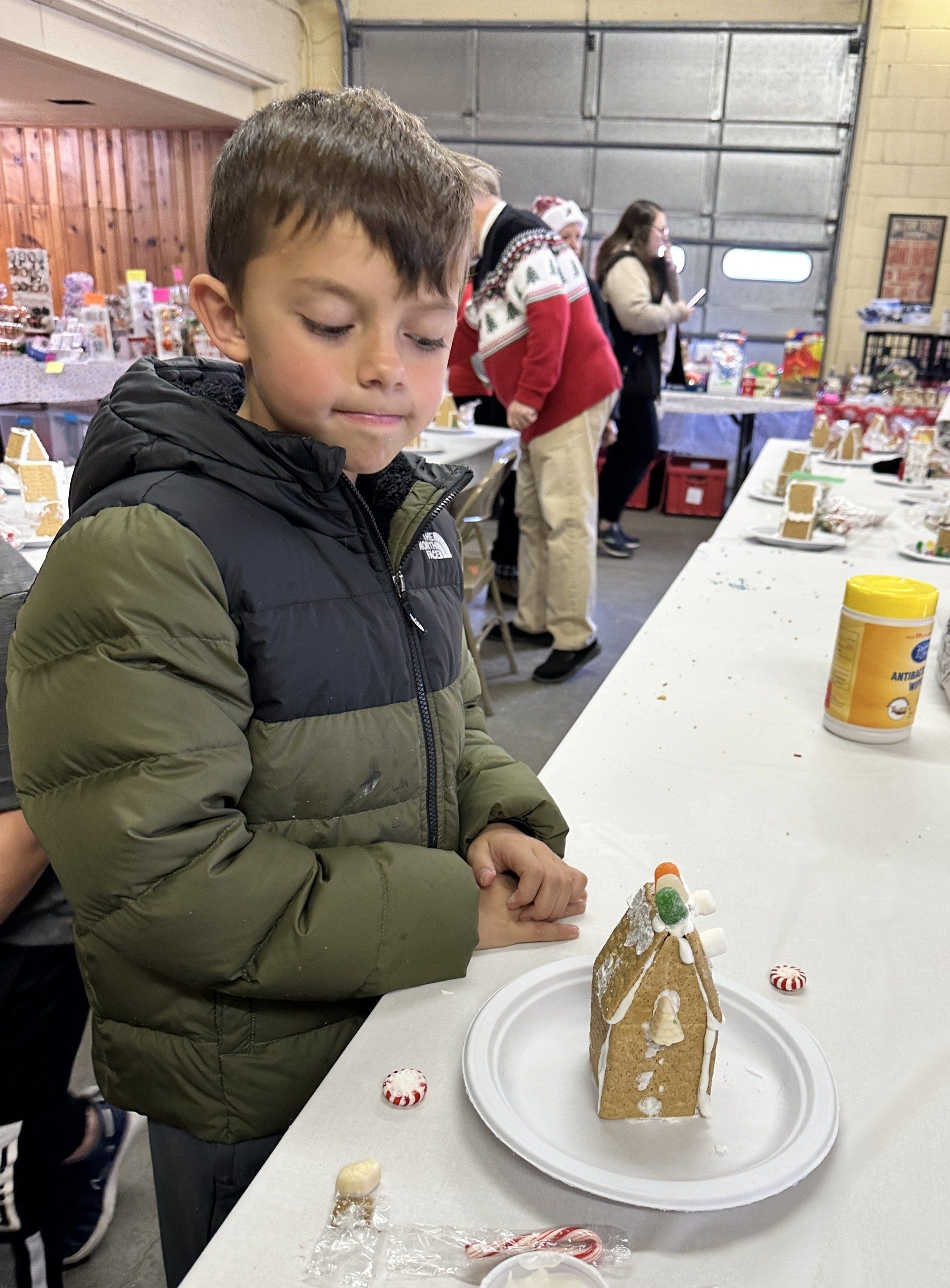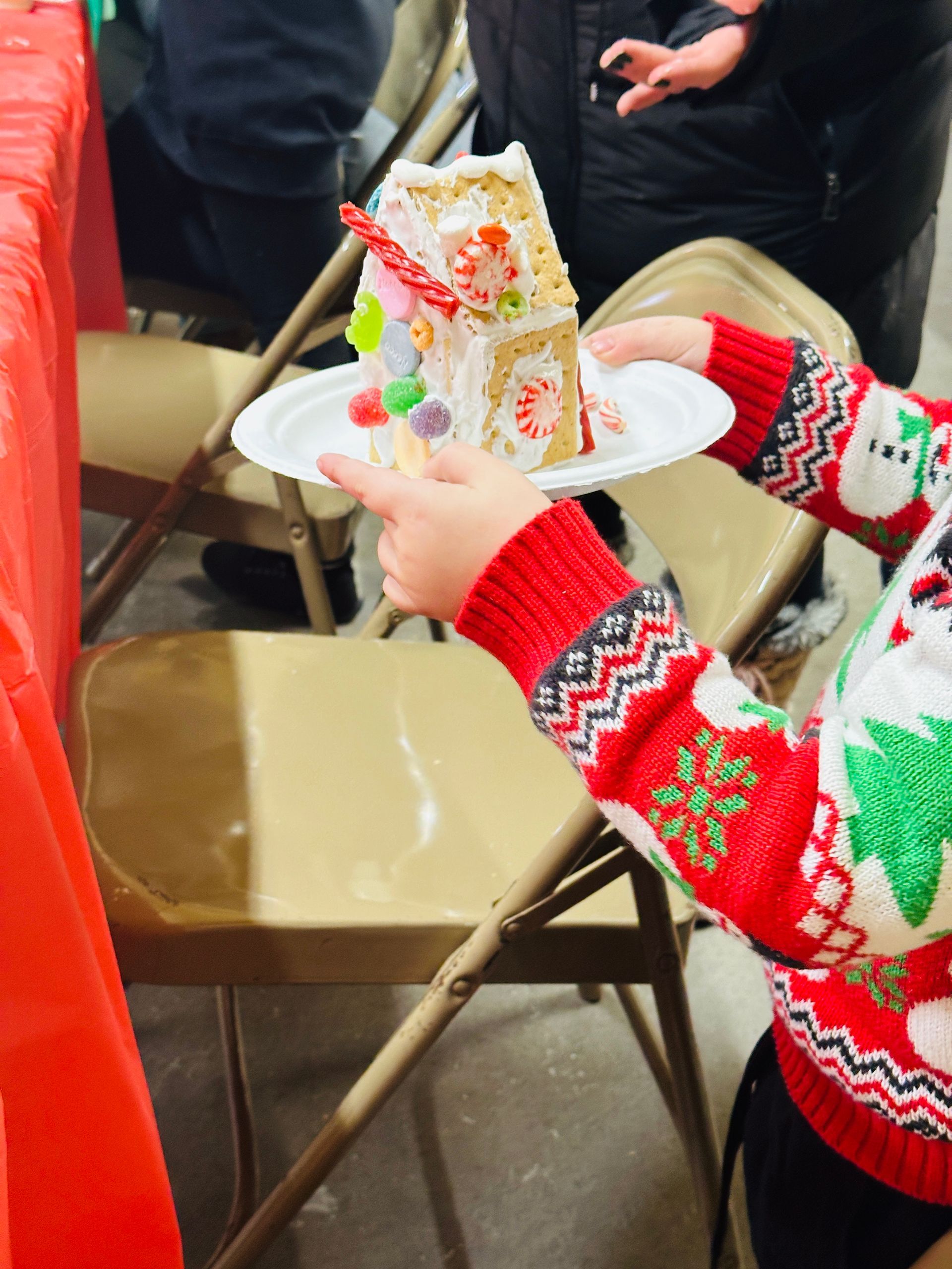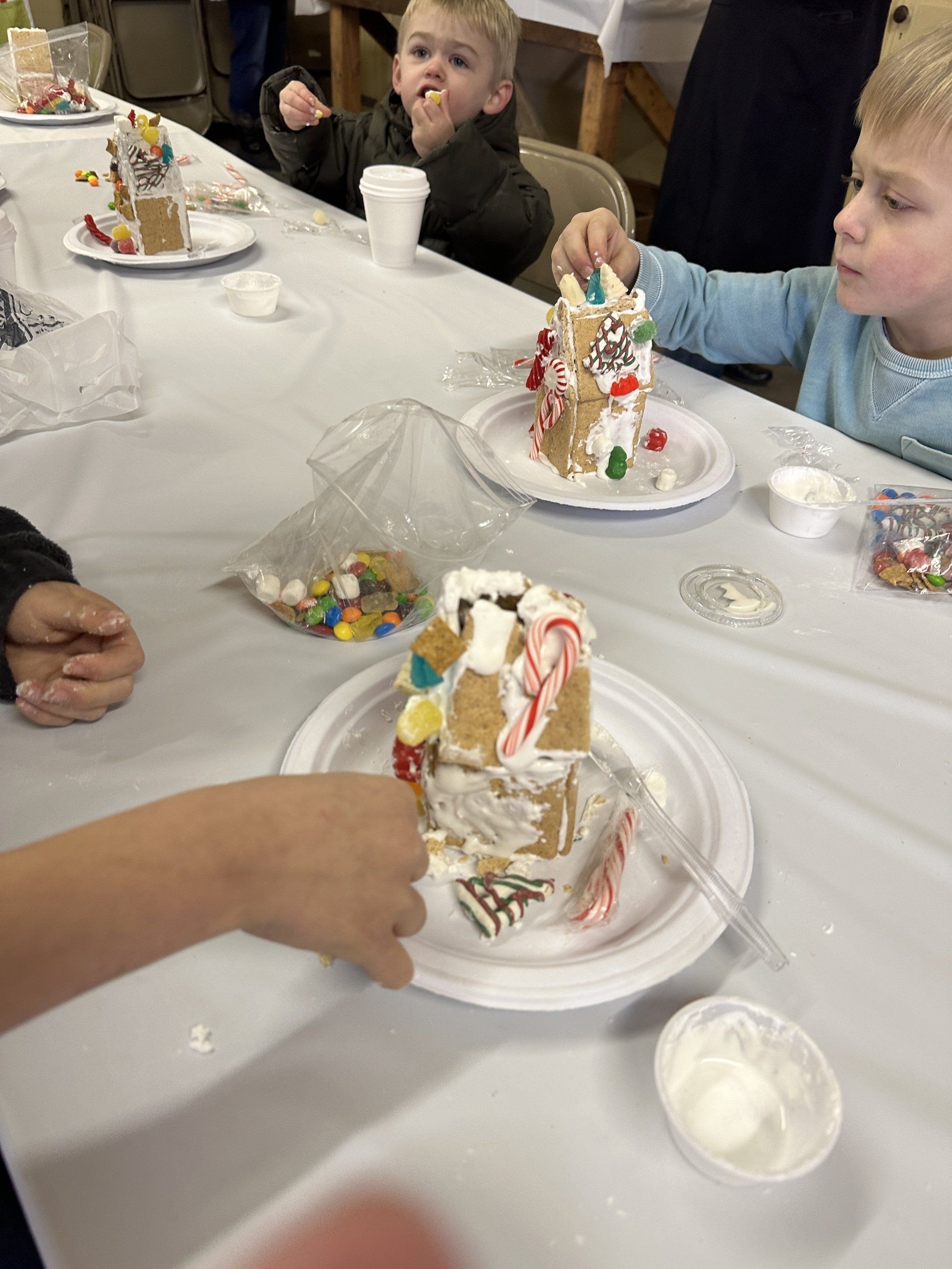children decorated pre-made (over 100!) gingerbread houses at the Old Fire Hall