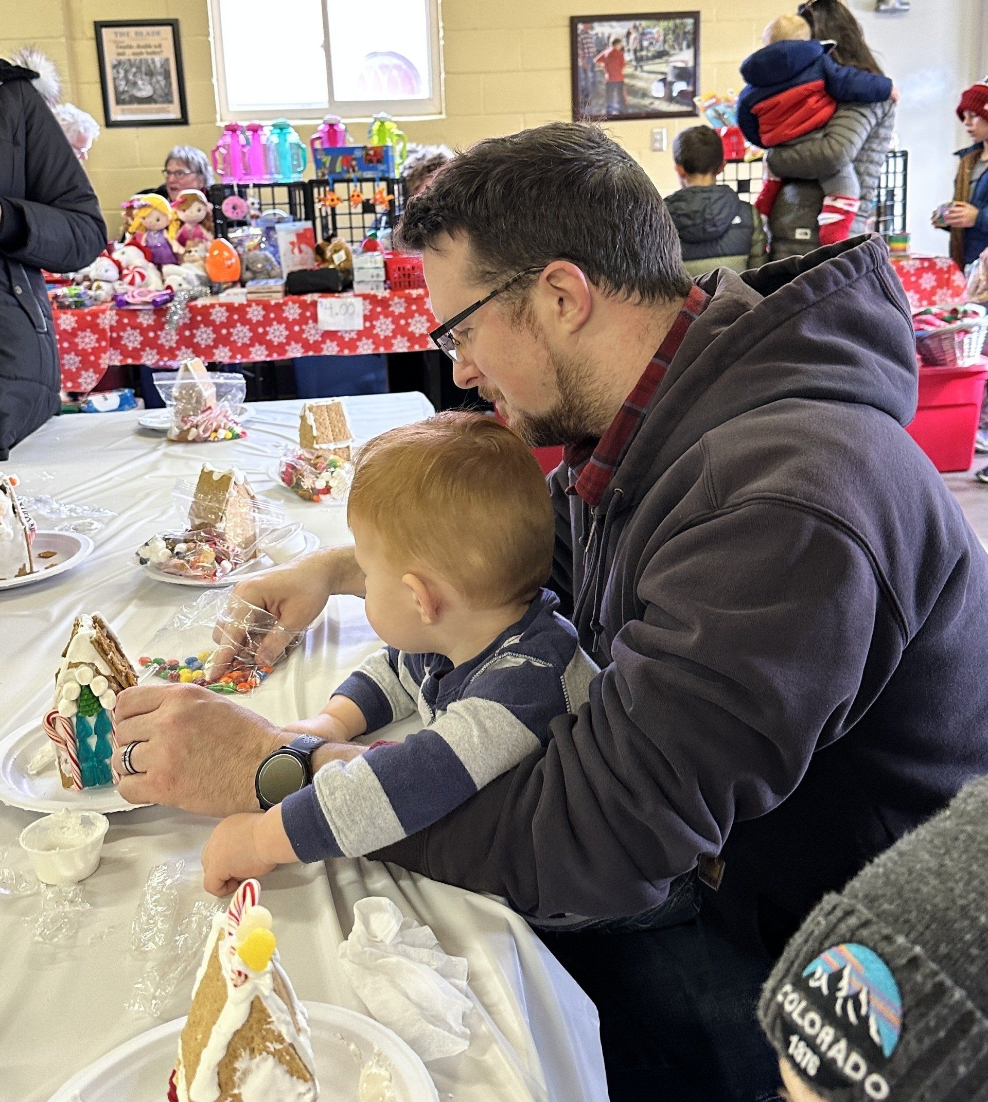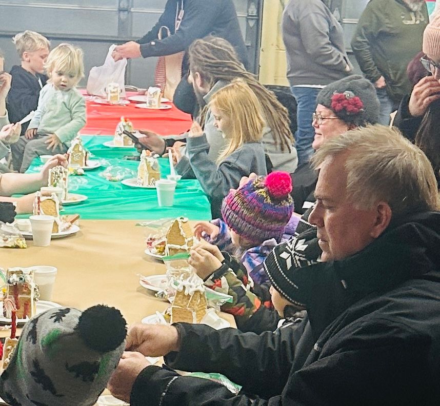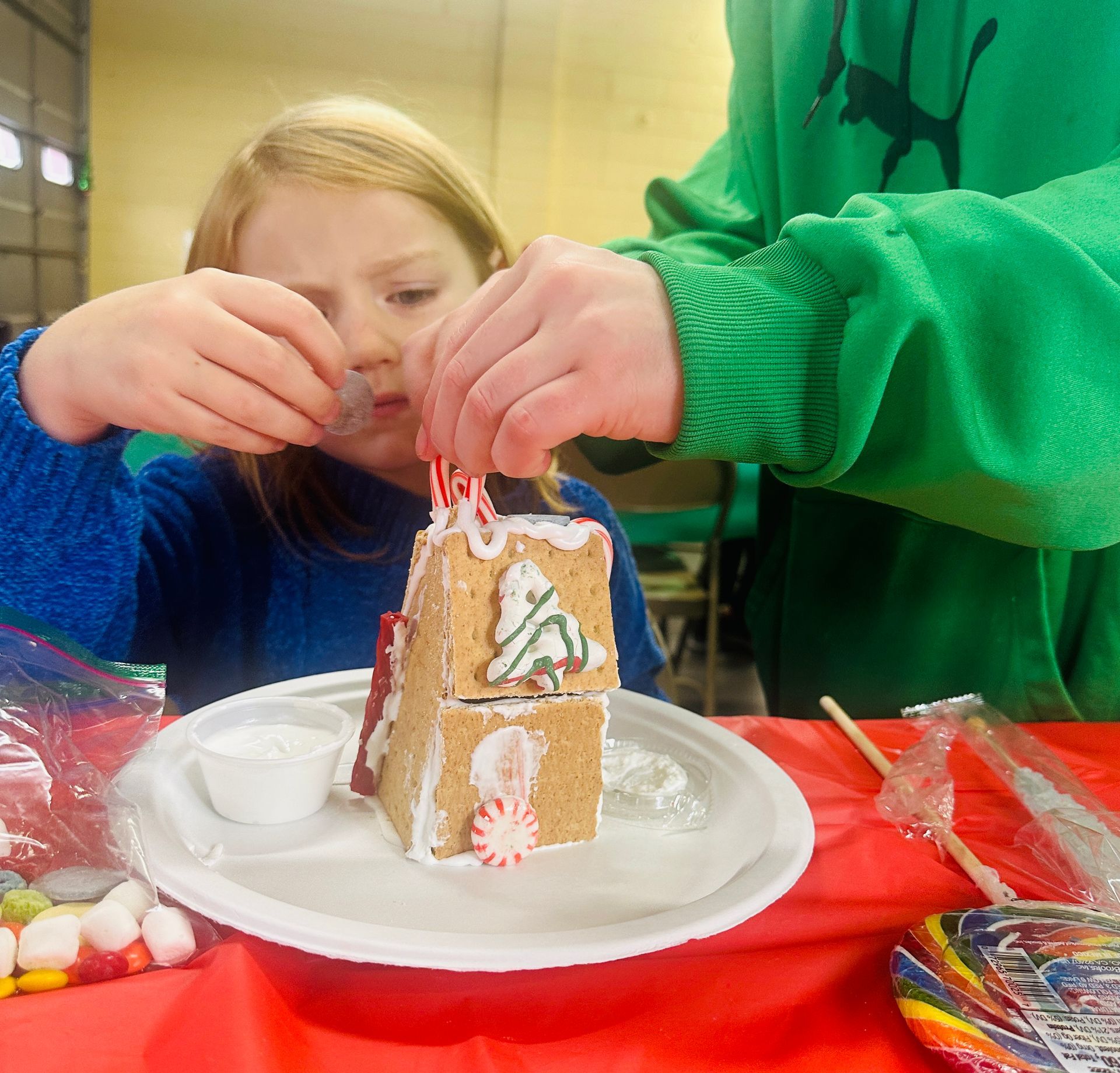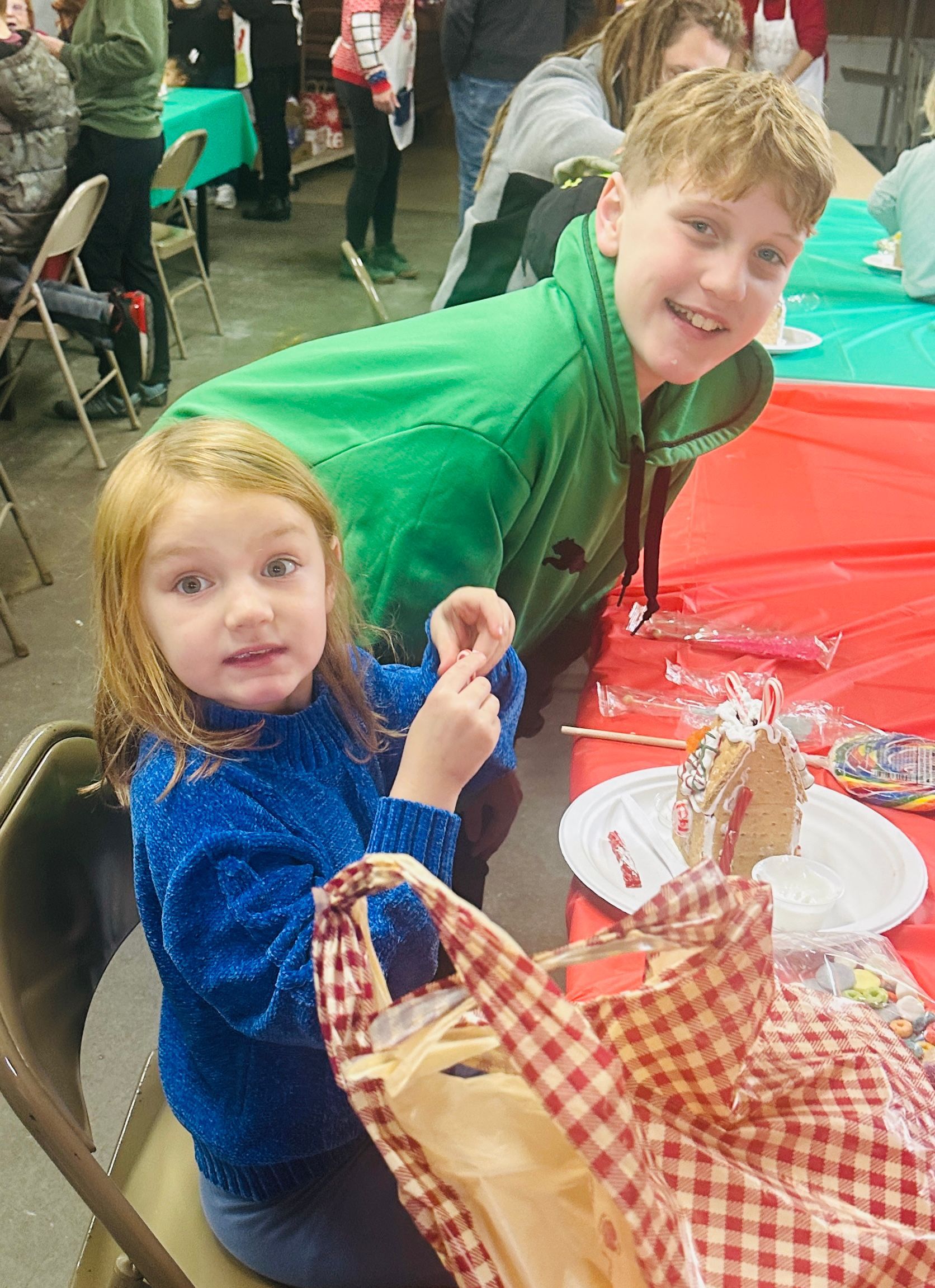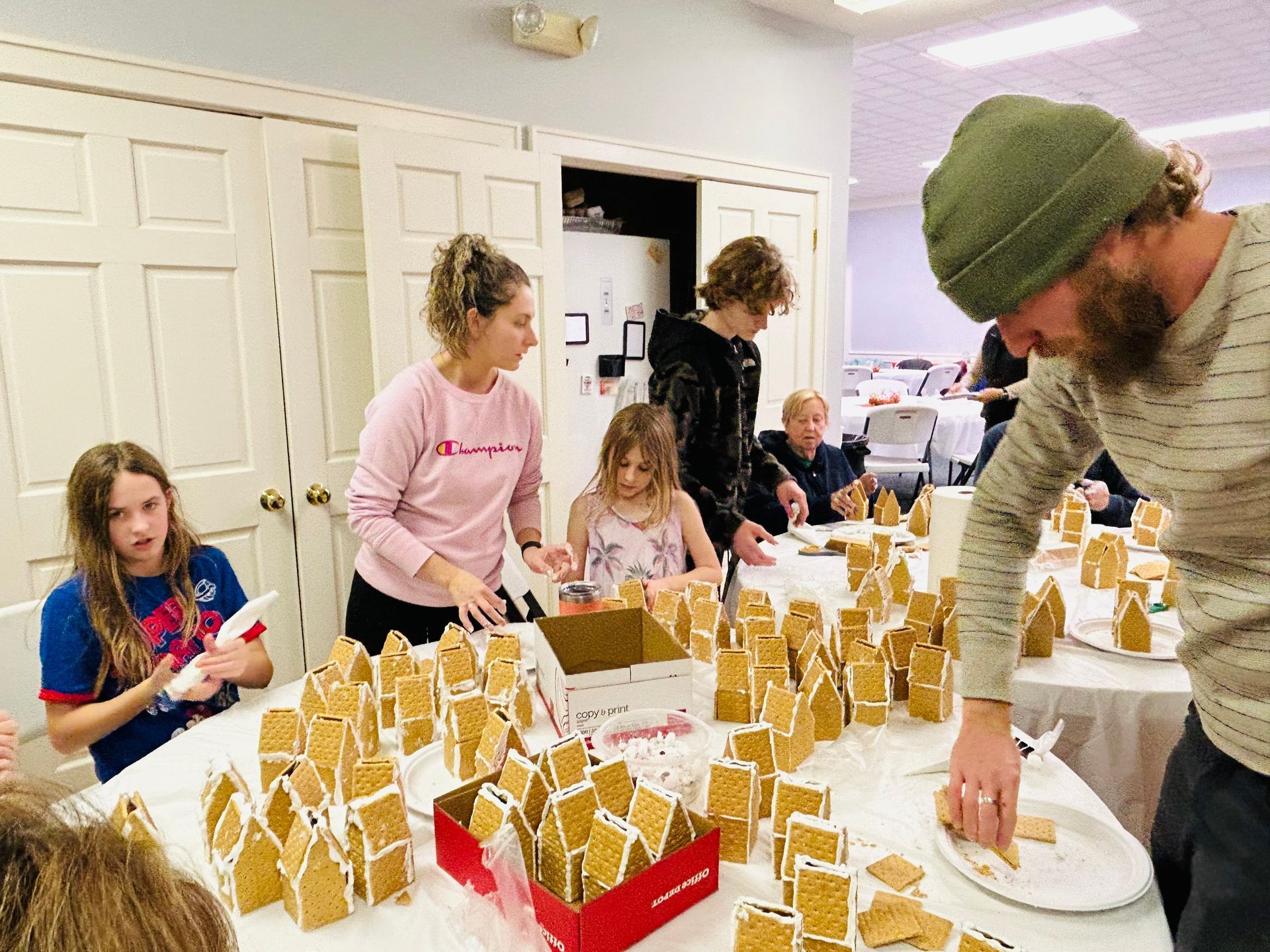children decorated pre-made (over 100!) gingerbread houses at the Old Fire Hall