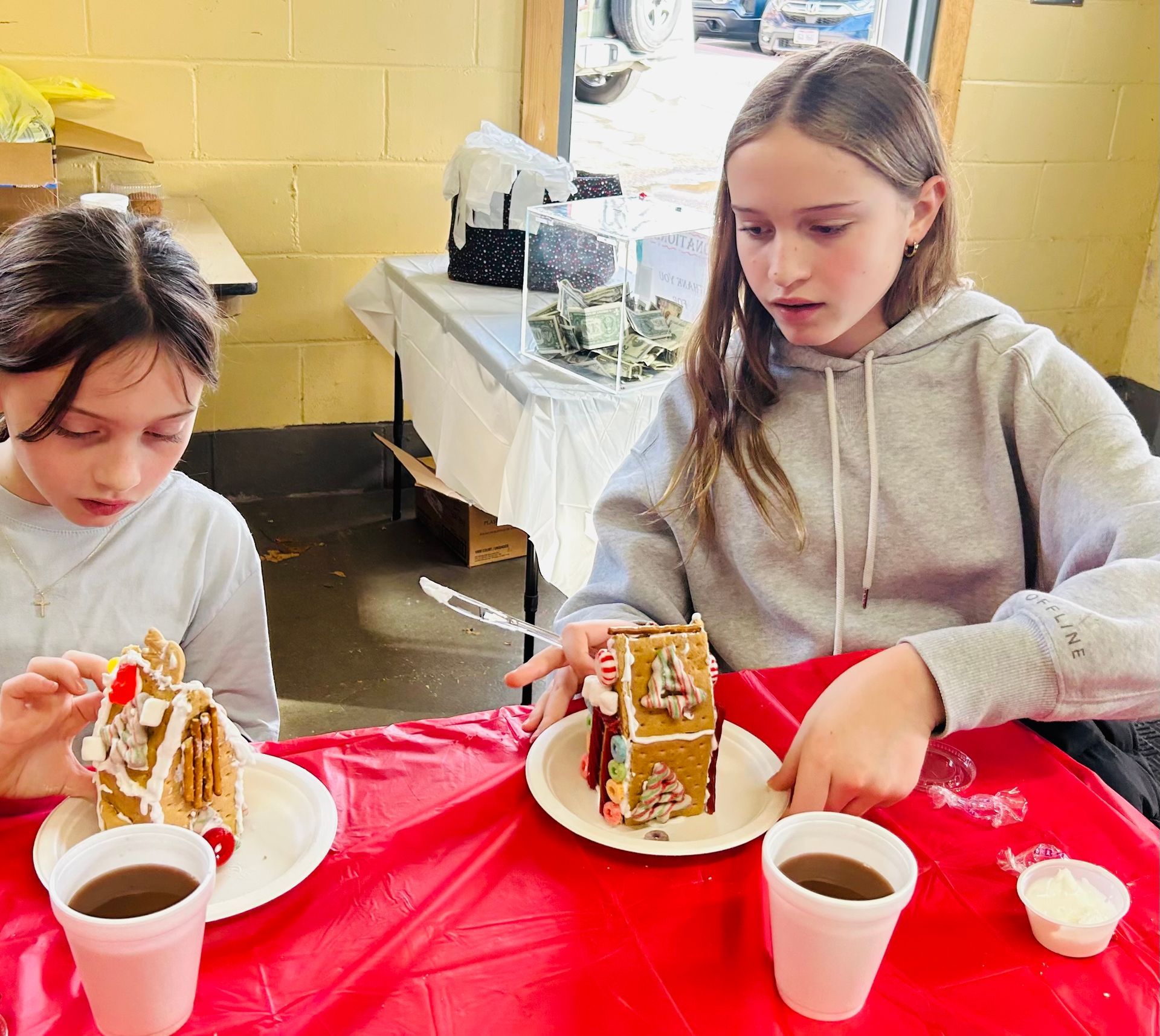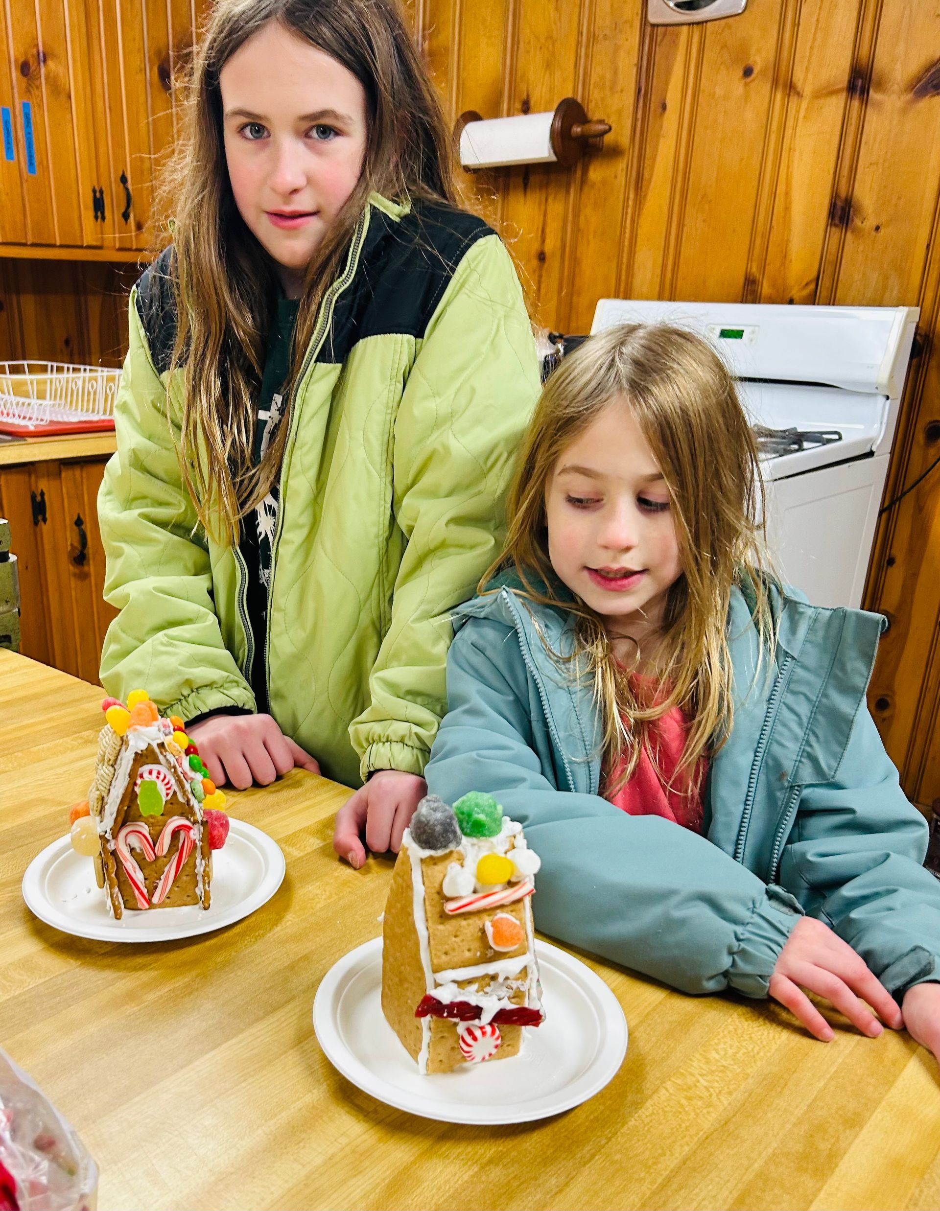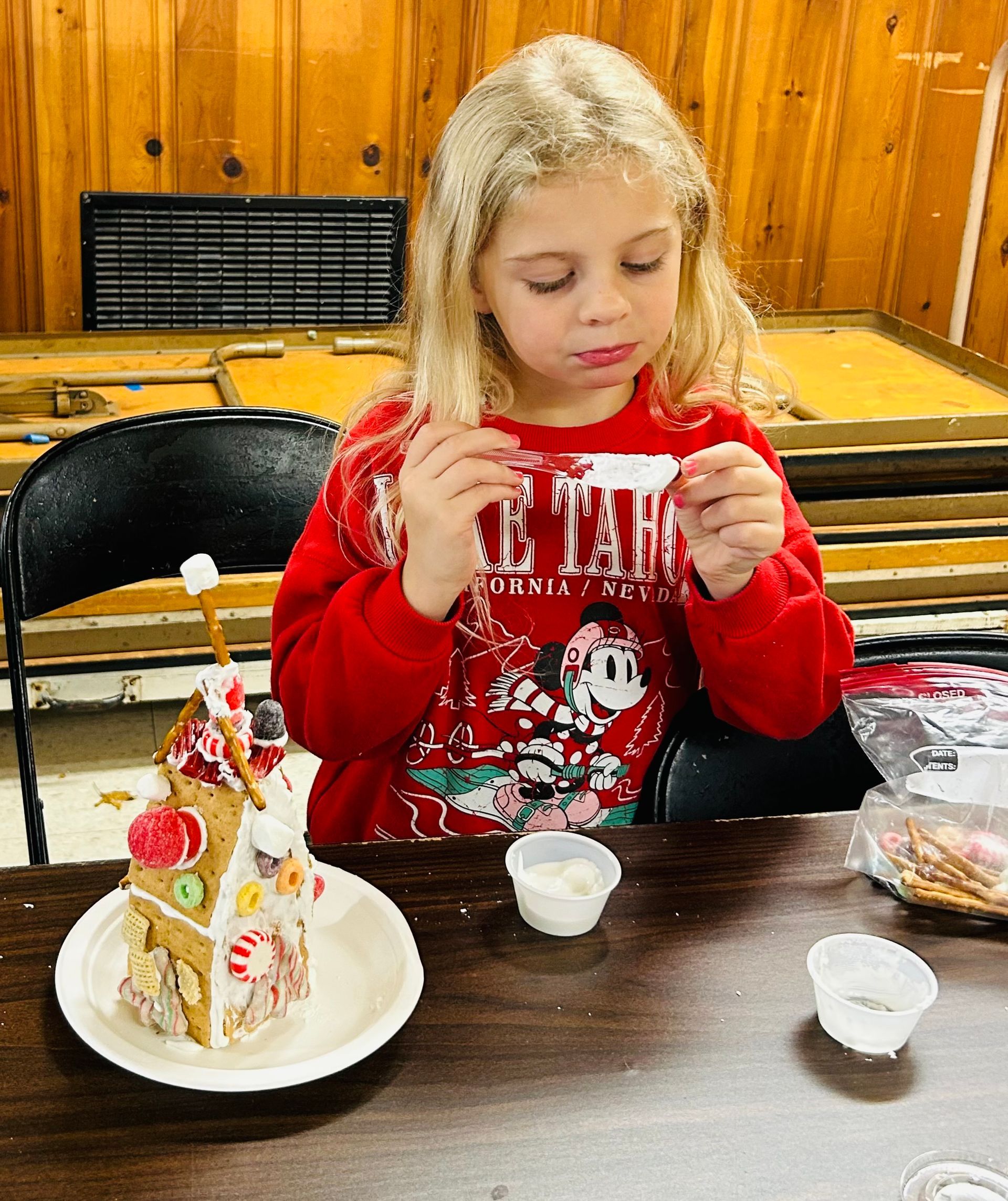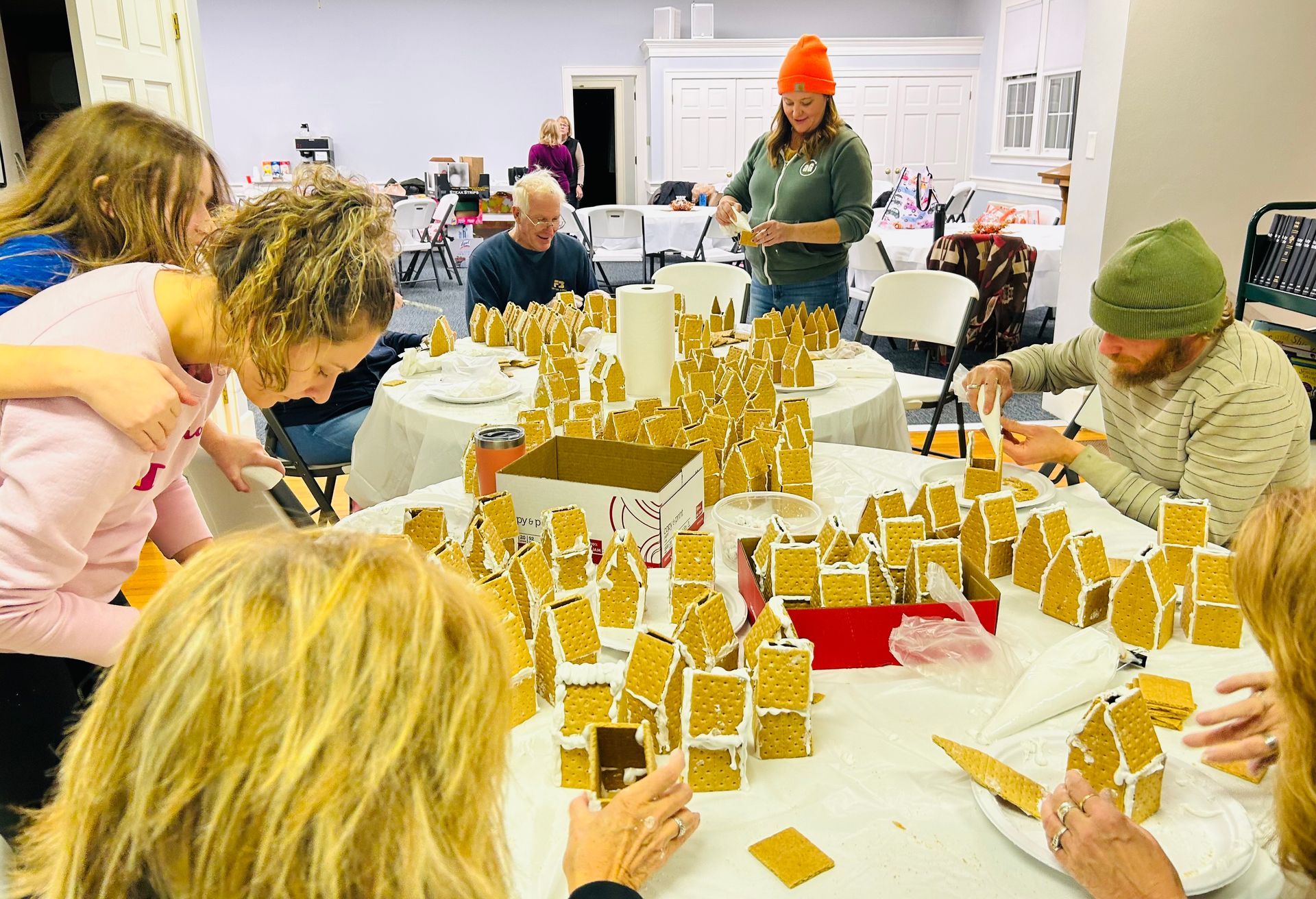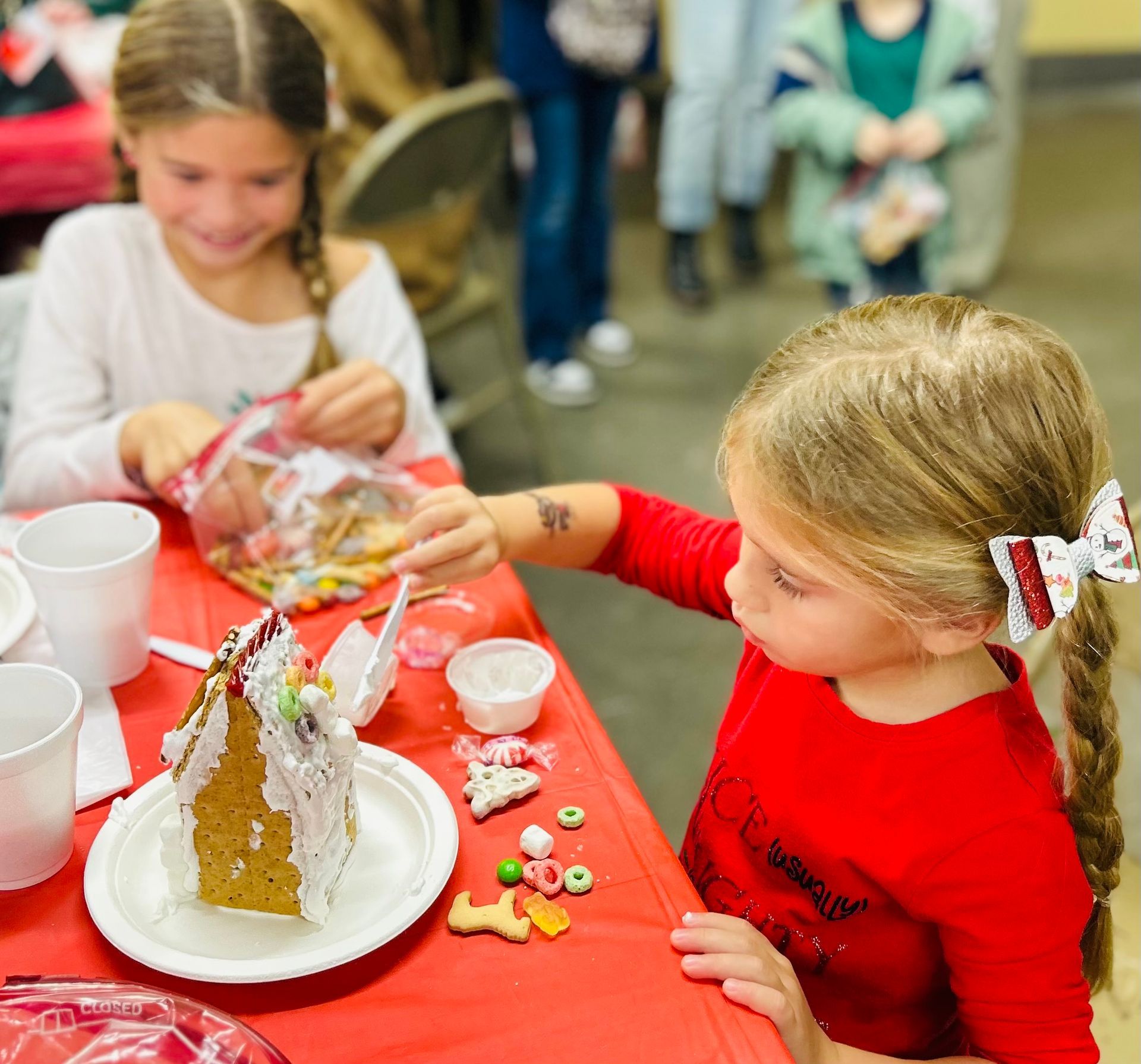 children decorated pre-made (over 100!) gingerbread houses at the Old Fire Hall