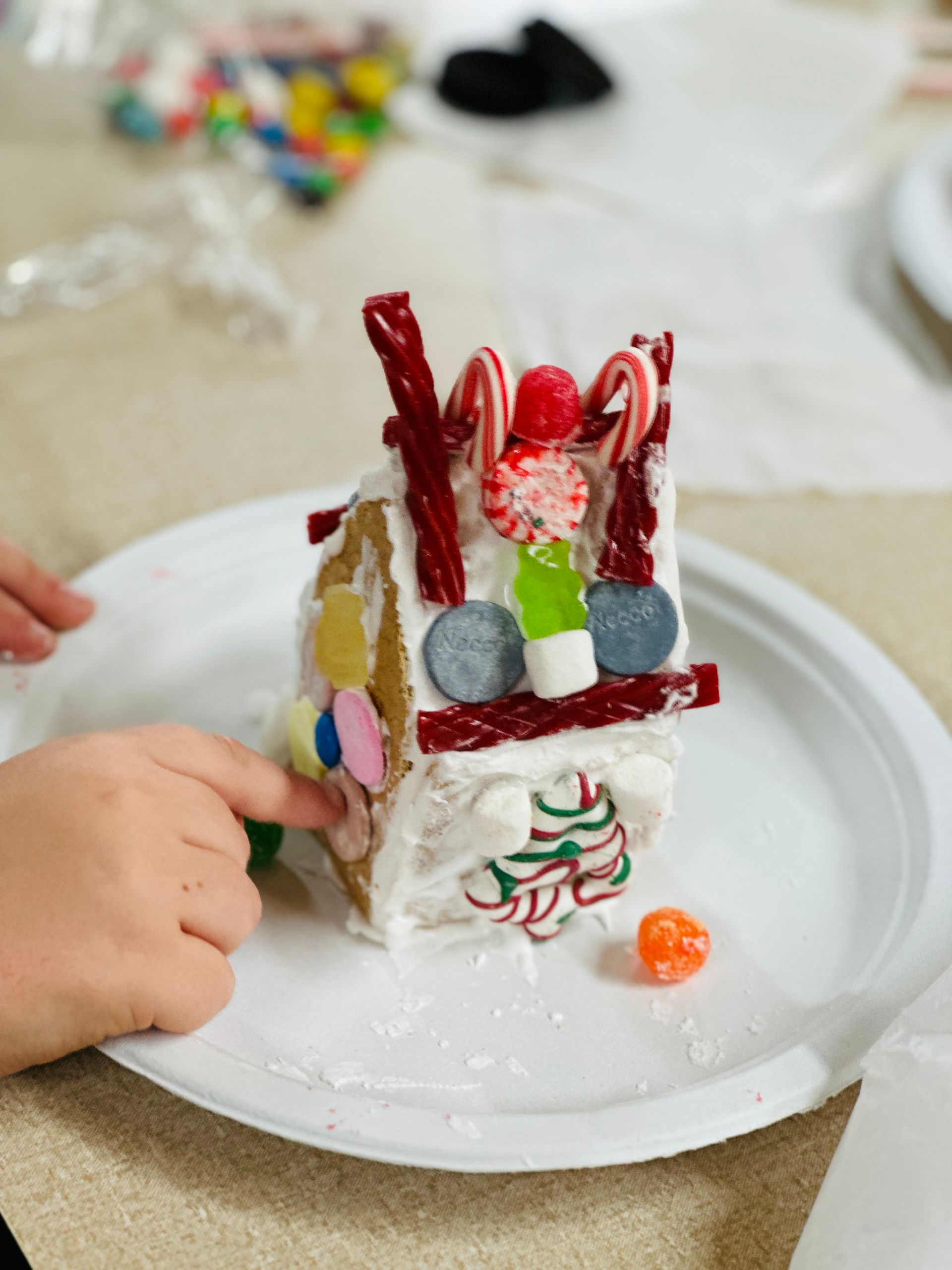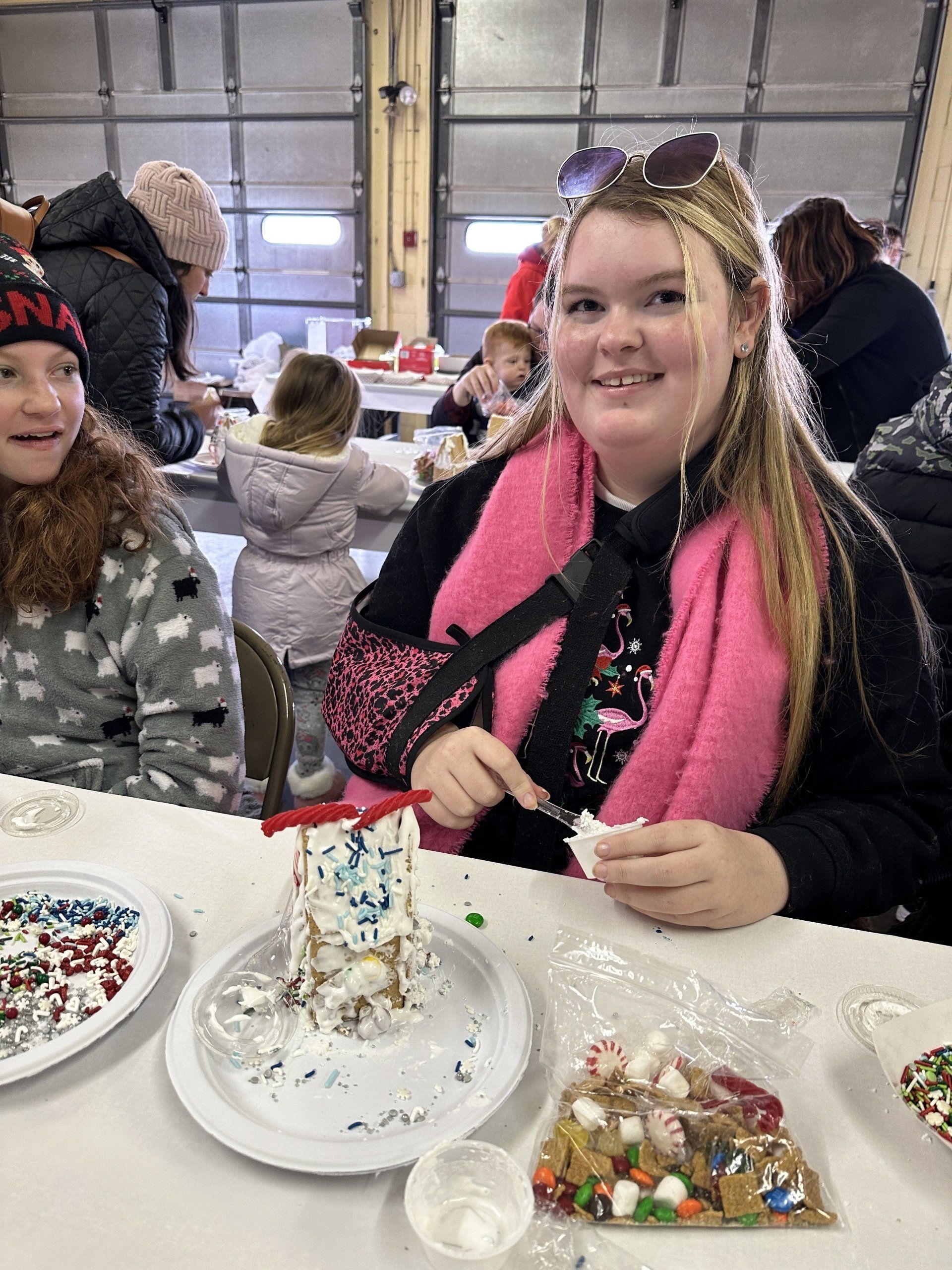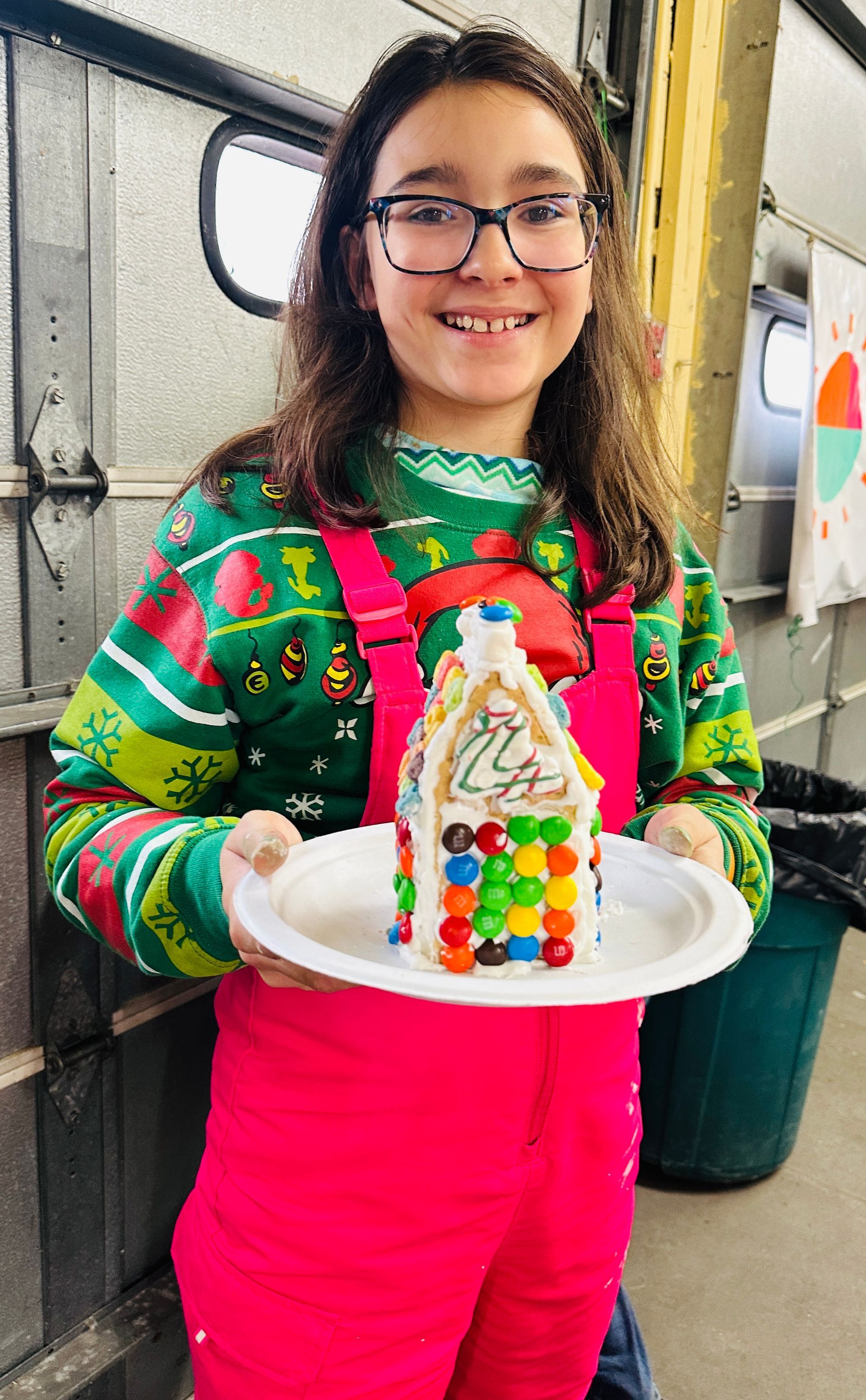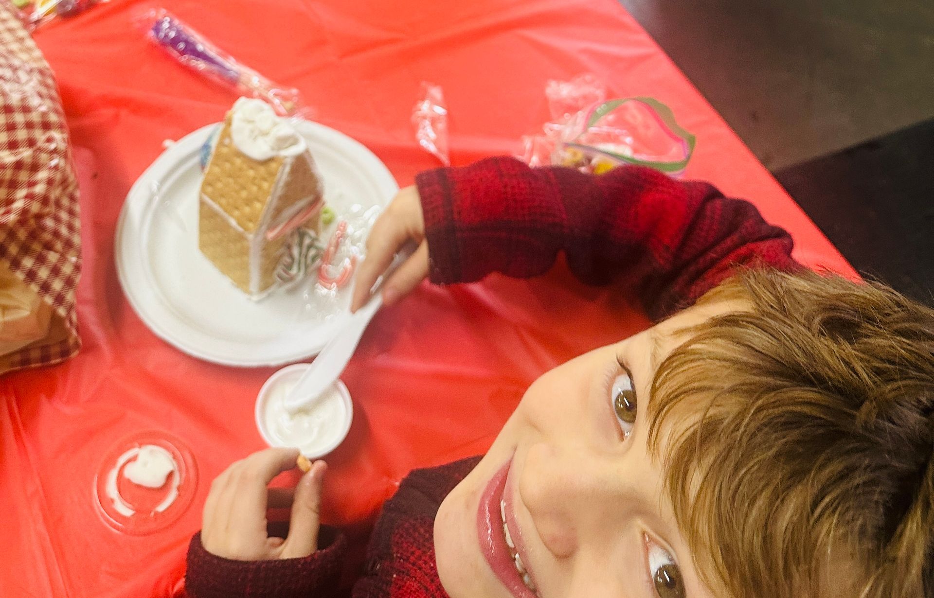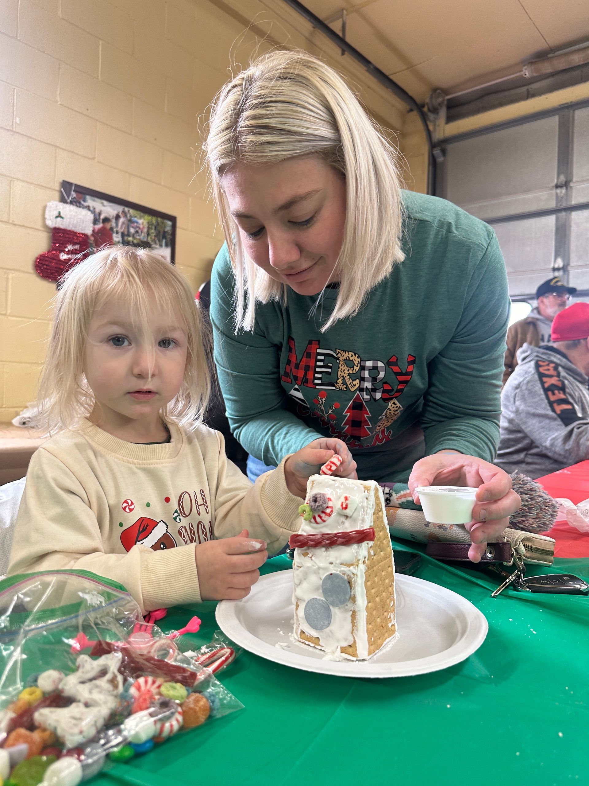children decorated pre-made (over 100!) gingerbread houses at the Old Fire Hall