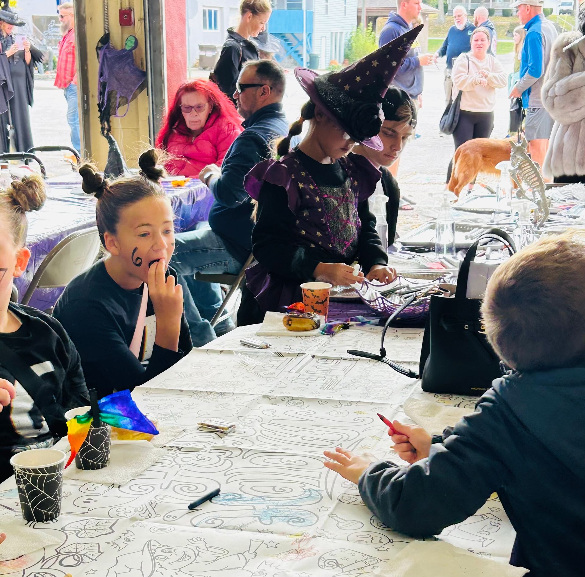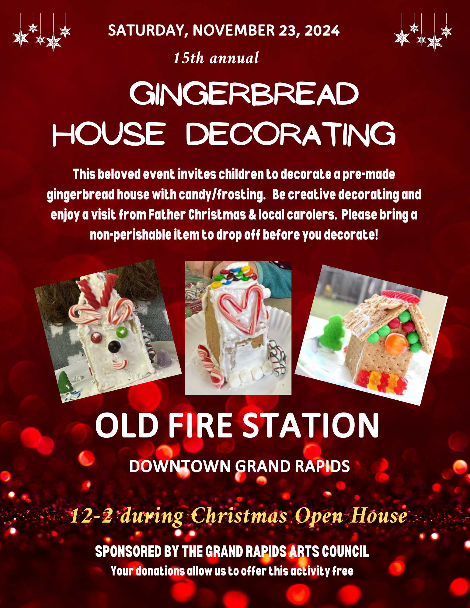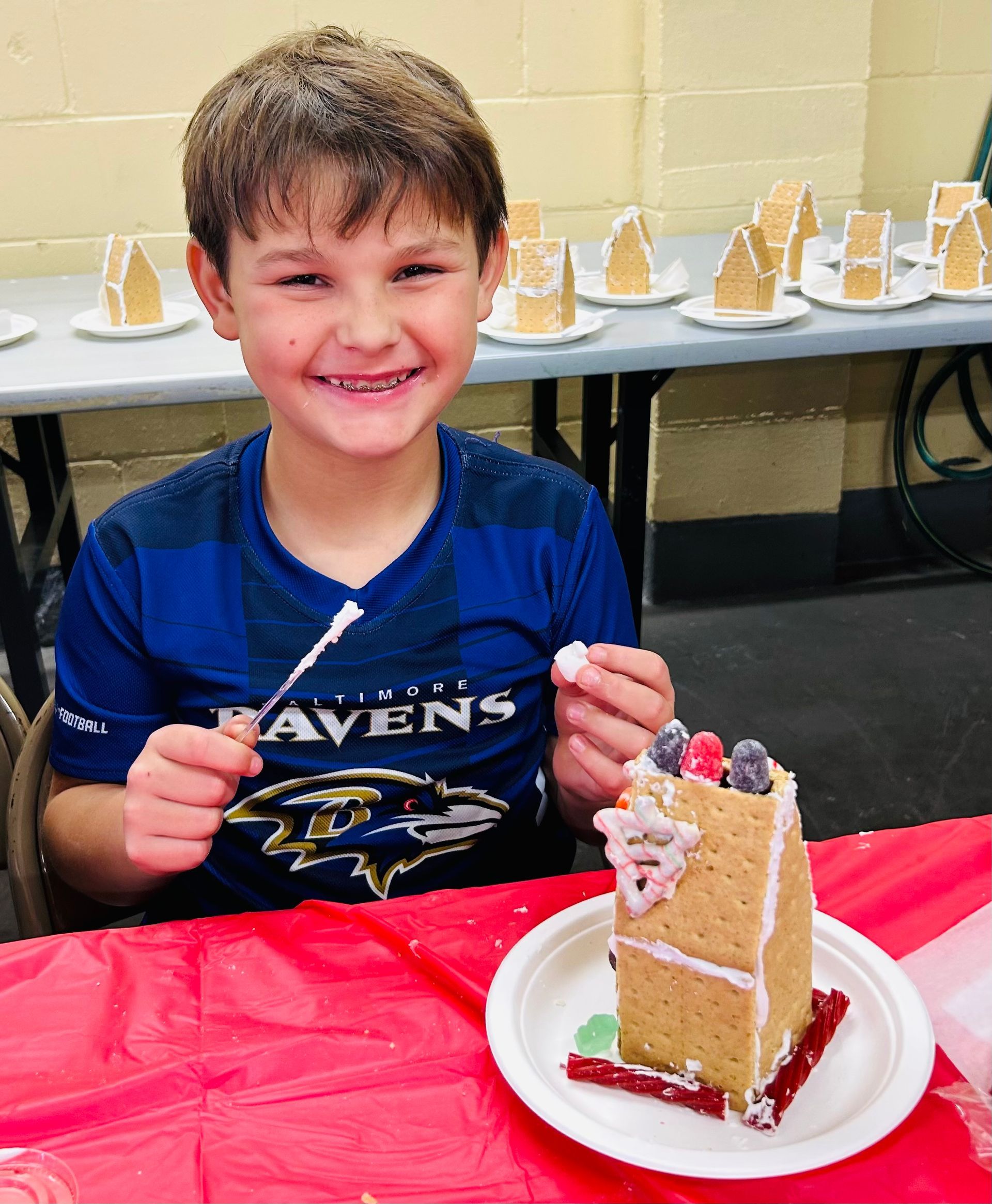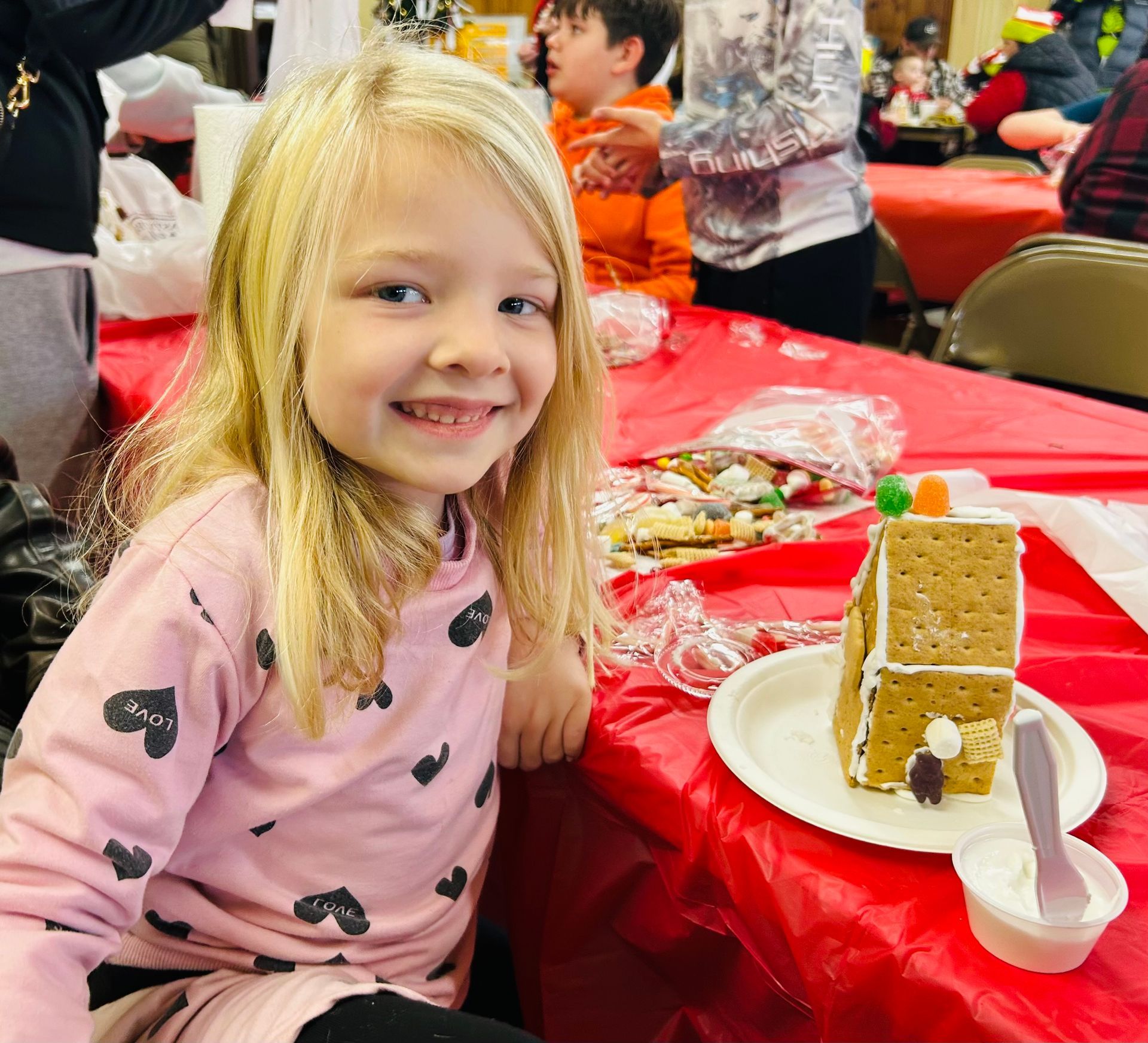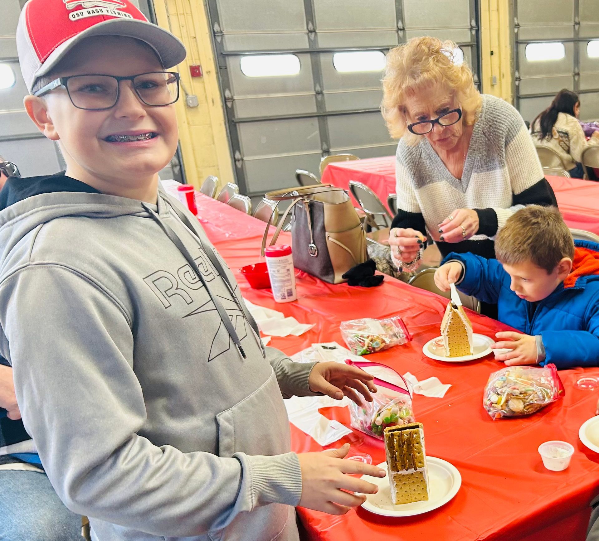 children decorated pre-made (over 100!) gingerbread houses at the Old Fire Hall