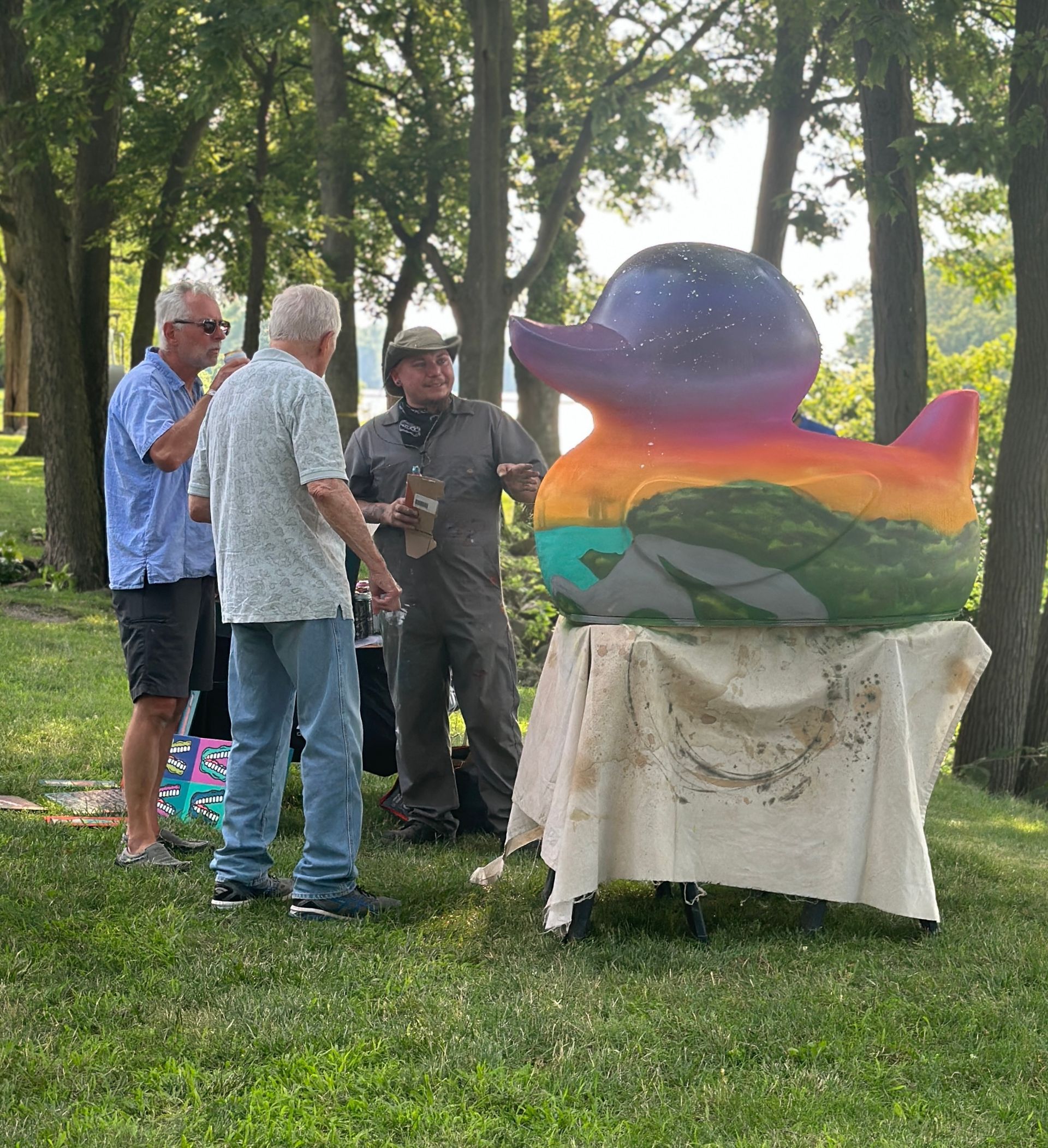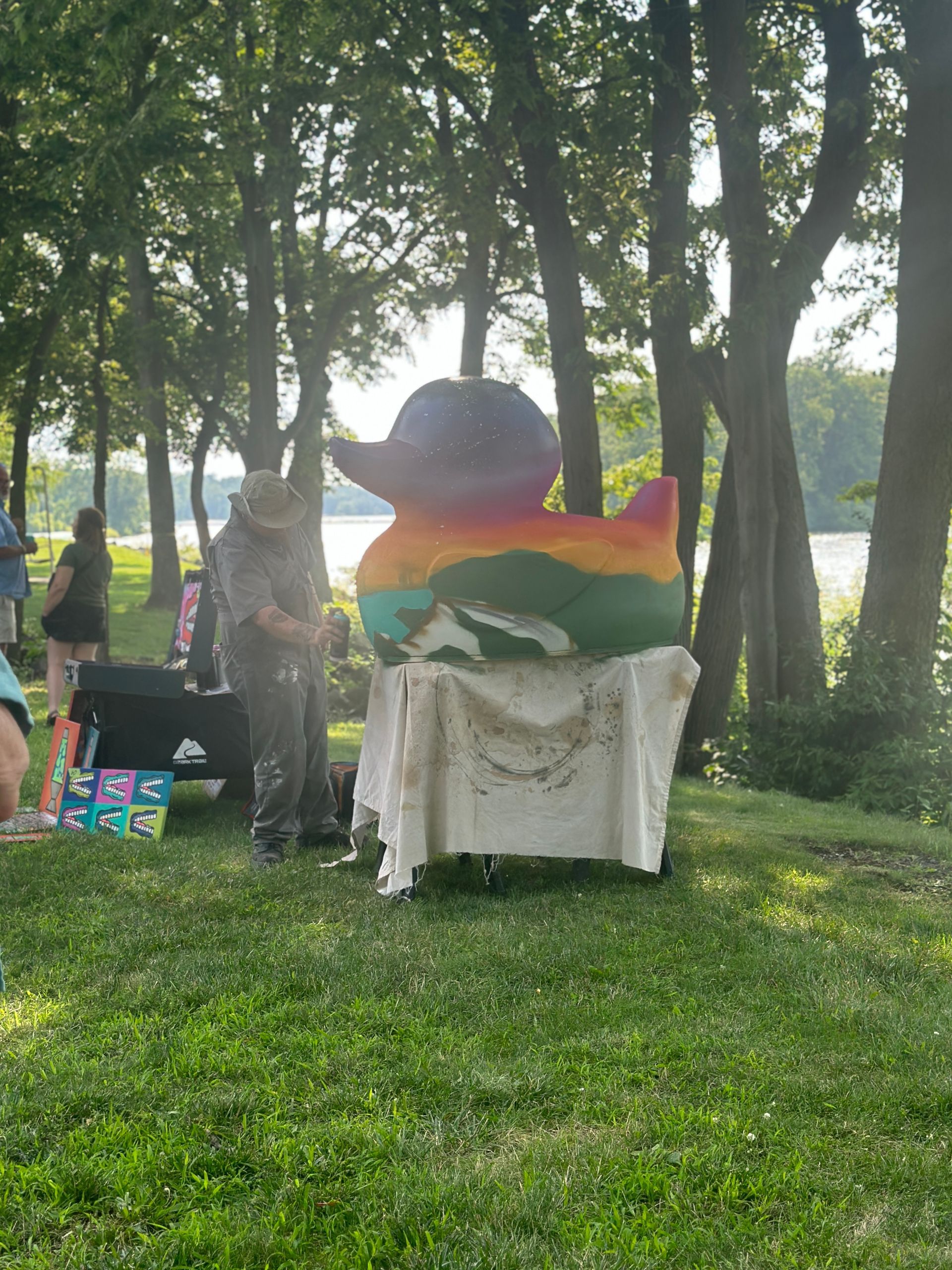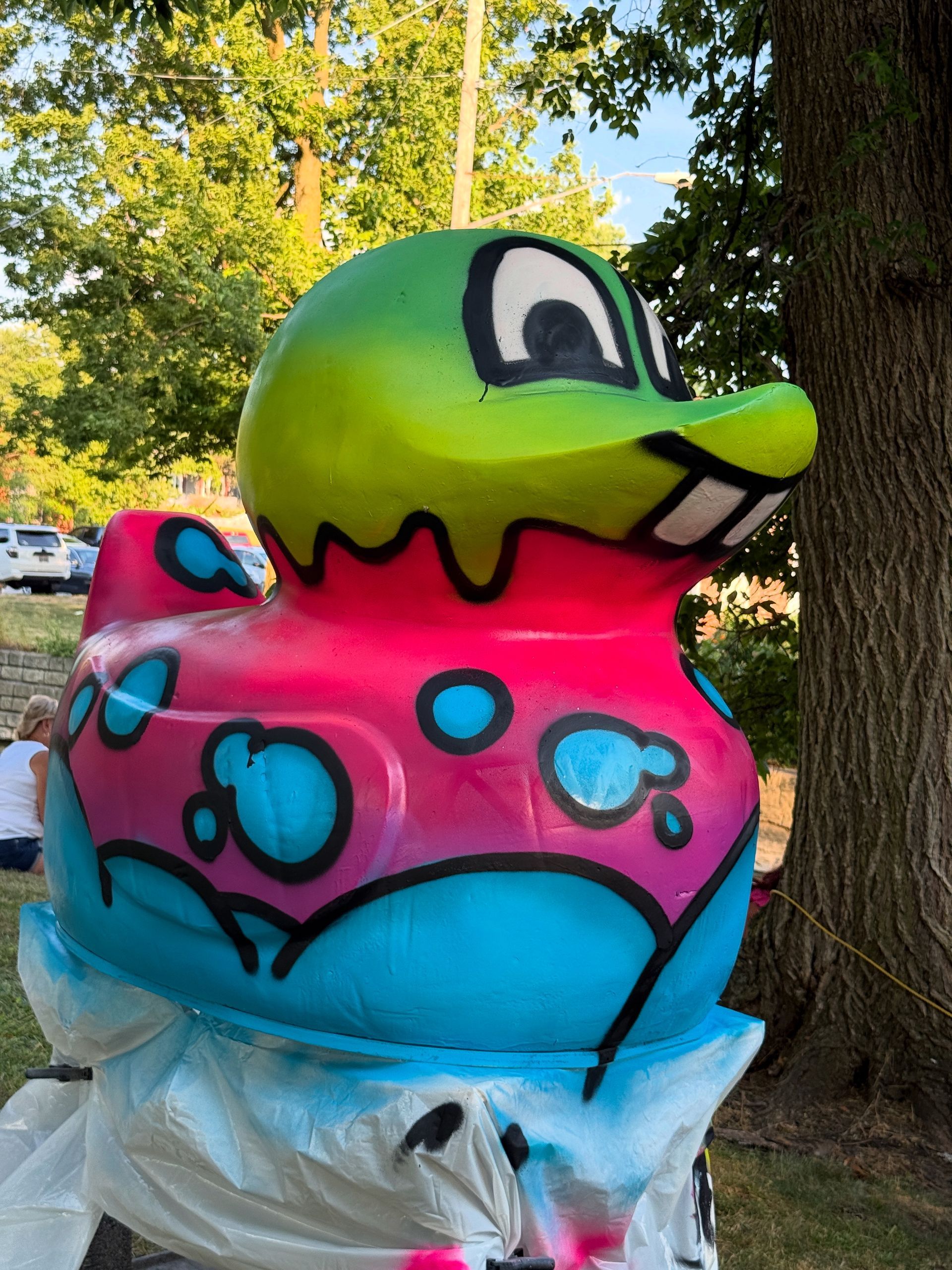 The Grand Rapids Arts Council (GRAC) launched Rapids Rally Days with a lively Friday night kick-off party. Street artist 'Teeth' gave our beloved Dilly Duck a new makeover while guests enjoyed 'Dougaritas' and other refreshing beverages. The crowd grooved to the sounds of live music by 'Tater' which added to the energy of the night. One of the weekend’s highlights was the Grand Duck Drop, which took place Friday evening — with additional duck drops sprinkled throughout the weekend. Oh, and we can't forget, children painted rocks in the old fire station, to add to our new rock snake in our sculpture garden. Thanks to everyone involved in creating great community spirit :-)