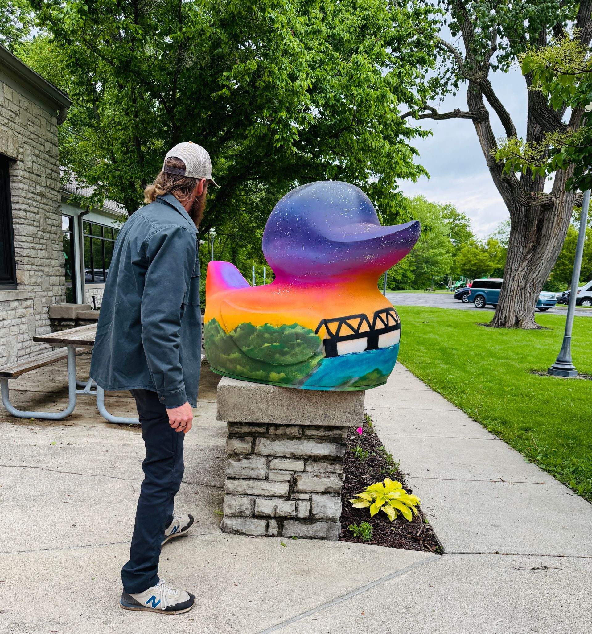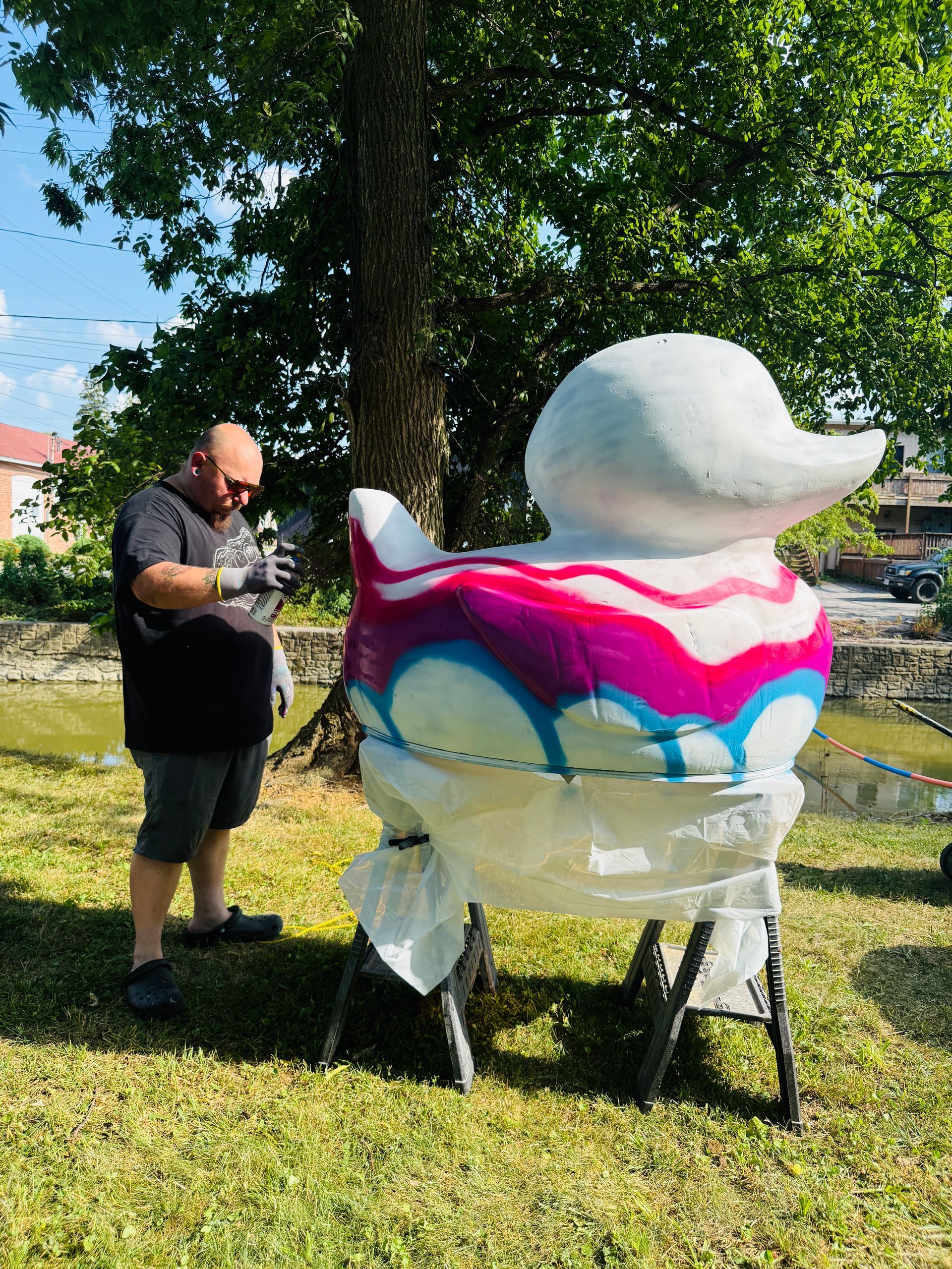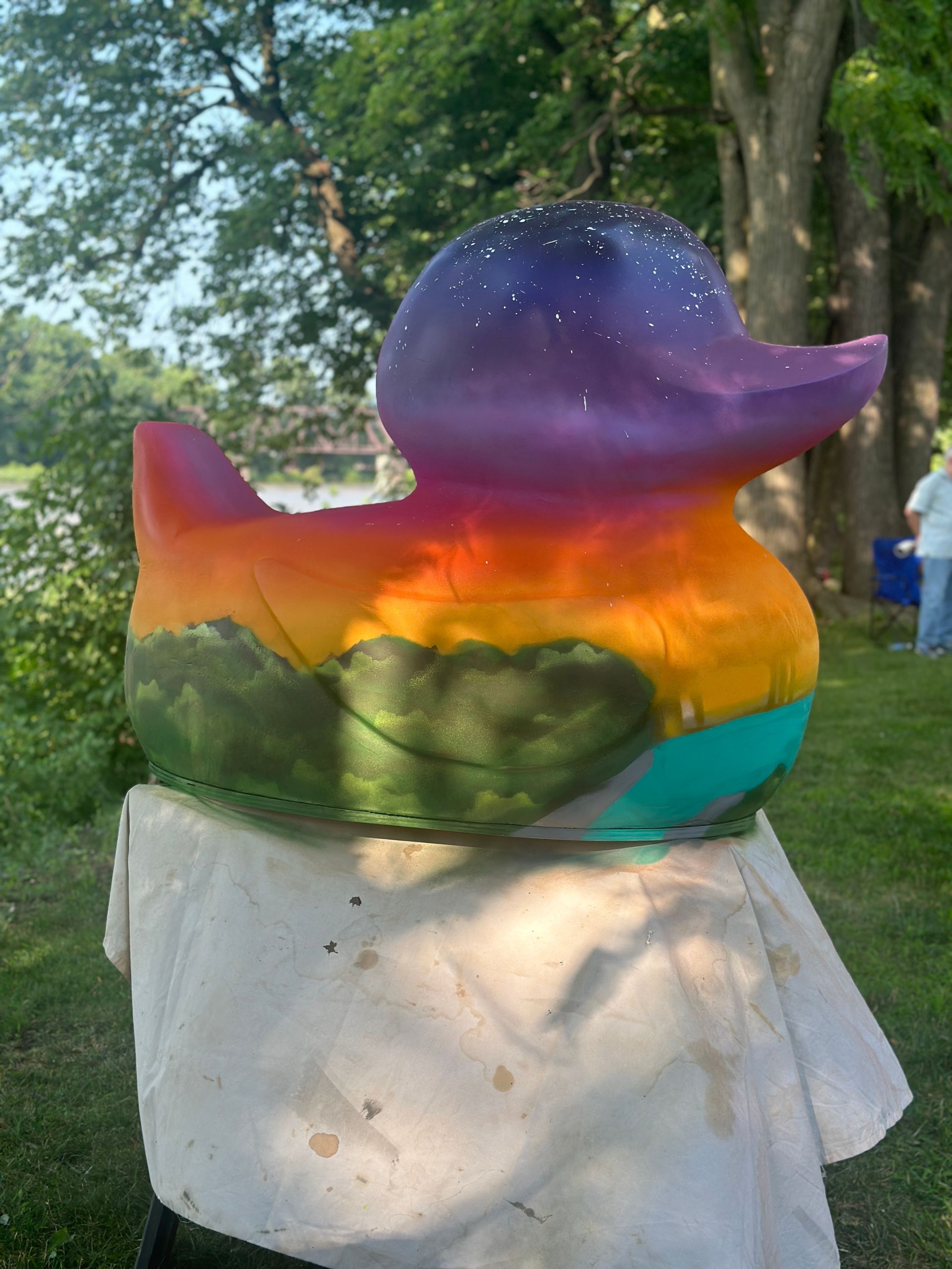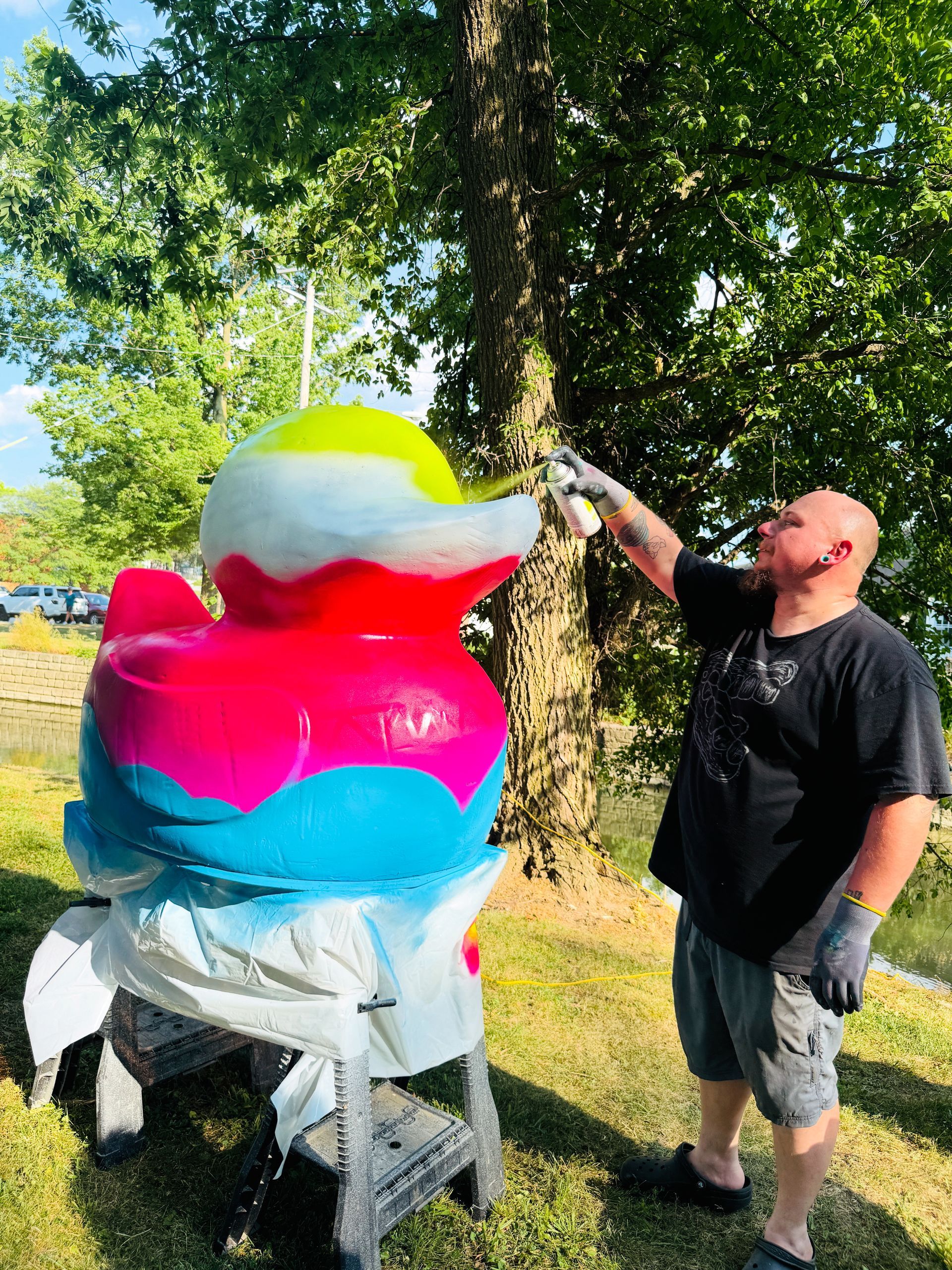 The Grand Rapids Arts Council (GRAC) launched Rapids Rally Days with a lively Friday night kick-off party. Street artist 'Teeth' gave our beloved Dilly Duck a new makeover while guests enjoyed 'Dougaritas' and other refreshing beverages. The crowd grooved to the sounds of live music by 'Tater' which added to the energy of the night. One of the weekend’s highlights was the Grand Duck Drop, which took place Friday evening — with additional duck drops sprinkled throughout the weekend. Oh, and we can't forget, children painted rocks in the old fire station, to add to our new rock snake in our sculpture garden. Thanks to everyone involved in creating great community spirit :-)