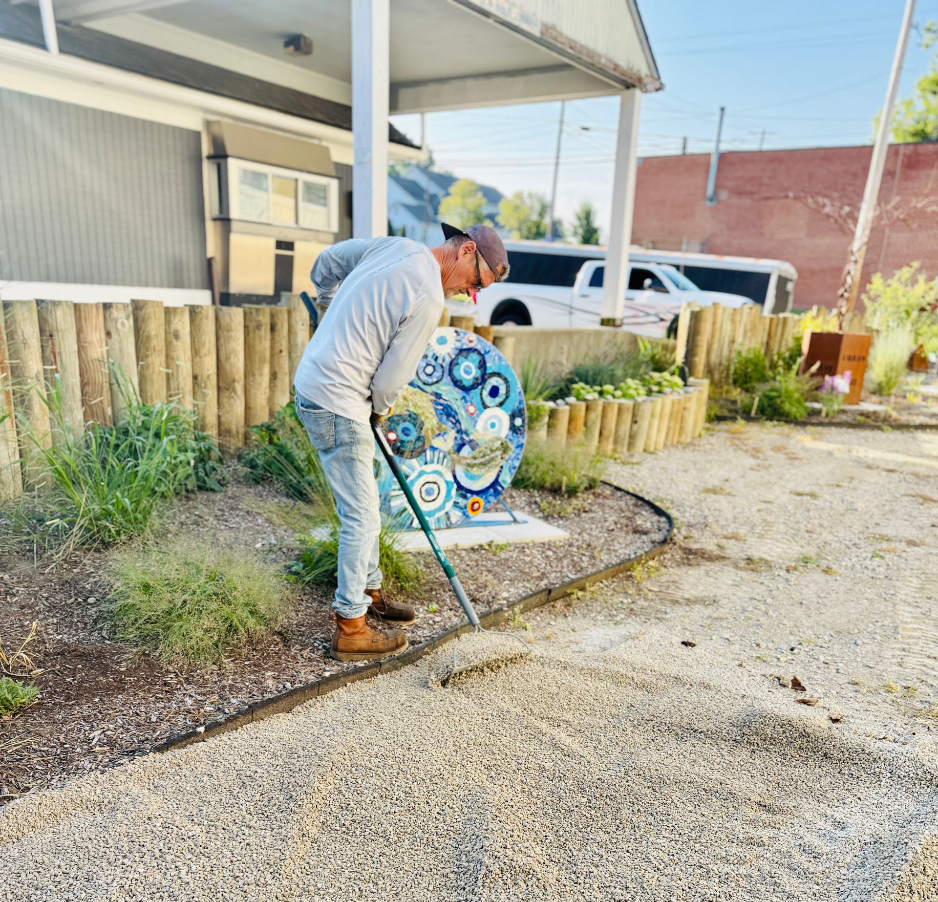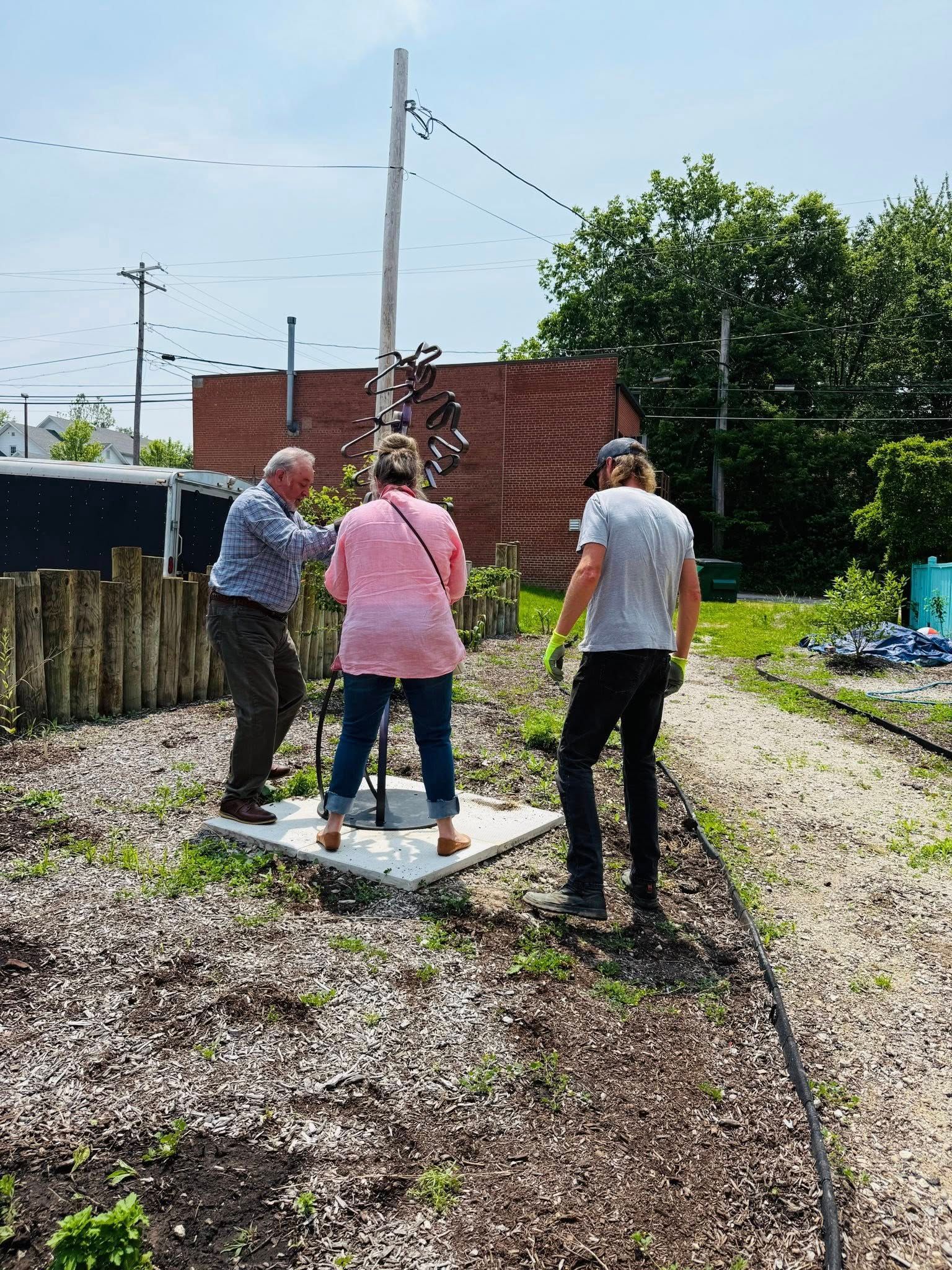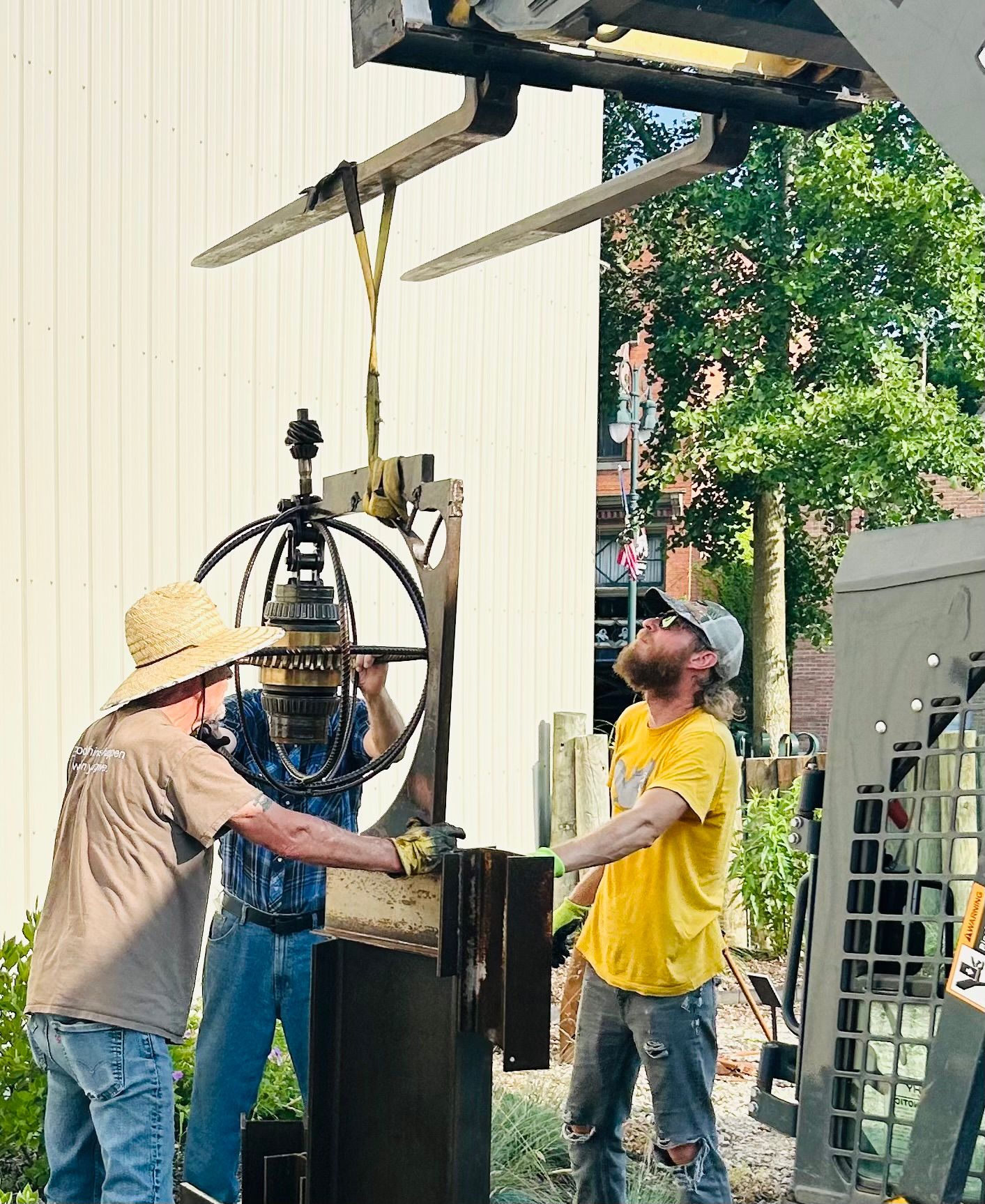 Just this month, we’ve installed 3 sculptures. A big shout-out to Ryan Woodring for his skid-steer skills, and to Gary Fitch, Craig Hamilton, and Terry Green for rolling up their sleeves to help us place the pieces safely & securely.