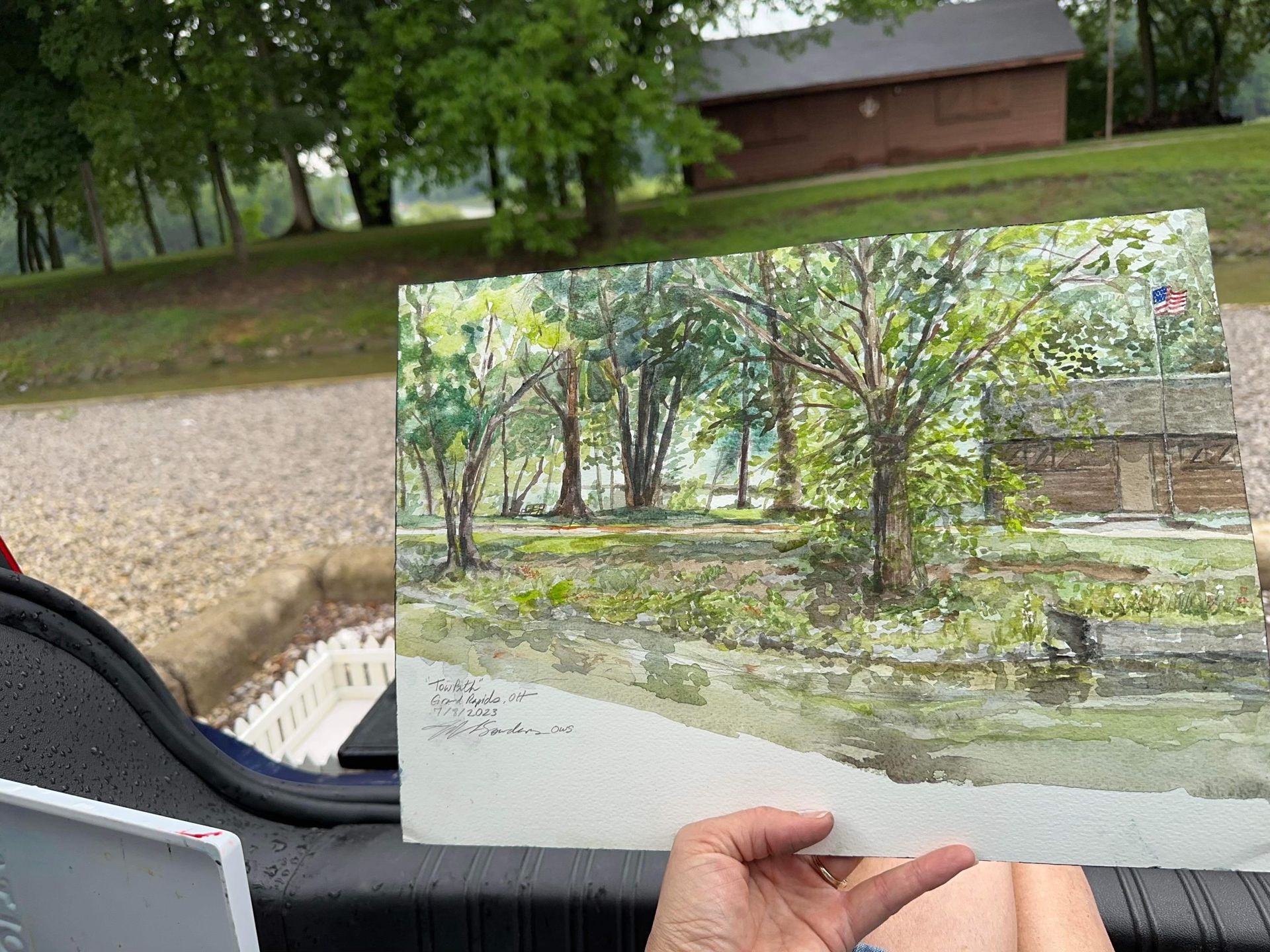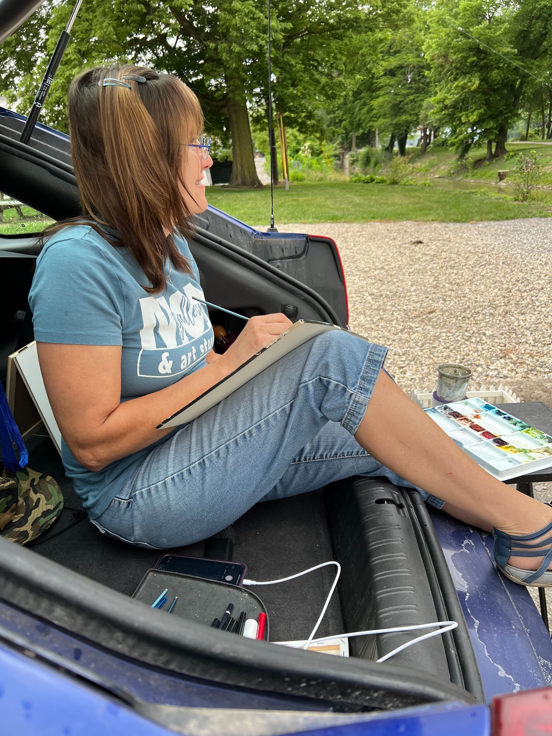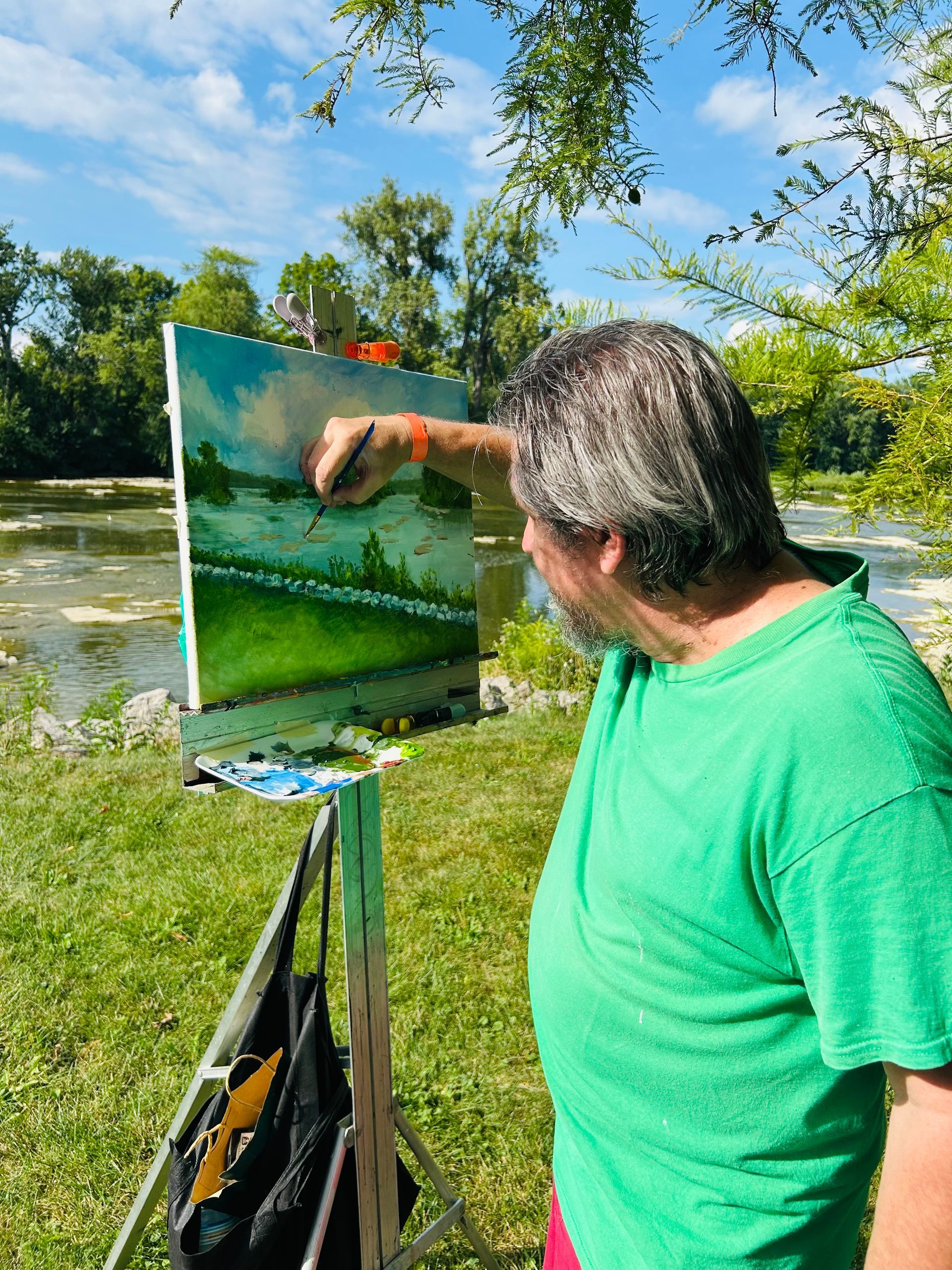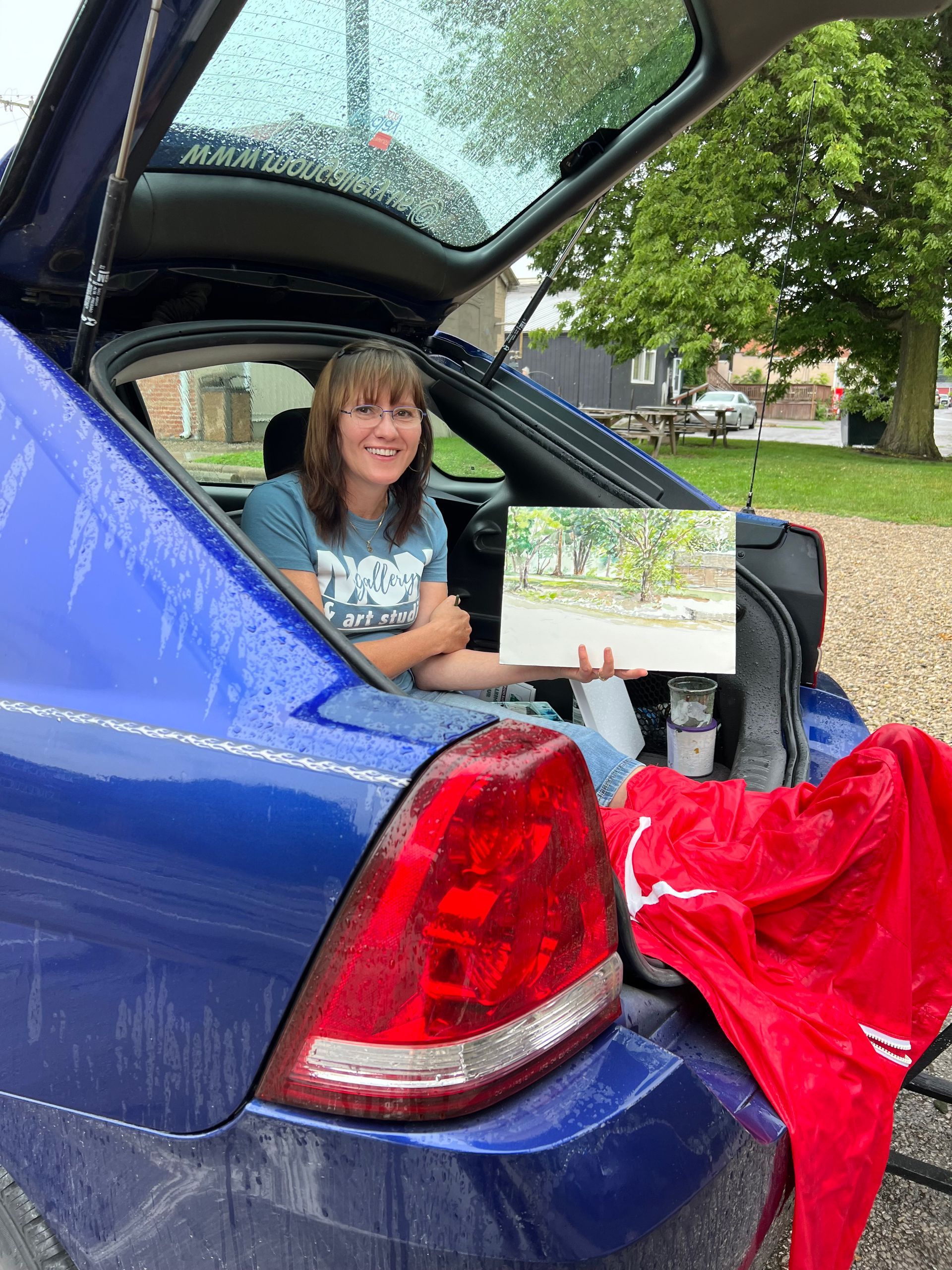 Artists painted on the towpath/around town from 9-2 in the drizzling rain and even in their cars.