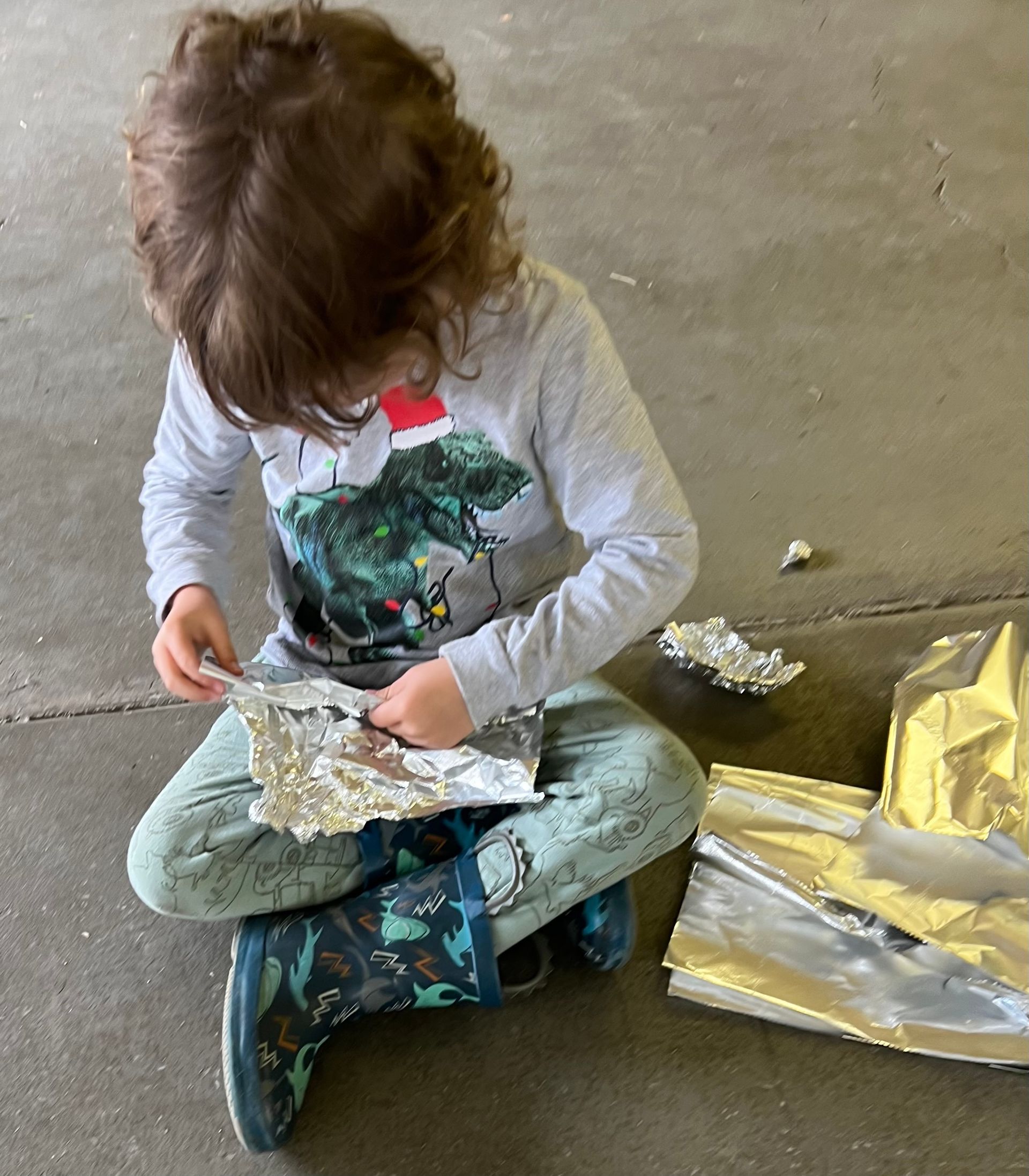 We had a drop-off day for people in the community to donate items for kids' projects.