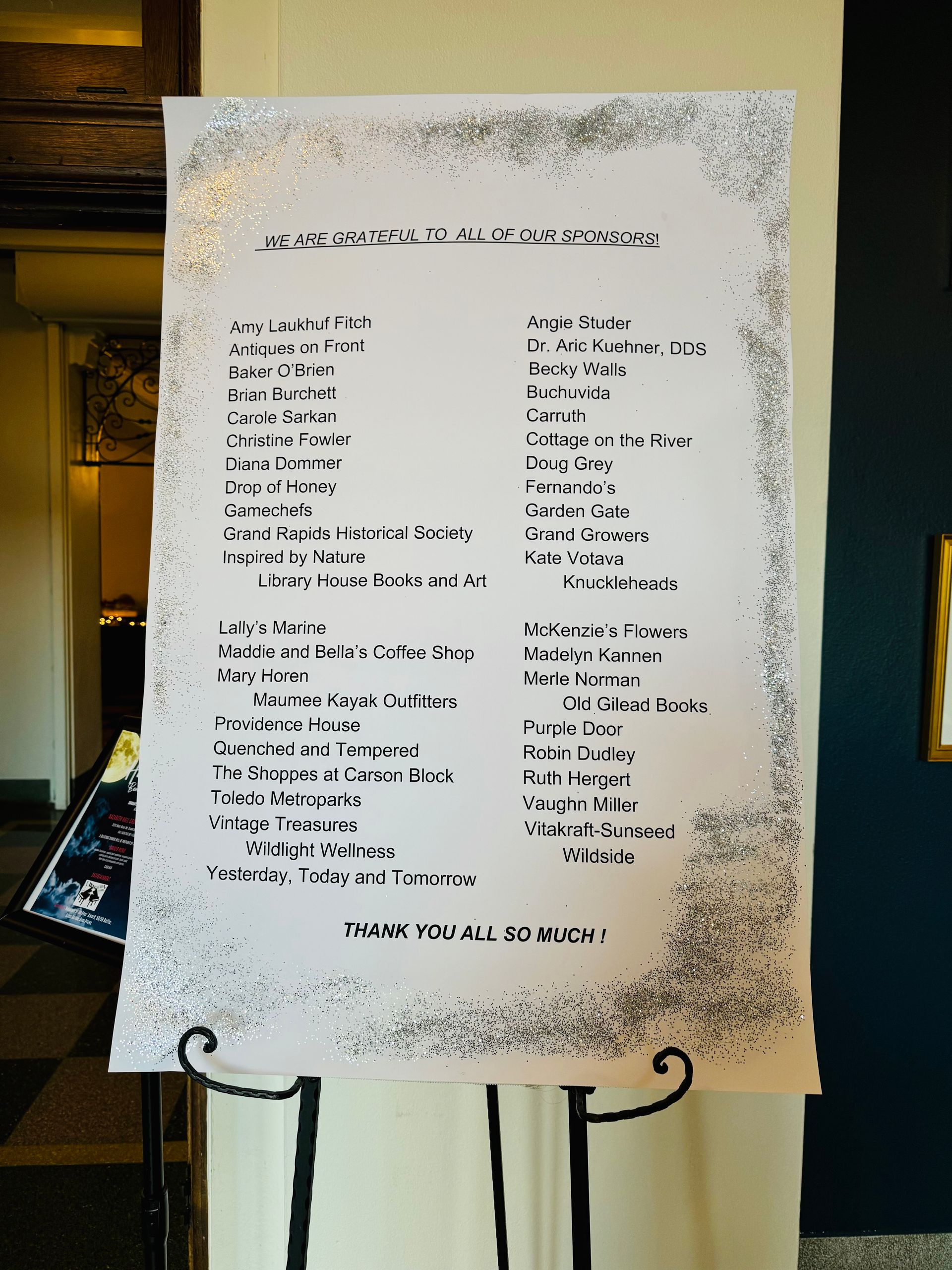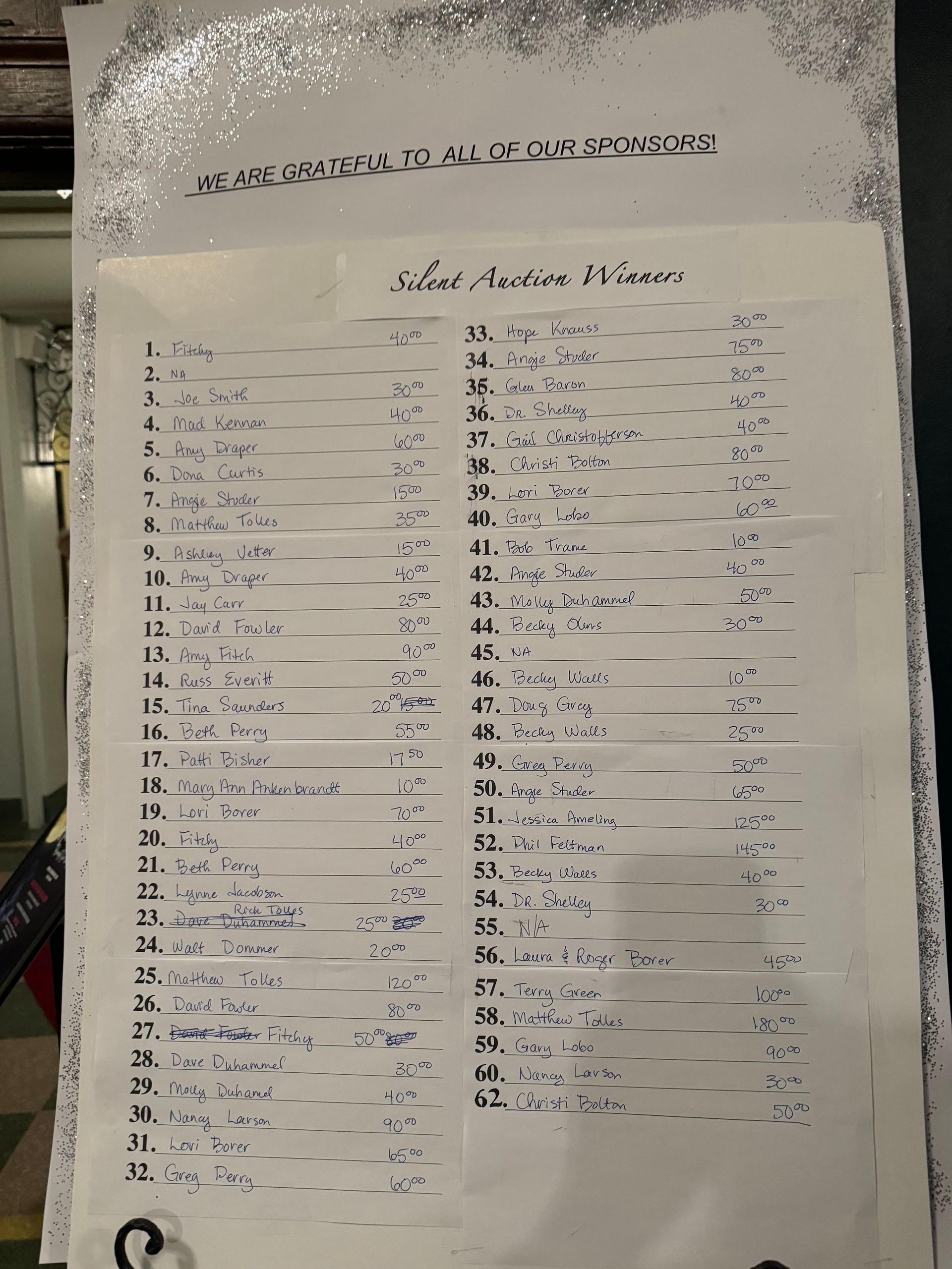 Thank you to all our donors and sponsors as well, especially Suzanne Carroll & Georgette Kohn, of the Optical Shop