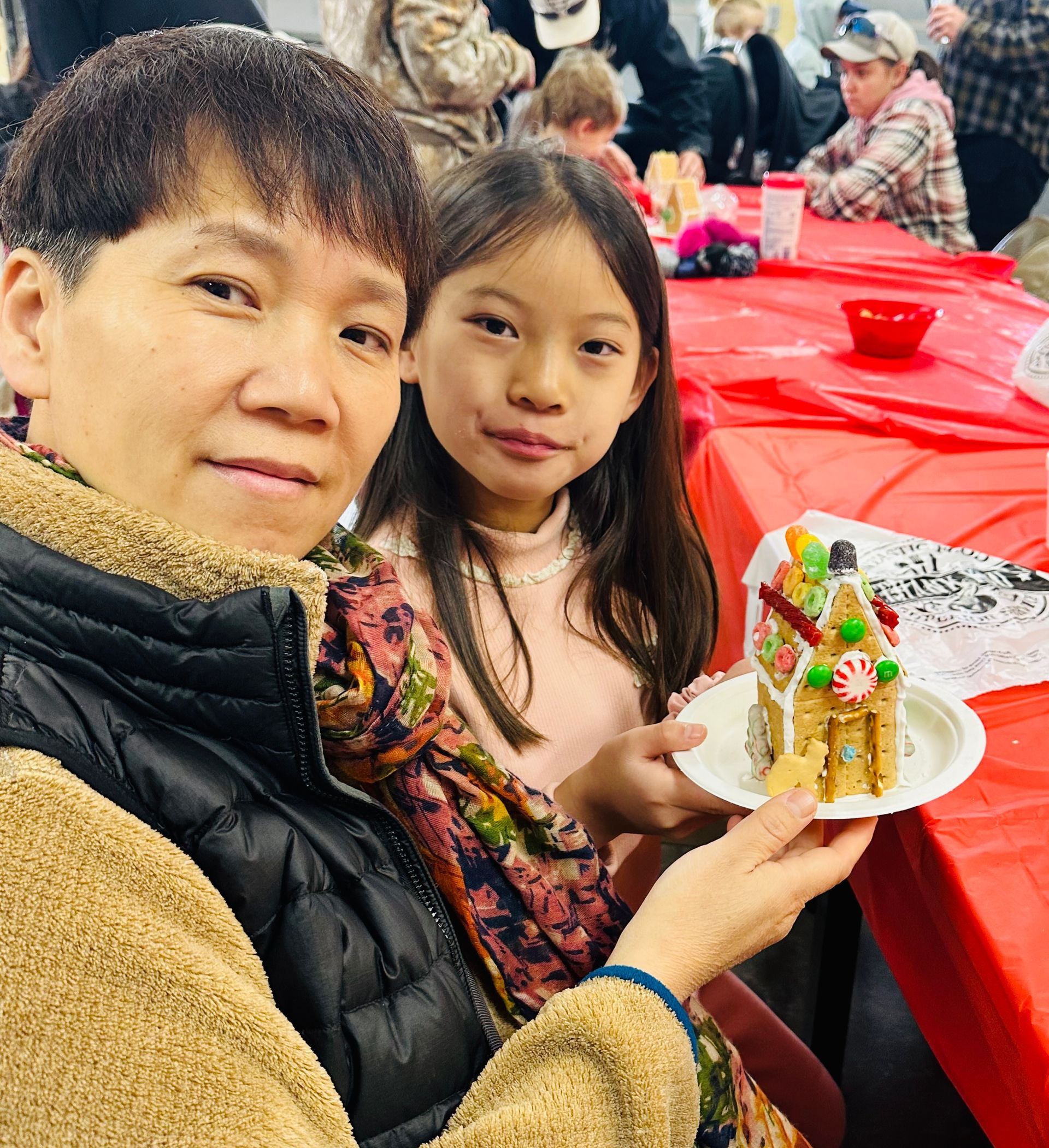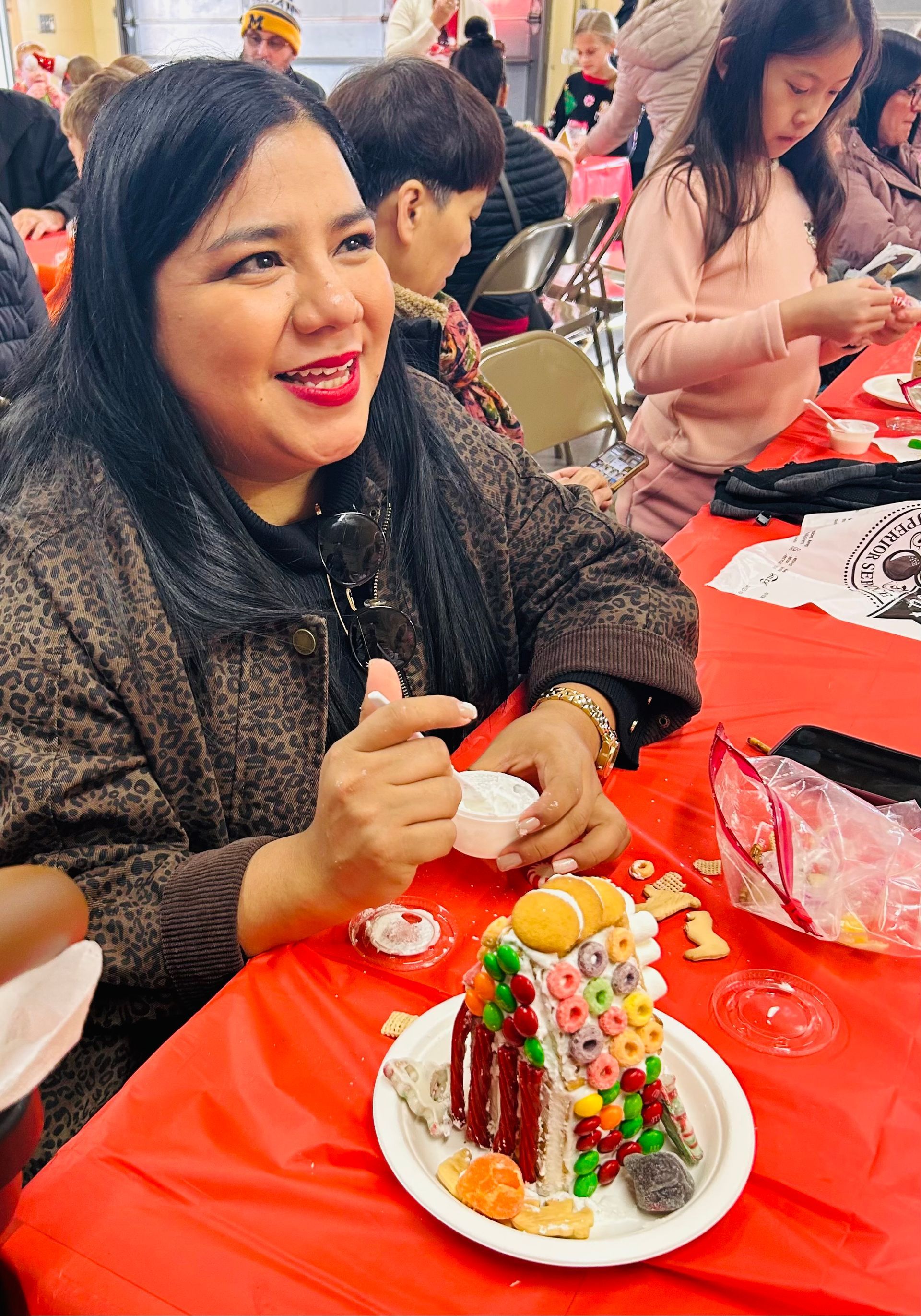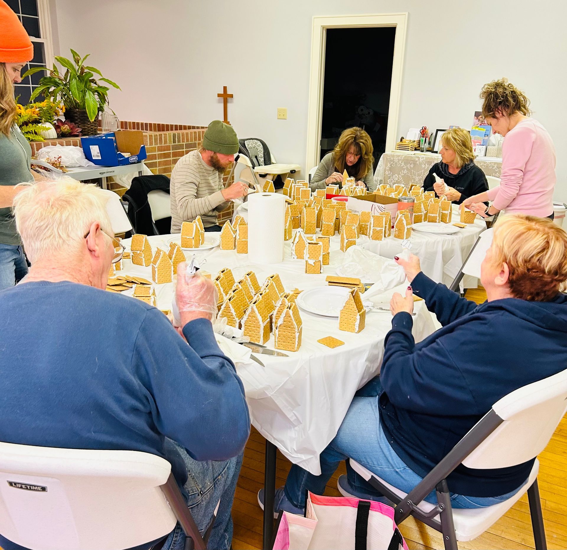 We made 144 gingerbread houses, stuffed 120 bags of candy, had cocoa & cookies.