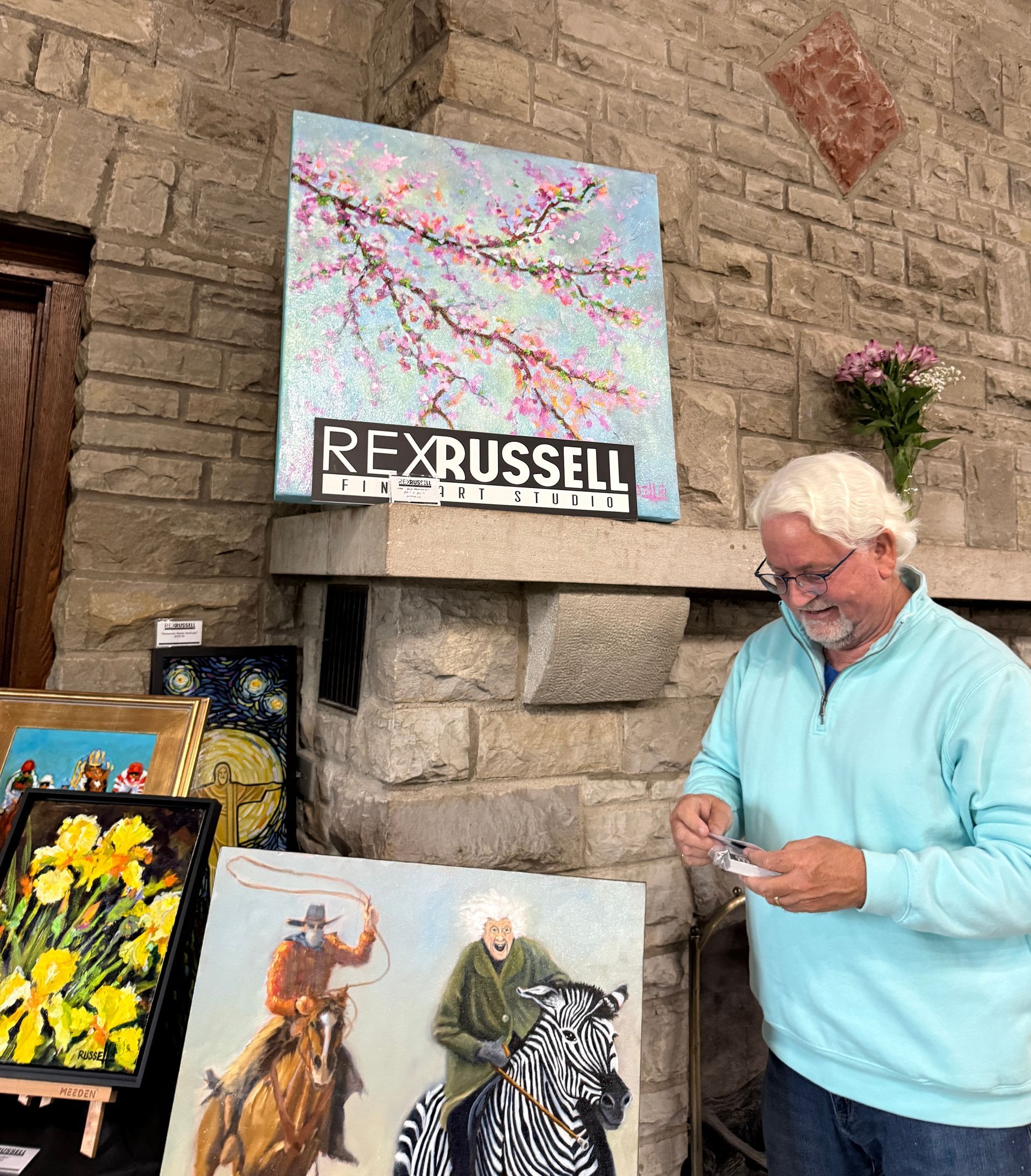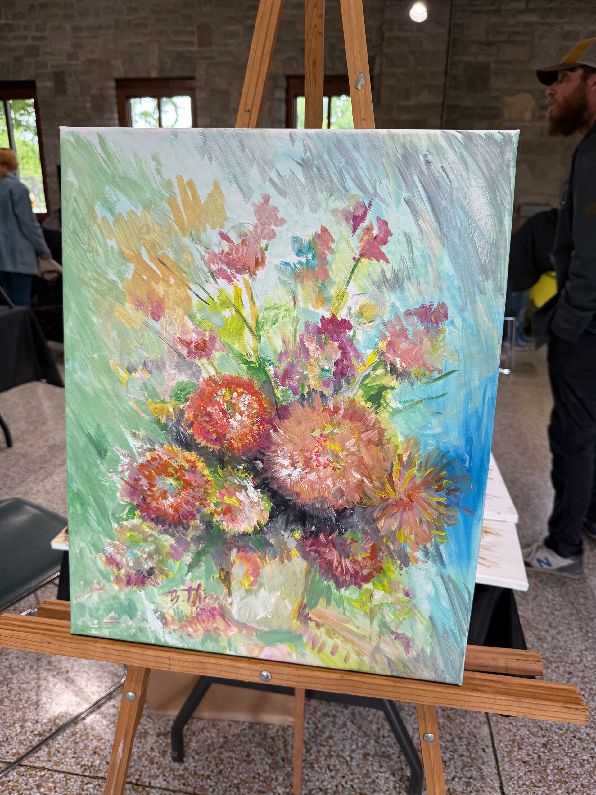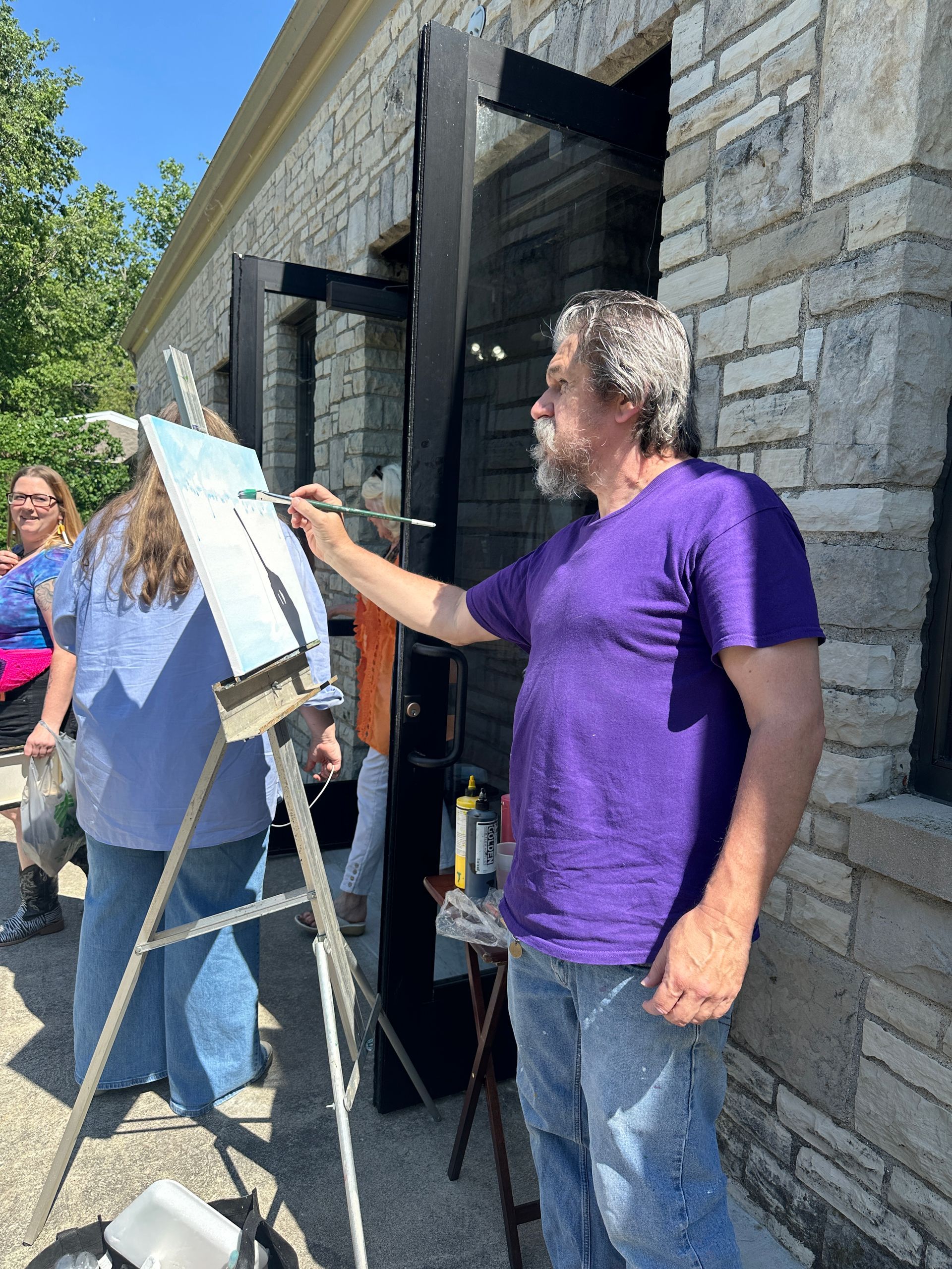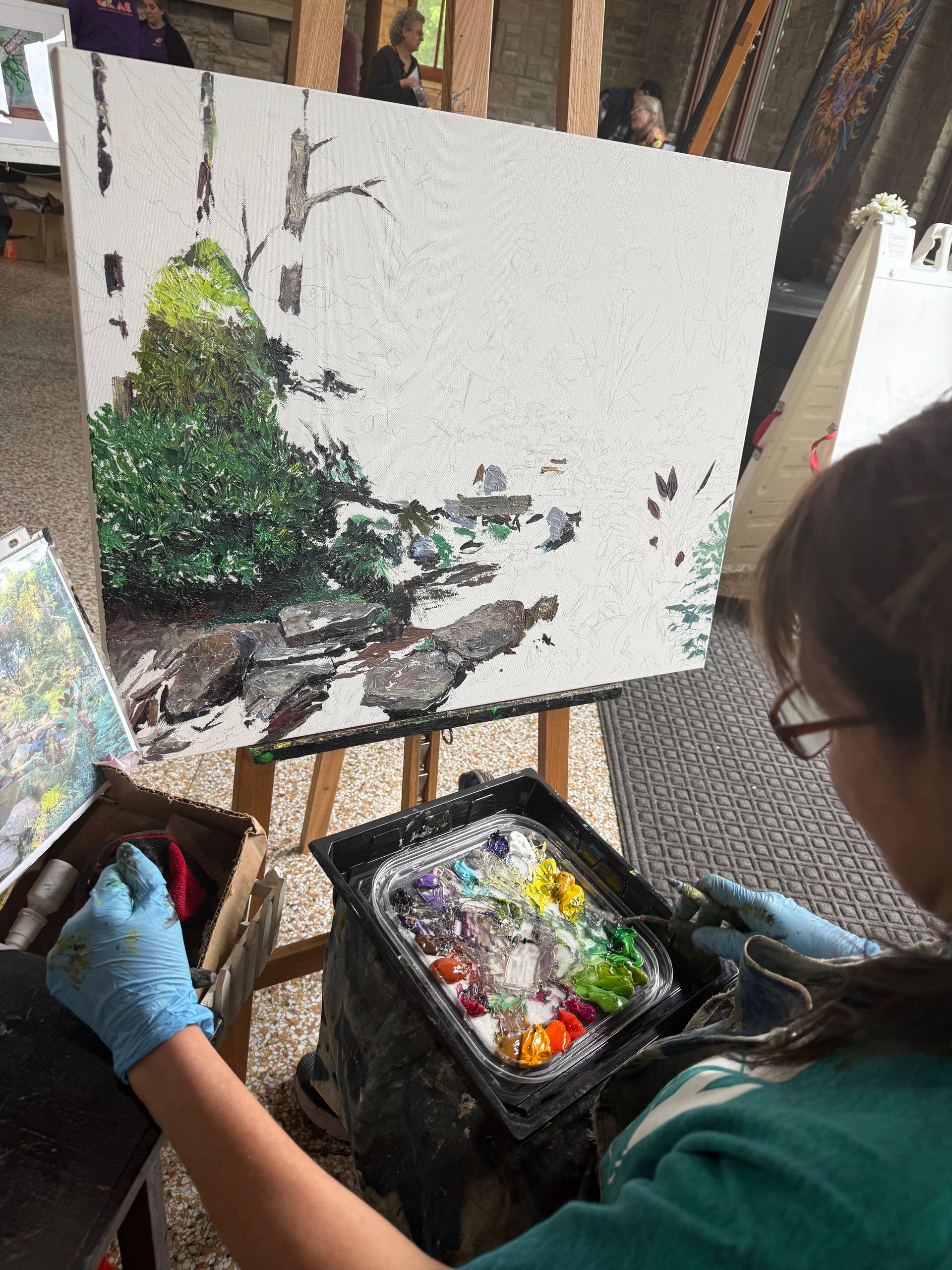 We had a plein air painter who painted live inside since it rained off & on all day.
