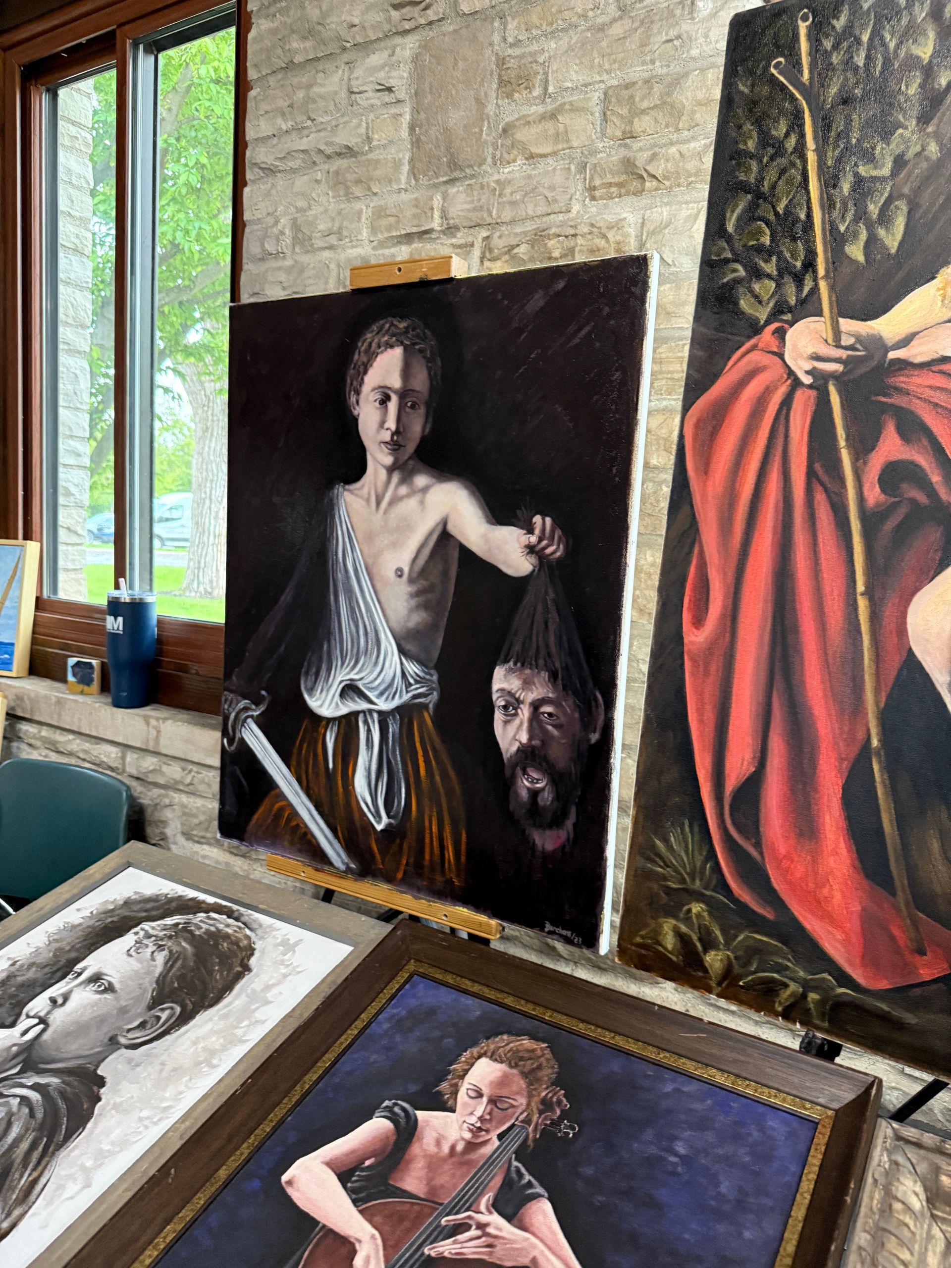 and then displayed their paintings at "Our Town Gallery" in Grand Rapids where people voted for their favorite.