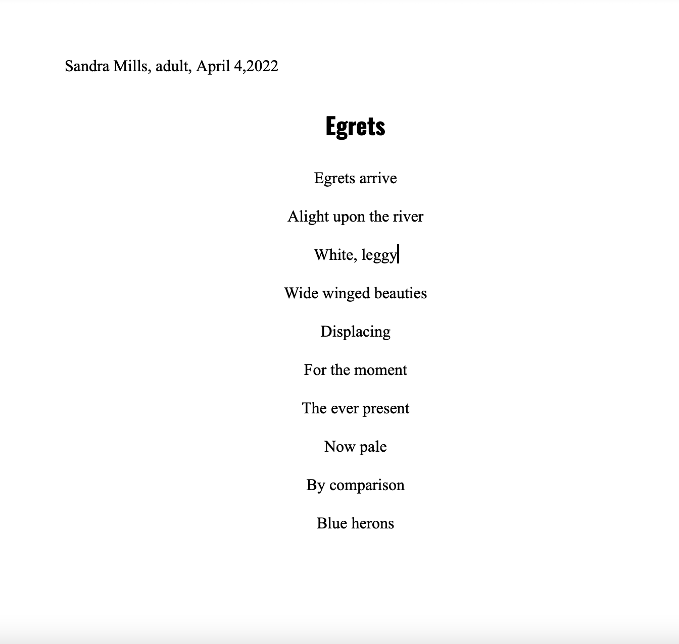 If anyone wishes to write 2 poems, we are thrilled! However, hold on to both for awhile. You may decide you are called to edit one more than another. Sometimes that happens; writing takes much consideration.